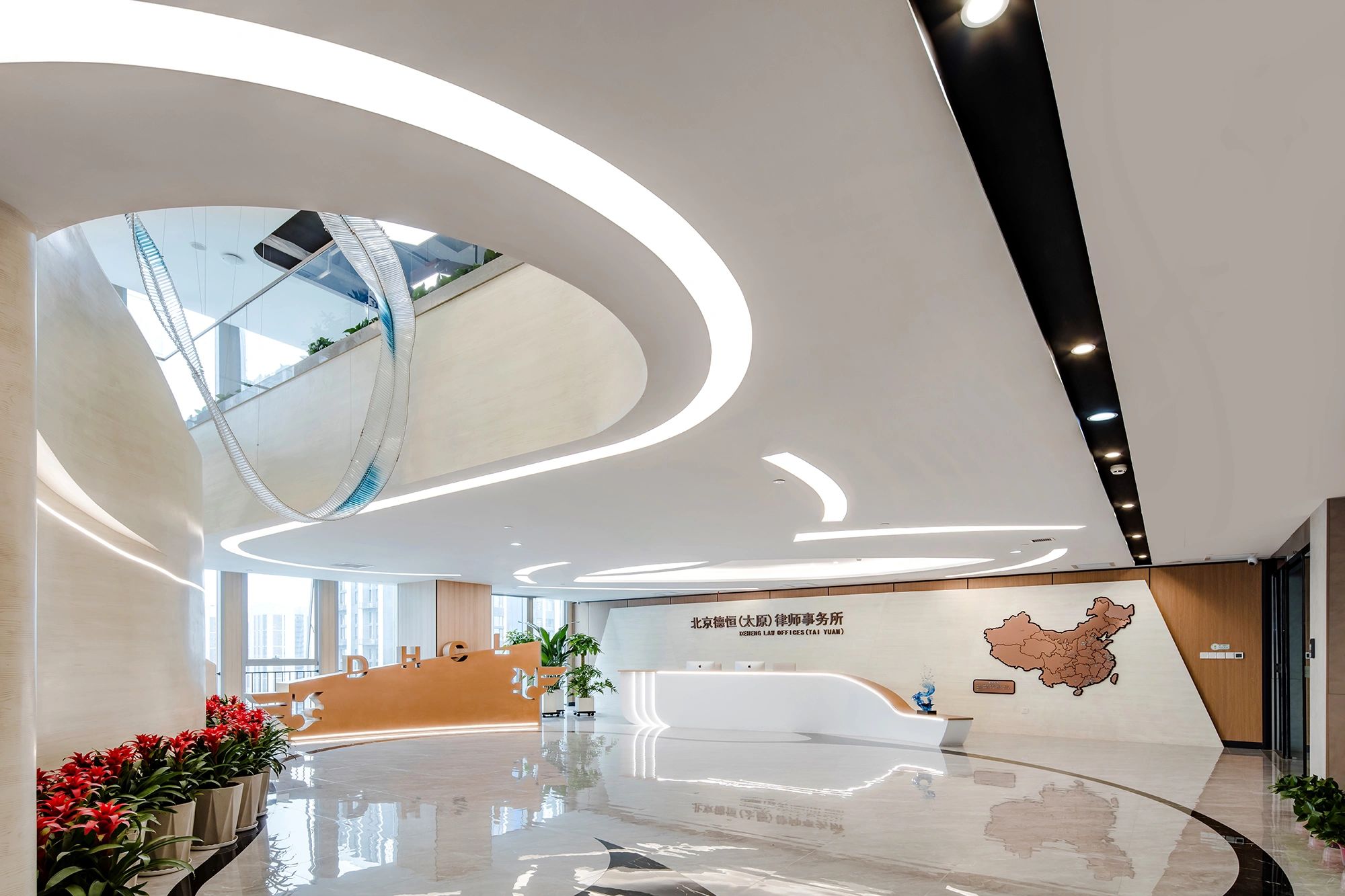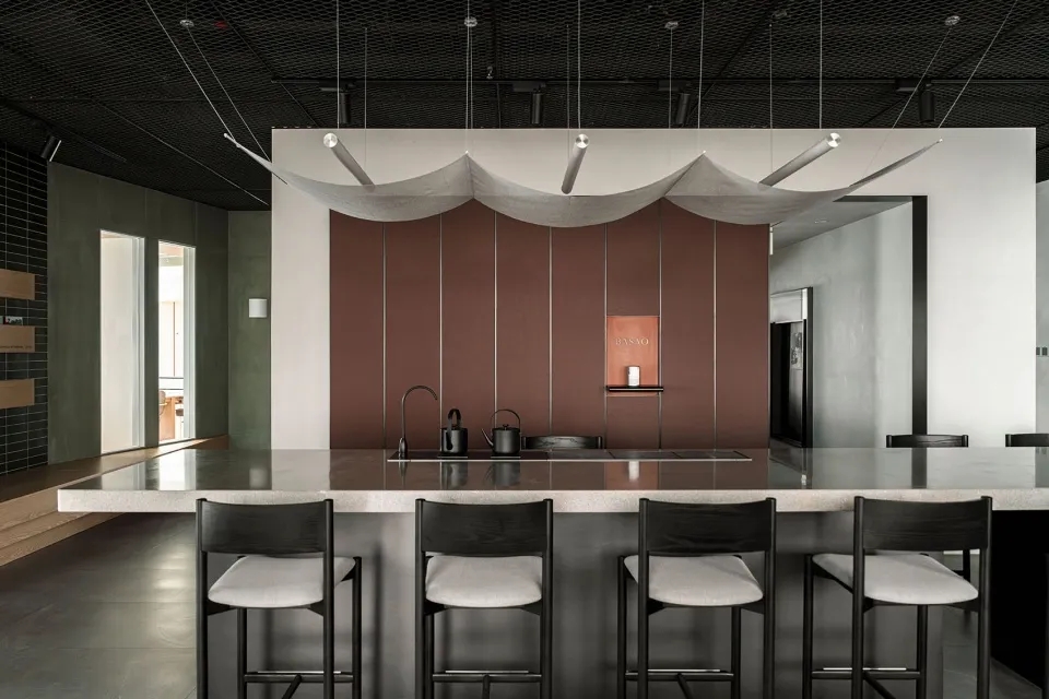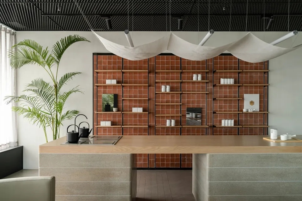 在设计上,我们将景观作为品牌叙事的拓展线索 – 茶园层叠的韵律与茶农的劳作,被延续成为办公空间的丰富层次与团队架构的社群协作。独立办公被放置在自然采光最好的空间边侧,围绕着中心区域环环相扣的协同功能组团,结合由不同轴线和视角定义出的洞口设计,形成具有穿透感的空间层次。