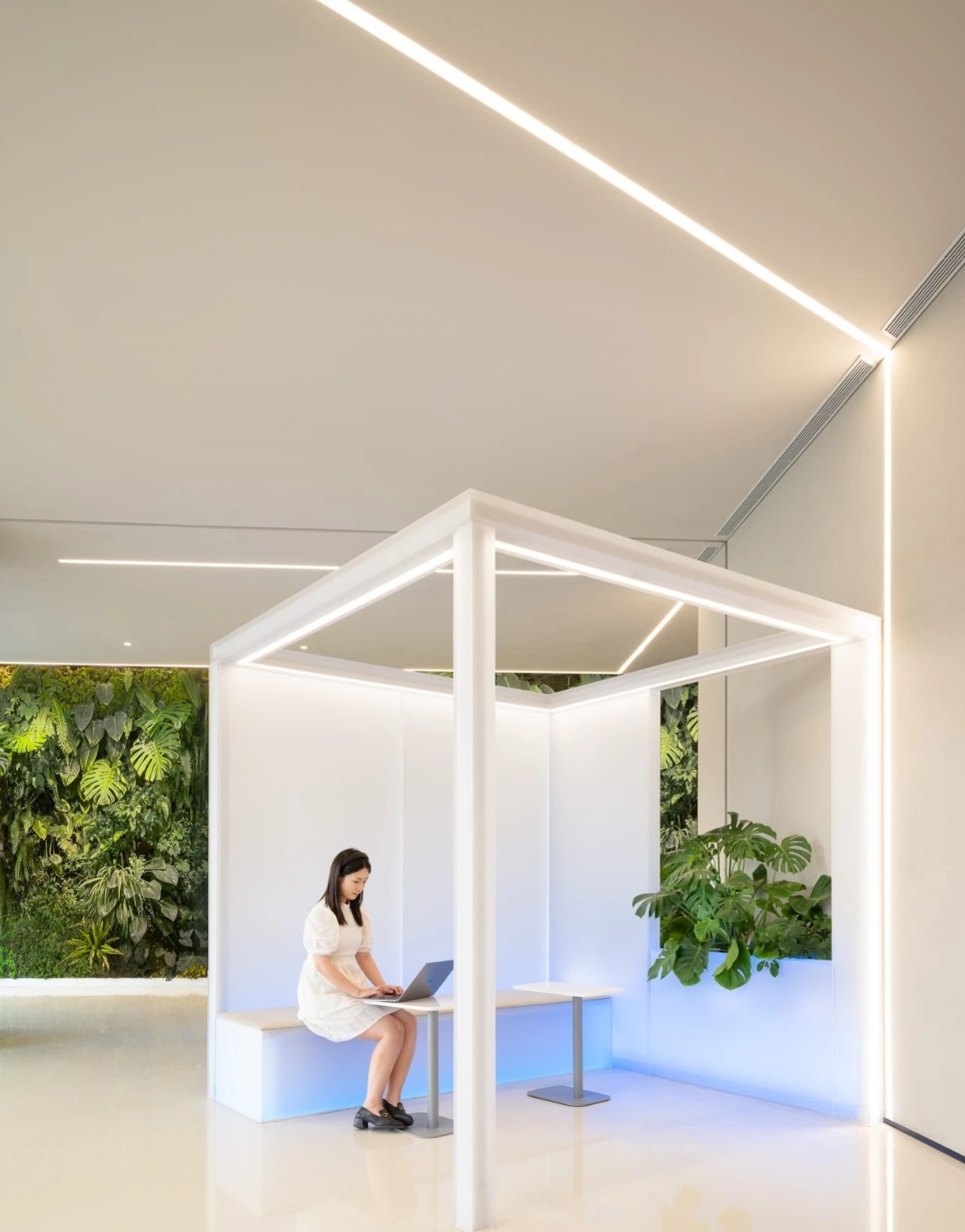 多样化的灯光场景设计是大堂一大亮点。在平日的工作日常,灯光营造明亮高效的氛围;节假日时,灯光的 “动态呼吸”绚丽多彩,增添欢乐喜庆的气息;而随着四季更替,灯光也会相应调整,春天的清新柔和、夏天的明亮热烈、秋天的温暖醇厚、冬天的静谧安宁,让人们在不同时间感受时光的流动。