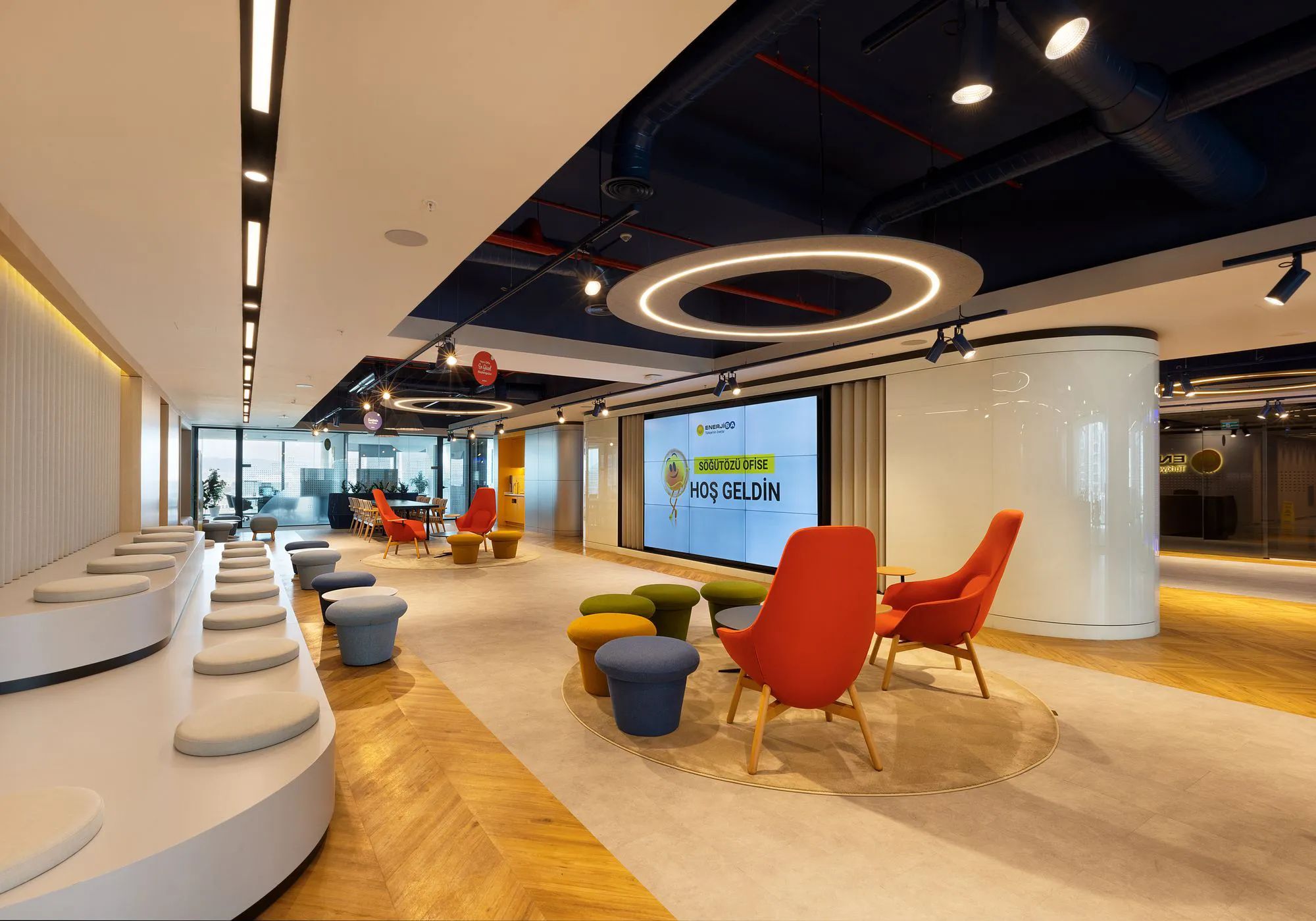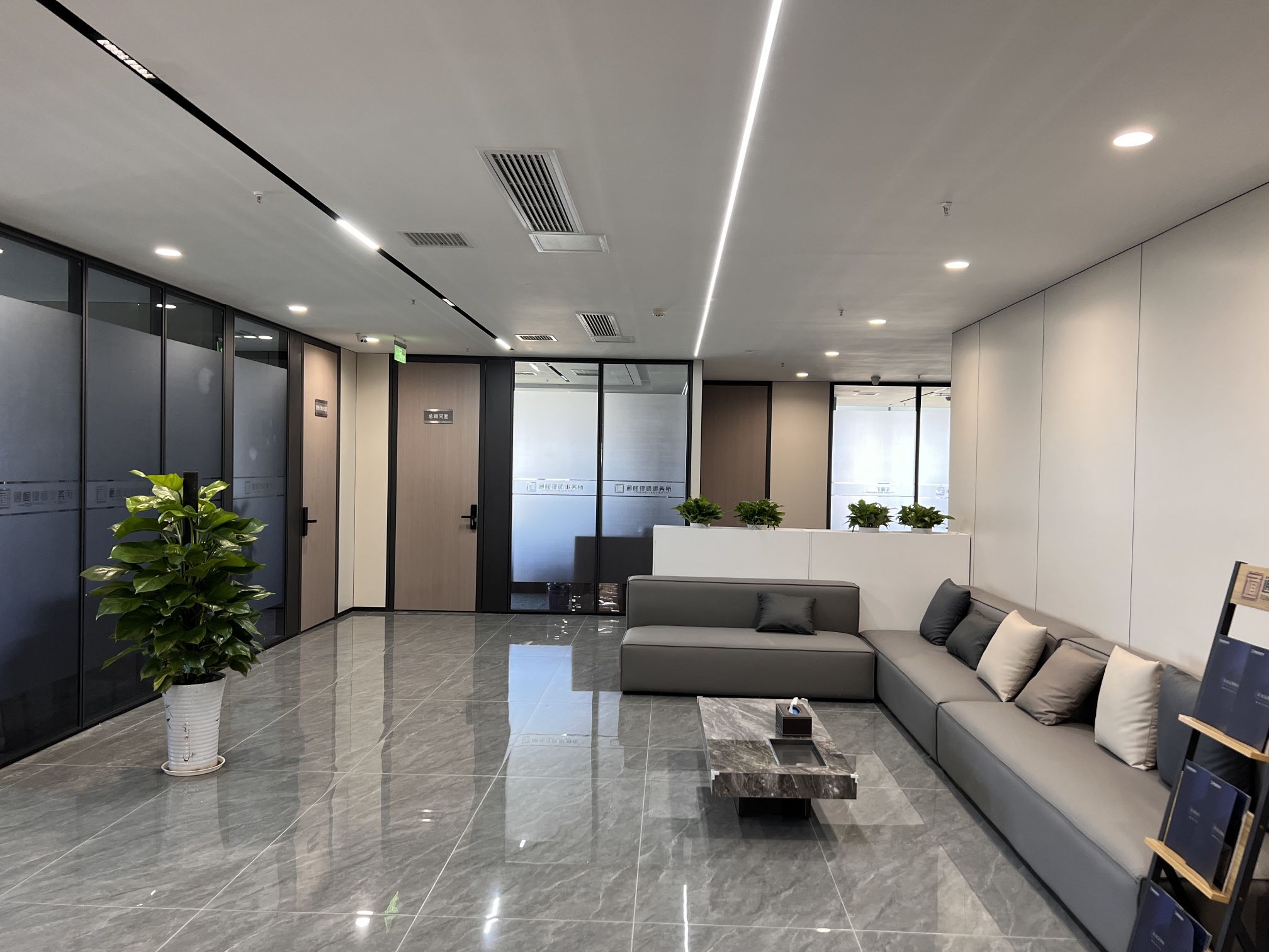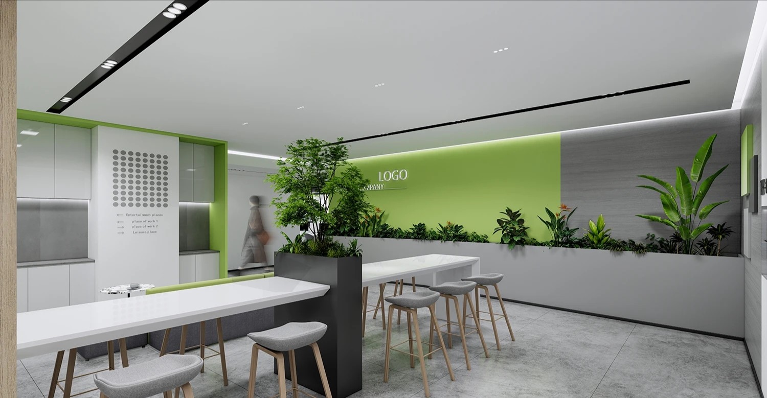 前厅作为公司的首要接待展示区,甲方经过多方考虑,不喜欢常规的前厅设计模式,更倾向于设计成一个自由开放的休闲区域——既能满足形象展示、日常基本接待作用,又能为员工提供一个休闲放松的环境,同时也给员工或访客一个轻松活力的感受。