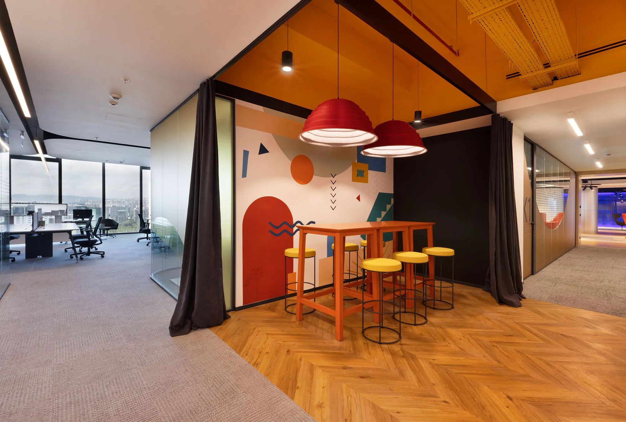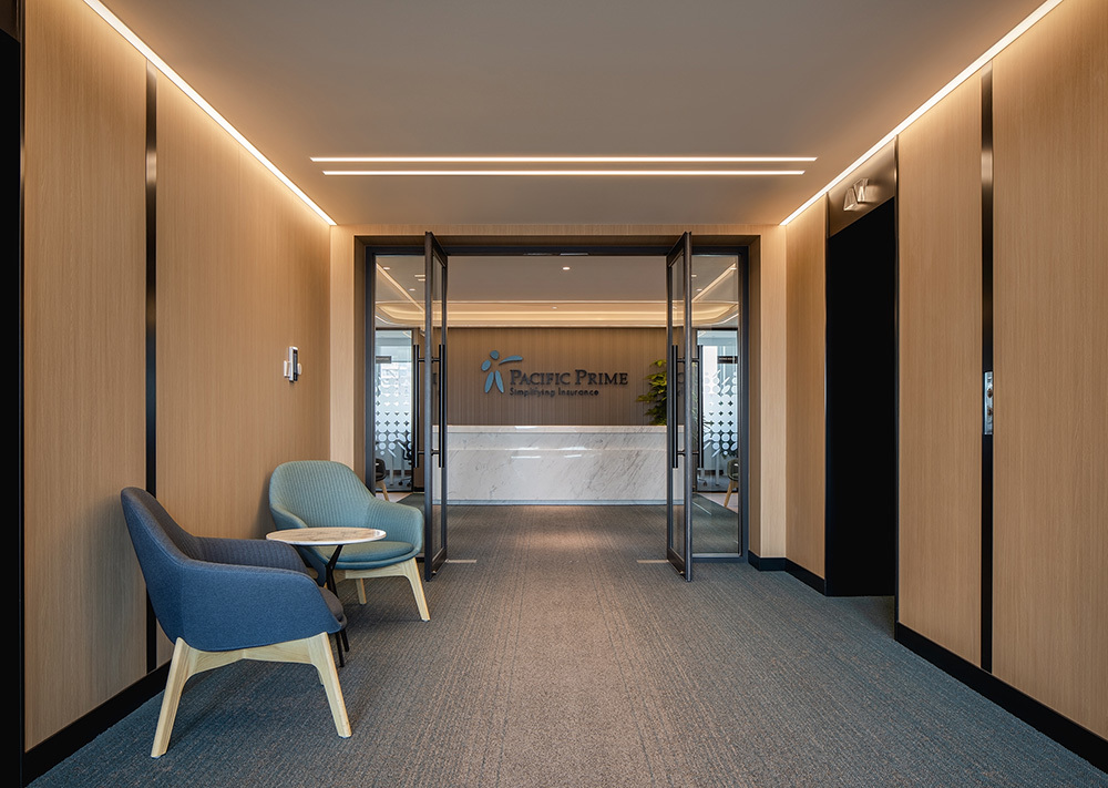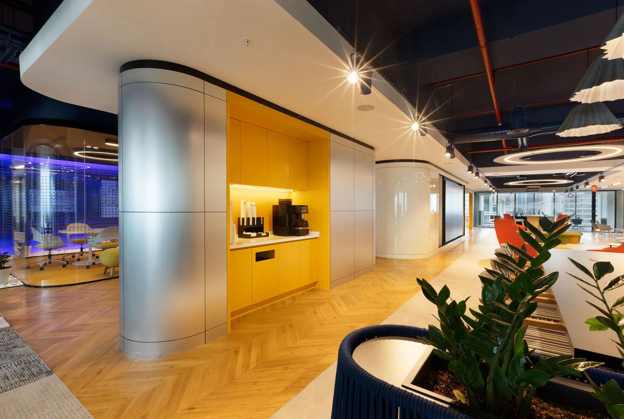 前厅作为公司的首要接待展示区,甲方经过多方考虑,不喜欢常规的前厅设计模式,更倾向于设计成一个自由开放的休闲区域——既能满足形象展示、日常基本接待作用,又能为员工提供一个休闲放松的环境,同时也给员工或访客一个轻松活力的感受。