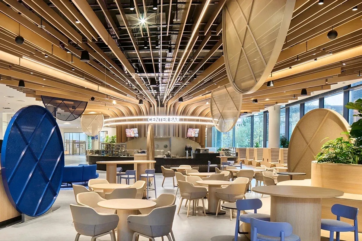 项目通过在整个空间引入亲生物元素,强调整体福祉。充足的自然光线不仅减少了对人造照明的依赖,还促进了员工与自然环境的更紧密联系。绿植、有机色调等生物亲和元素进一步增强了员工的工作体验,加深了他们对工作环境的归属感。