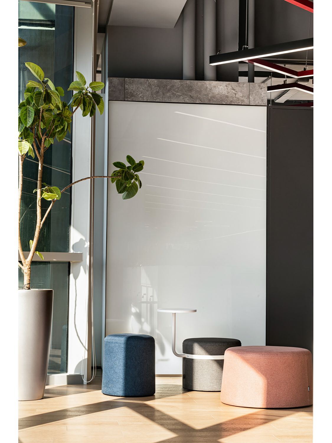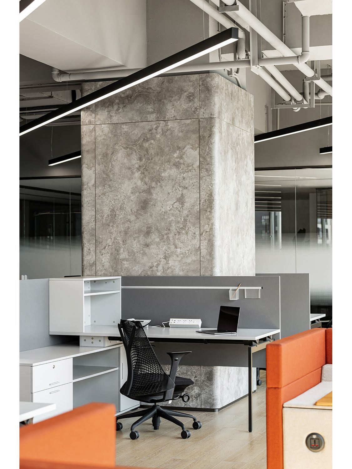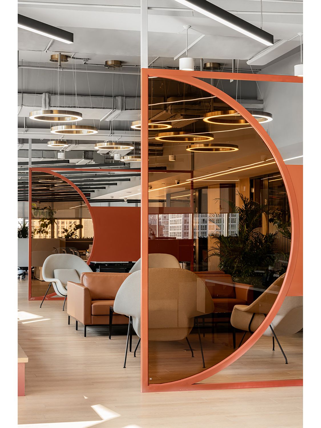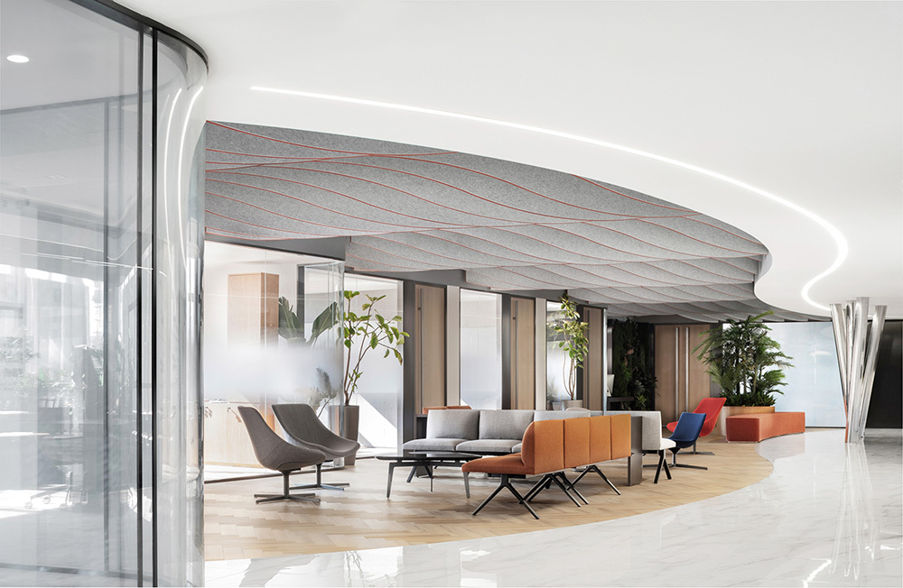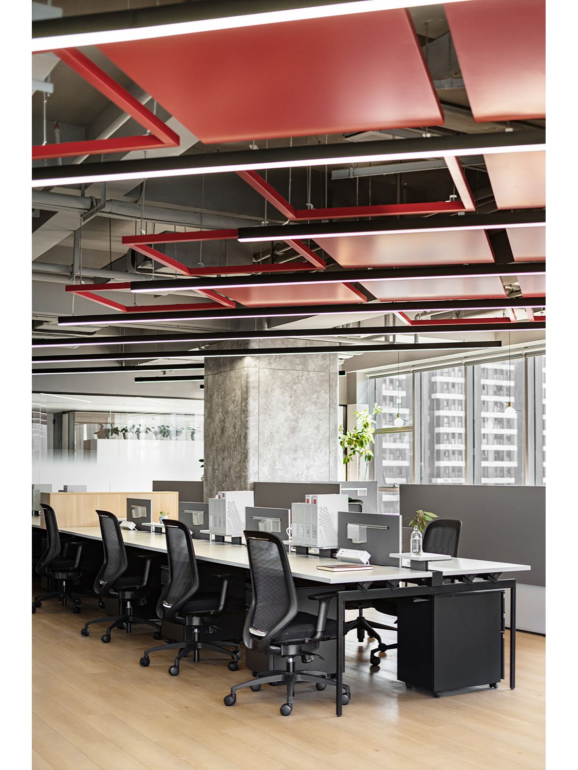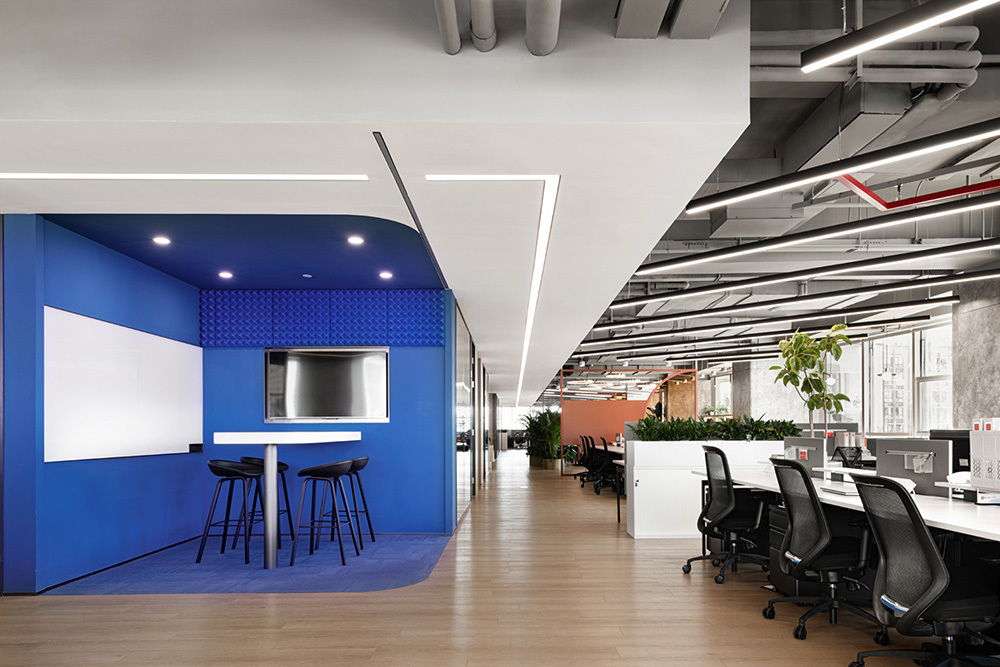 偌大的办公室中,享有最佳视野、光线和自然通风的部分,被布置为员工的探讨或休憩区域,创意与生产空间则有机分布于办公区四周,以鼓励更多的创意和合作在此自然而然地发生