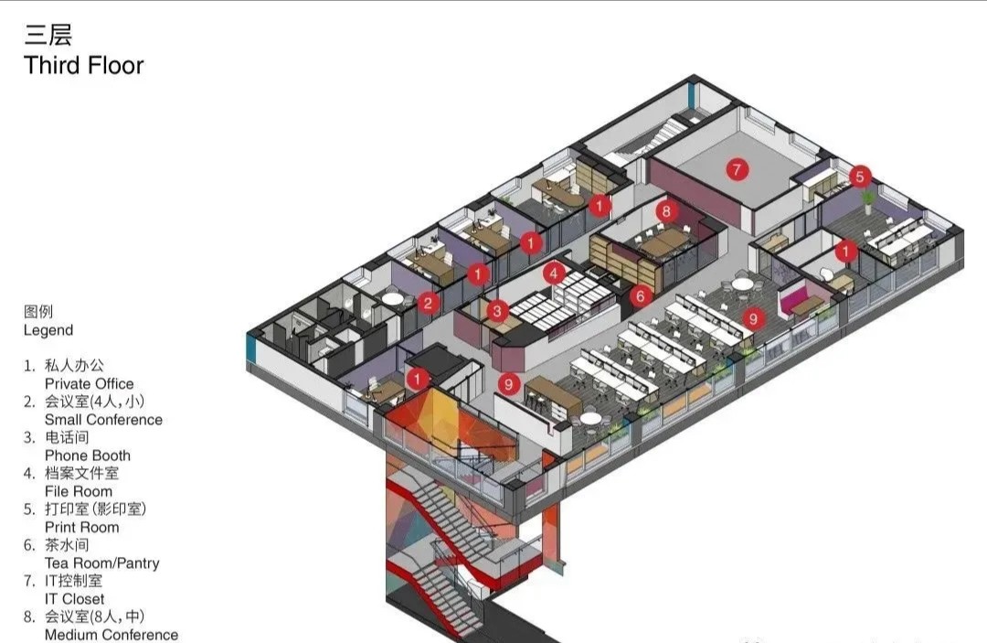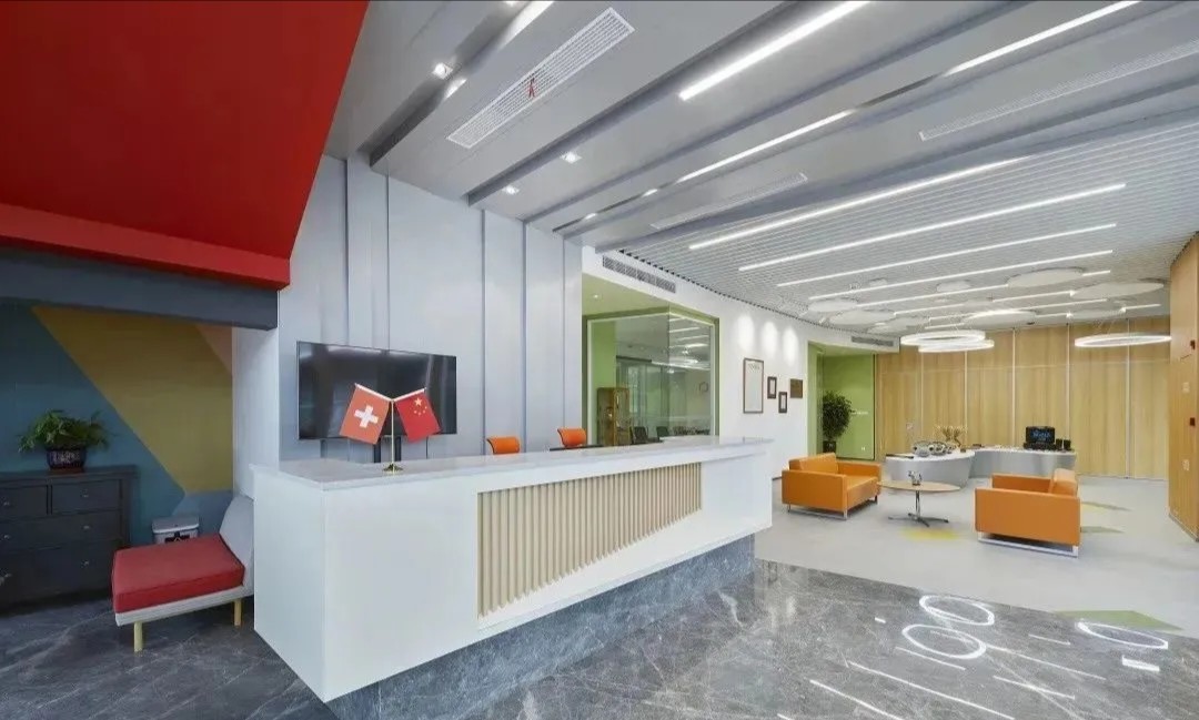 整体设计引入了较活泼的颜色和品牌元素,别于较简单朴素的传统实验空间。