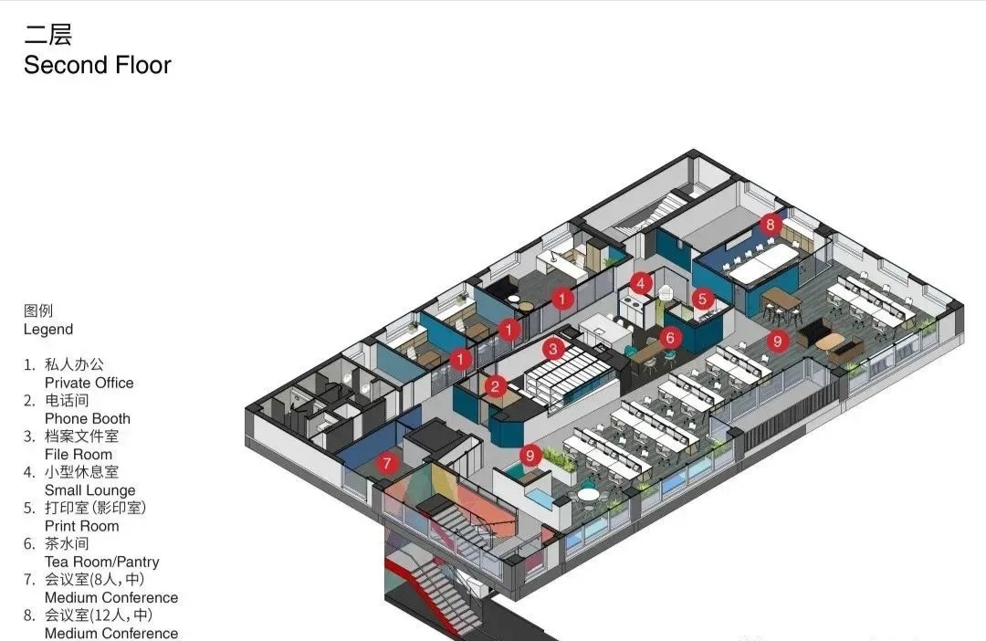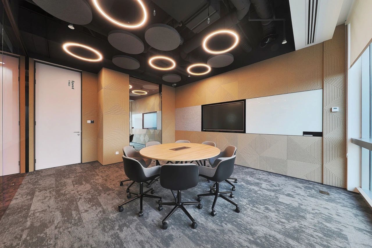 内部空间注入了协调的色彩和自然的元素,为公司员工和访客提供舒适感。开放的工作区沉浸在来自立面过滤且柔和的光,而刻意将共享设施则位于中央核心筒, 鼓励更多的社交机会。