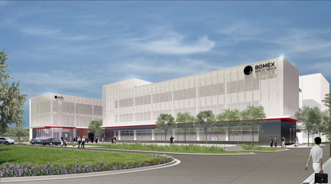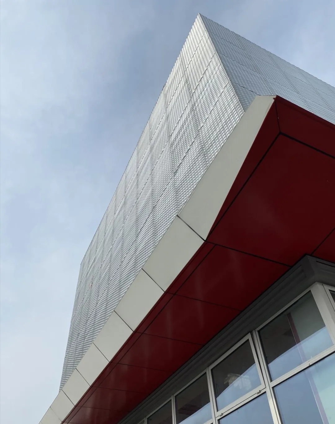建筑立面为高性价比的设计,利用了大型多孔金属网创造了一个优雅的面纱来管控内部的自然光并统一行政和研发实验室建筑的不同模块。该设计赋予外墙一种适合化学公司的既视感。