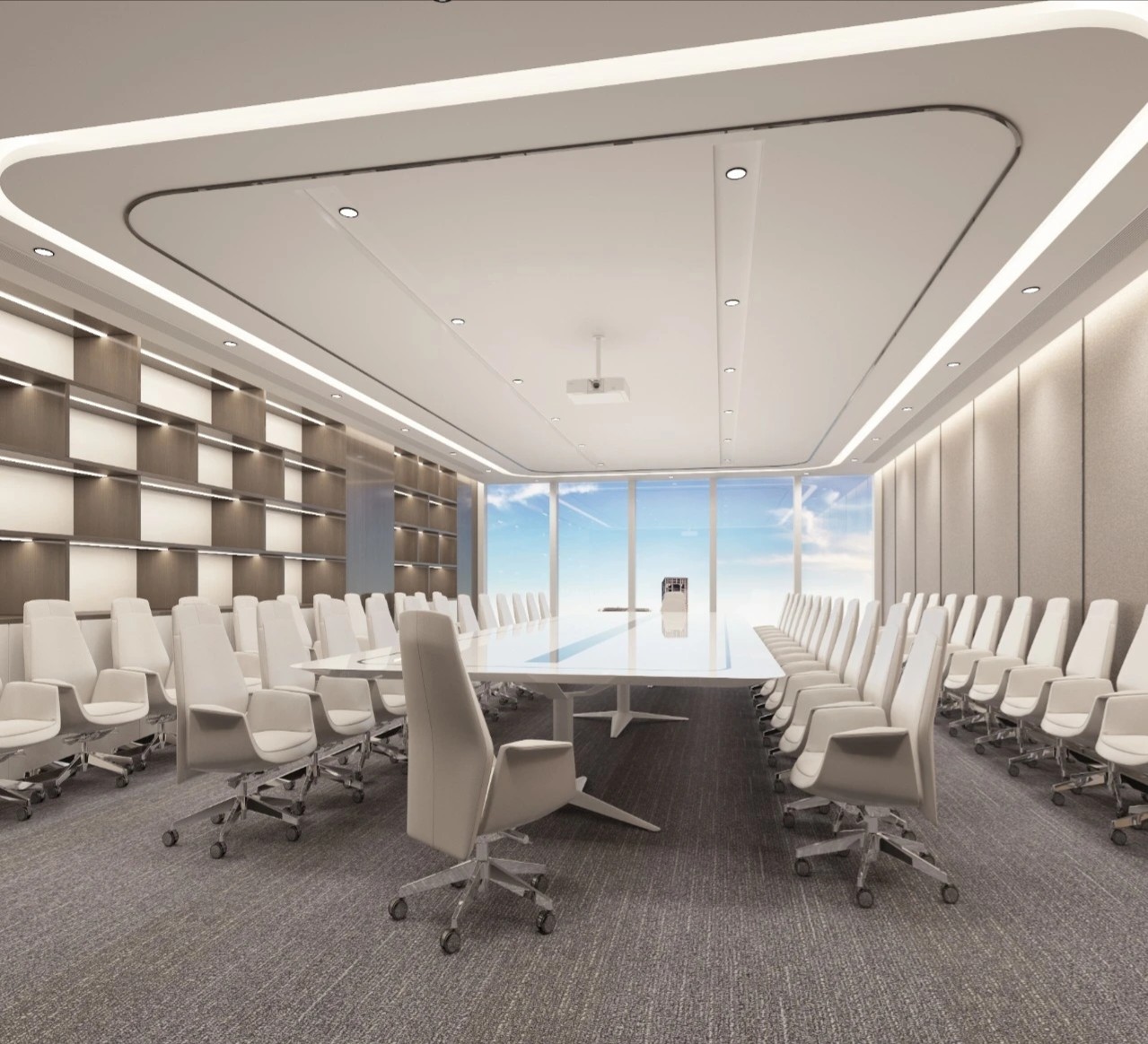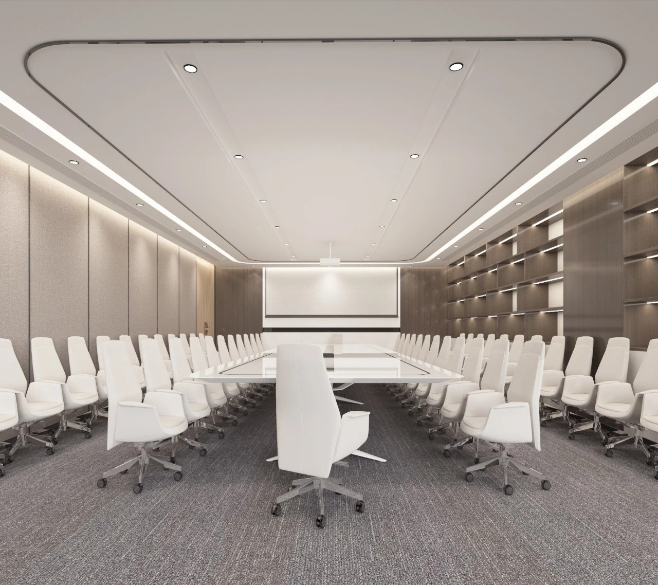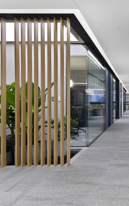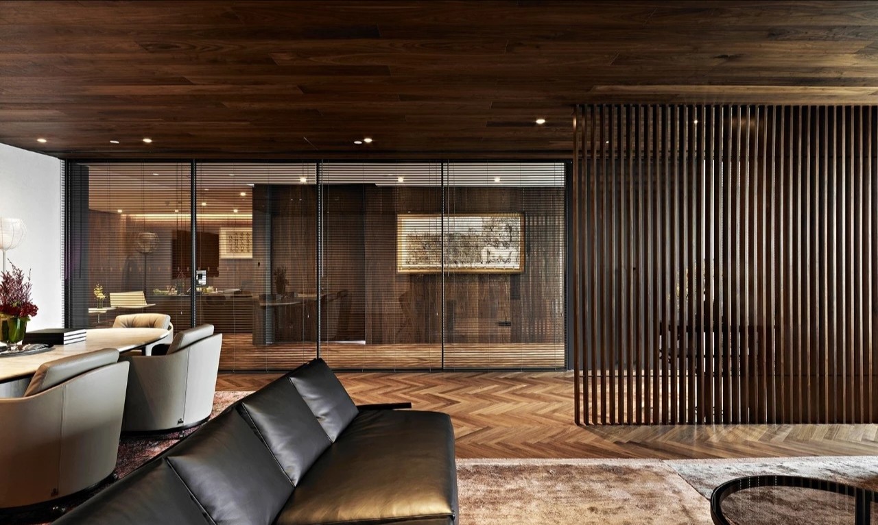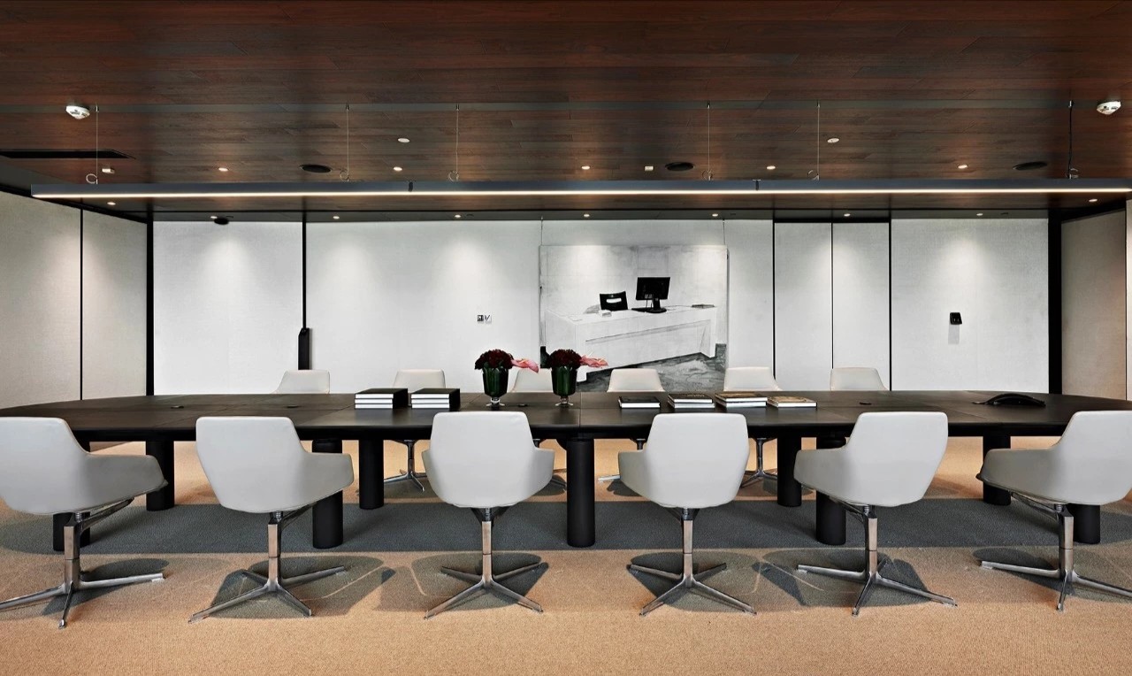 办公室分为两个出入口,一侧临近总裁办公区,通过管控可作为总裁及贵宾专用动线,另一侧则通往前台接待区,成为办公室主要出入口。