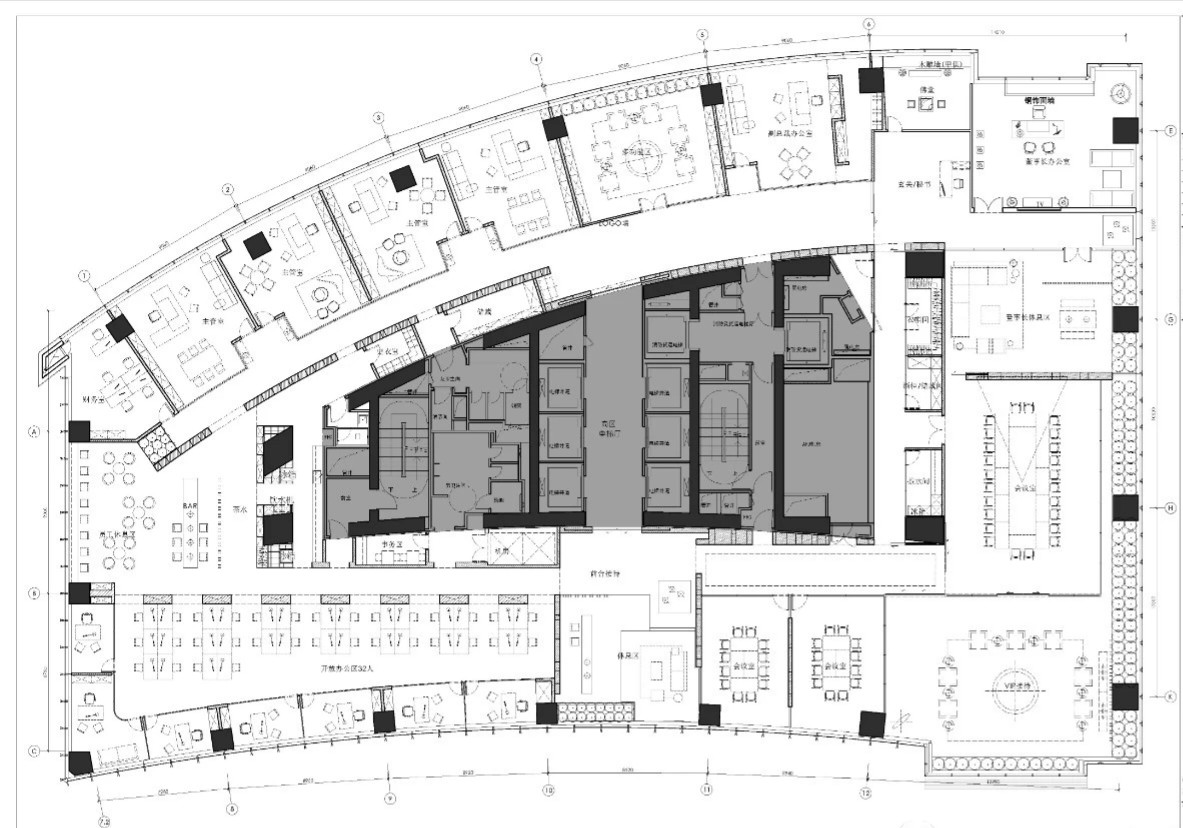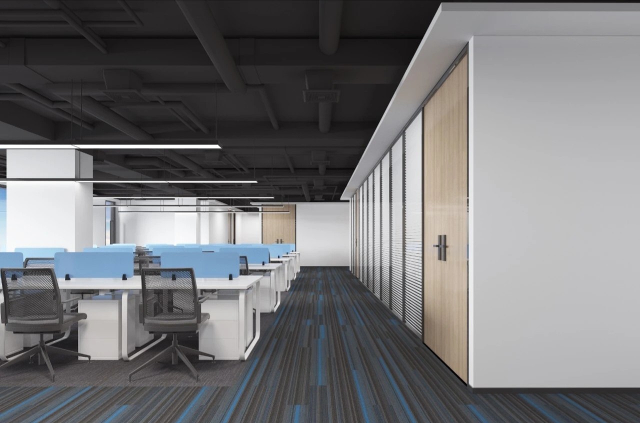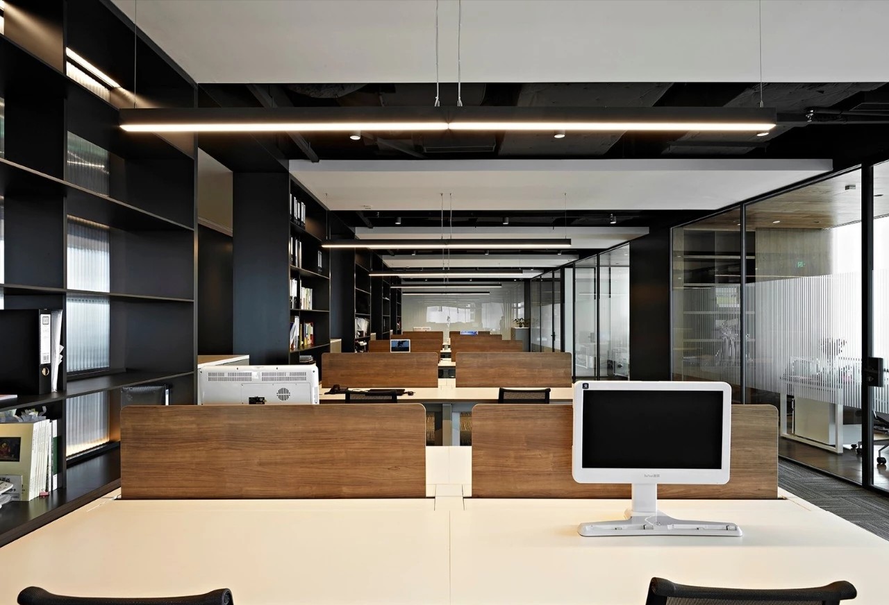 开放办公区强调空间的序列及虚实关系,设计团队试图利用色彩的交替寻找一种空间秩序,既很好地满足了功能需求又将整个空间延伸、整合在一起。