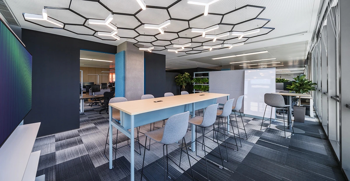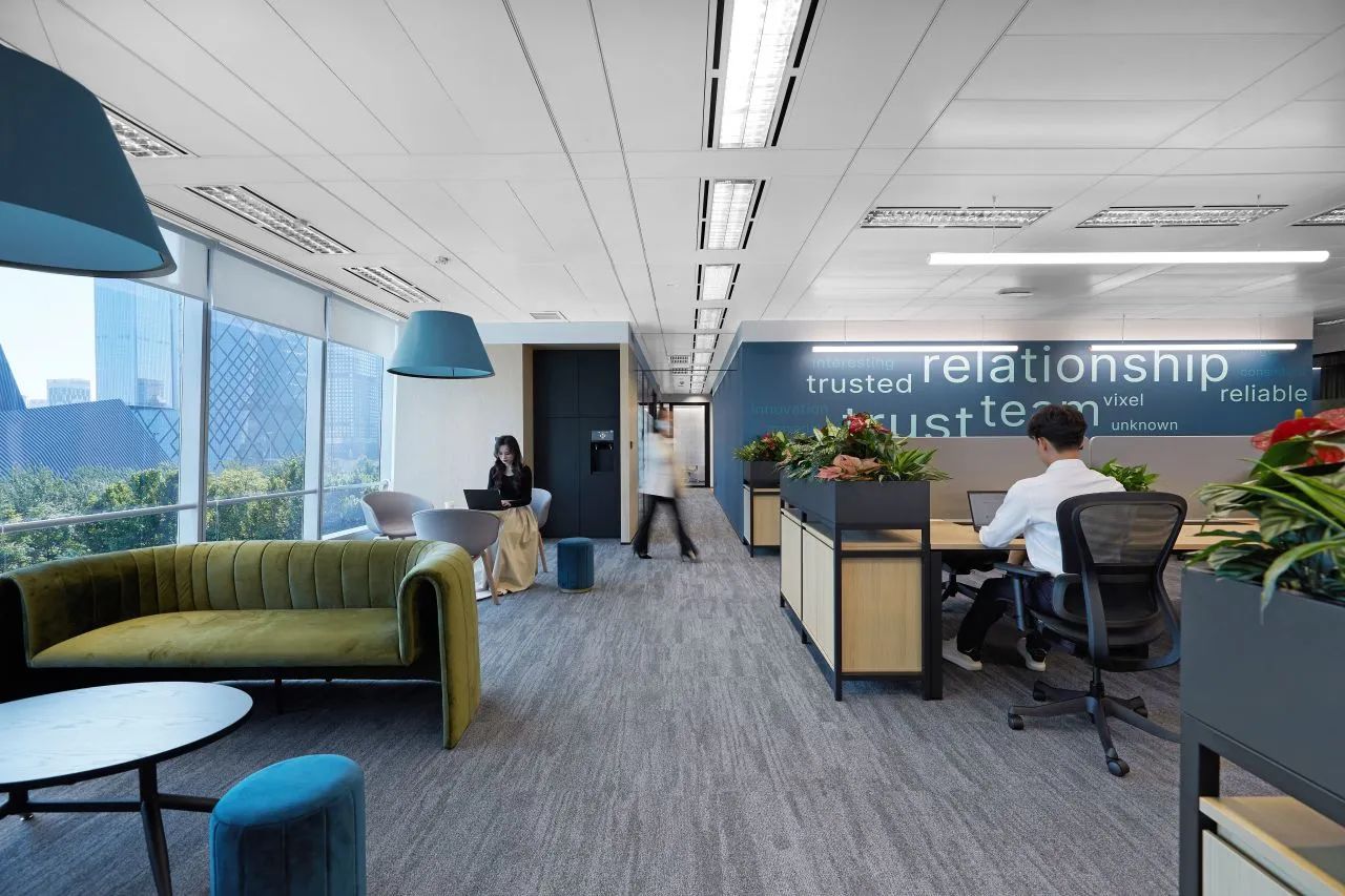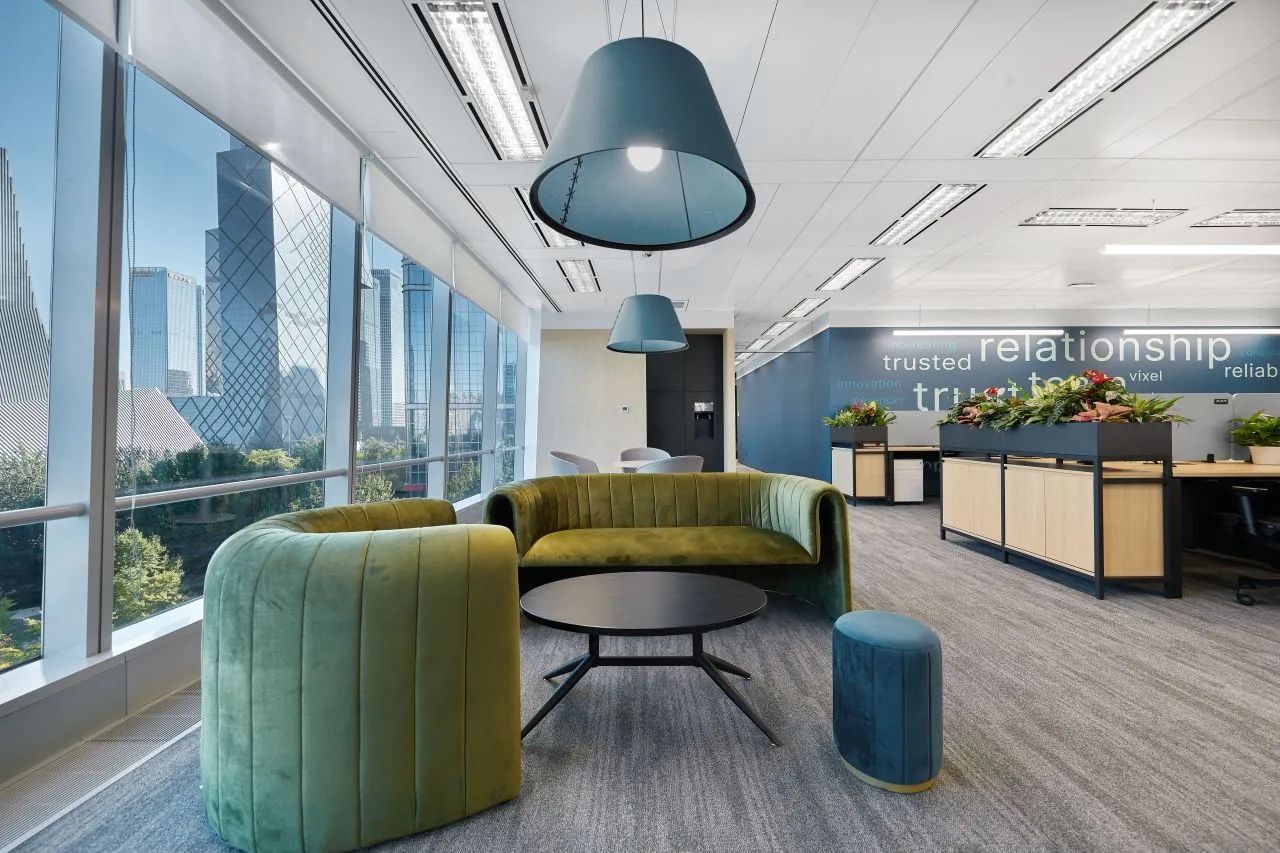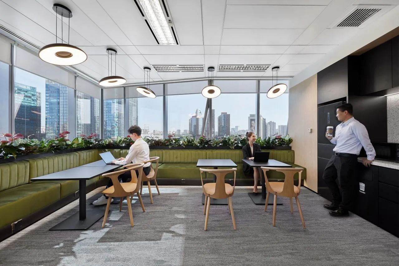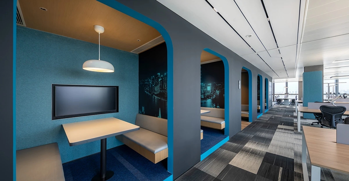 项目采用“数字河流”的设计理念,借鉴了上海历史悠久的水道和不断流动的数字信息之间,将其转化为诗意的平行,象征着物理和虚拟领域的连接。这个概念基础通过一系列的设计元素被赋予了新的生命延展性:地毯图案模仿了海滨和河流的聚汇,天花造型设计的灵感来自河流的节奏,让人漫步其中感受到到音乐作品的流动以渐强和停顿为标志。为了满足分隔专注性办公区域和配套独立功能需求,公共走道设计灵感来自石库门附近的老上海元素:上海的鲜明特征,标志性的门户元素,给现代工作场所一种地域文化归属感。办公场所包括3层,每层1150平方米,平面功能经过整体规划和布局,充分利用自然光线,混合了开放工作区、协作区和专注工作间。为了加强团队的沟通和协作的需求,每个工作组除了固定工位还布局了指定协作区域。这确保了每工位的最佳间隔,为团队合作创造了有利的环境和舒适度。总的来说,办公场所包括一流的设施,如一站式共享服务中心、图书区、冥想室、瑜伽室、健身室,以有助于在梅赛德斯一奔驰上海研发中心工作的员工健康和福祉的打造。此外,Gensler团队还对卫生间进行了扩建和重新设计,以符合公司的高标准和舒适度要求。
