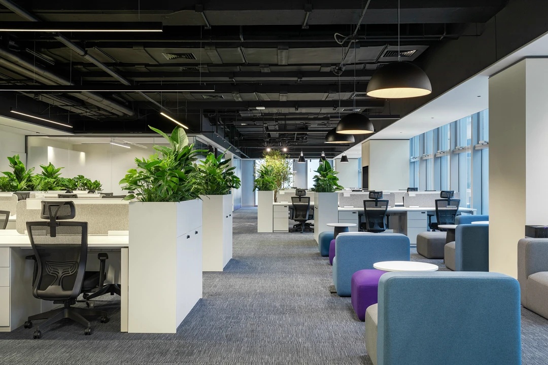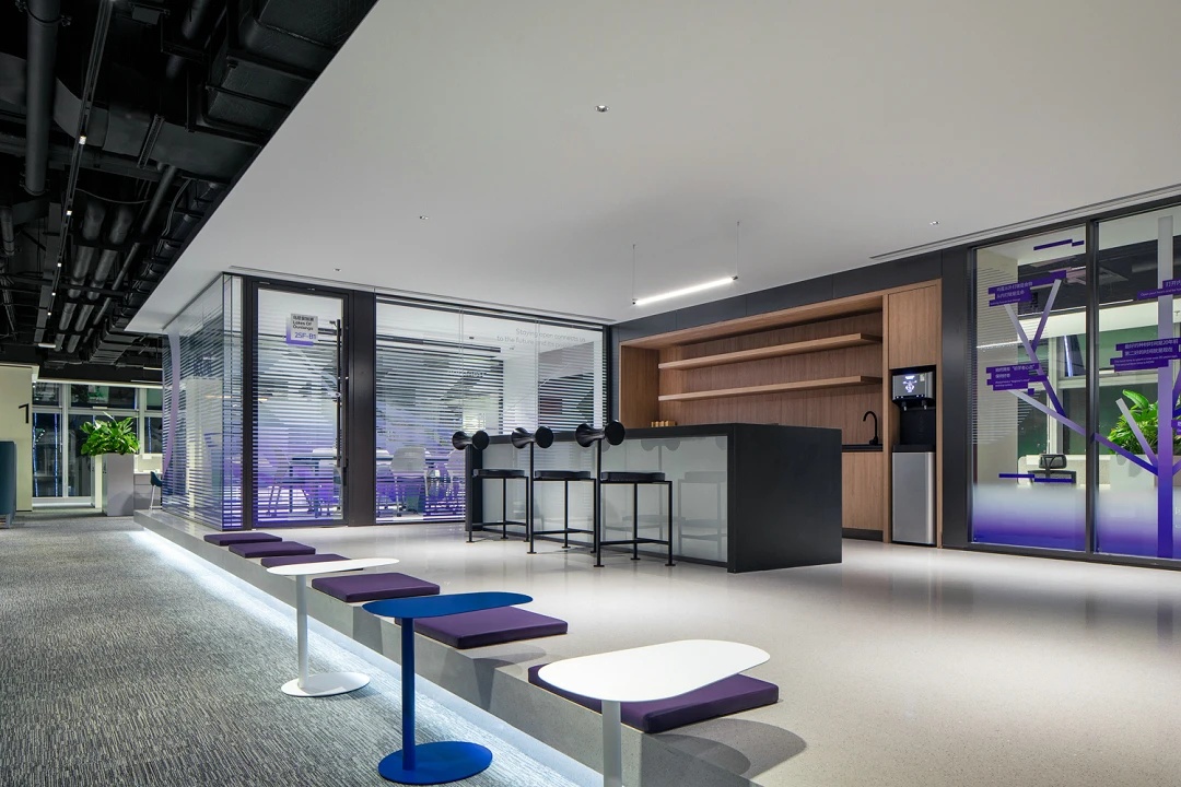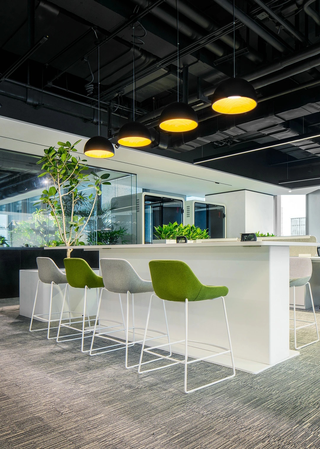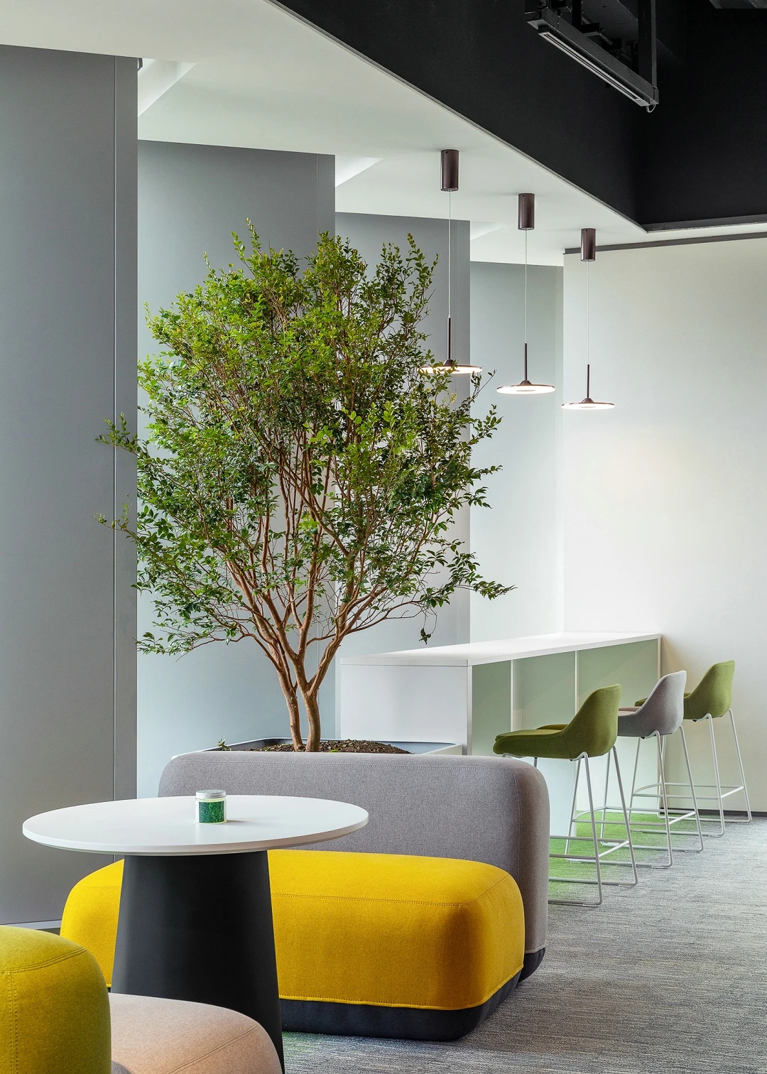 设计师又将自然景观巧妙引入办公空间,绿植从格子间探出脑袋,露台、户外花池、微景观等多重景观将大楼装点起来,空间与植物共生一体,钢筋水泥因此有了温度,忙碌的工作时光因为大自然的恩赐而变得缤纷斑斓。