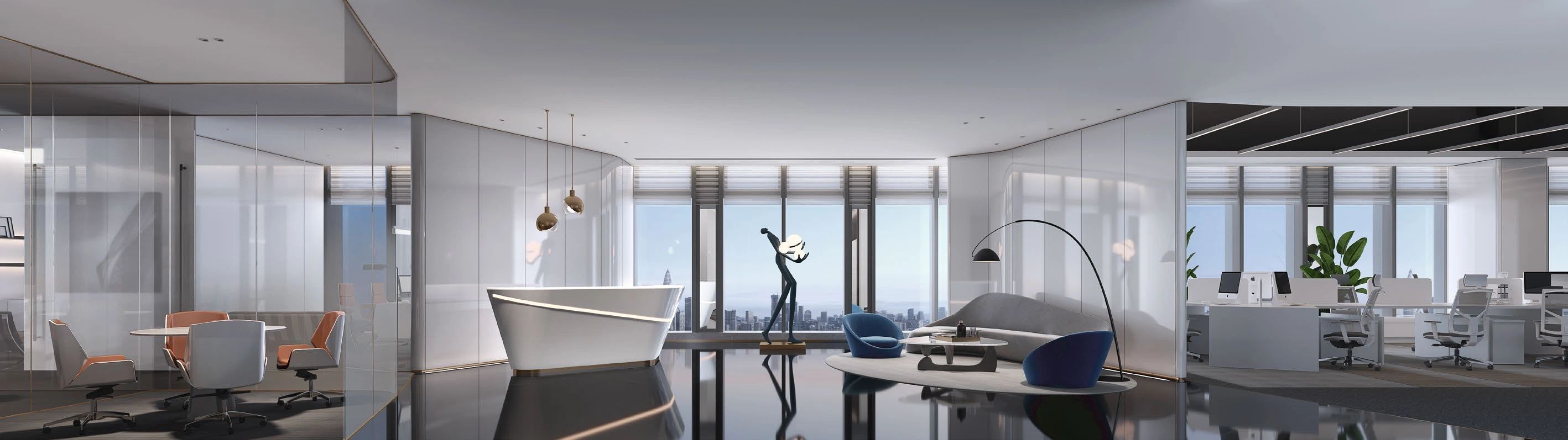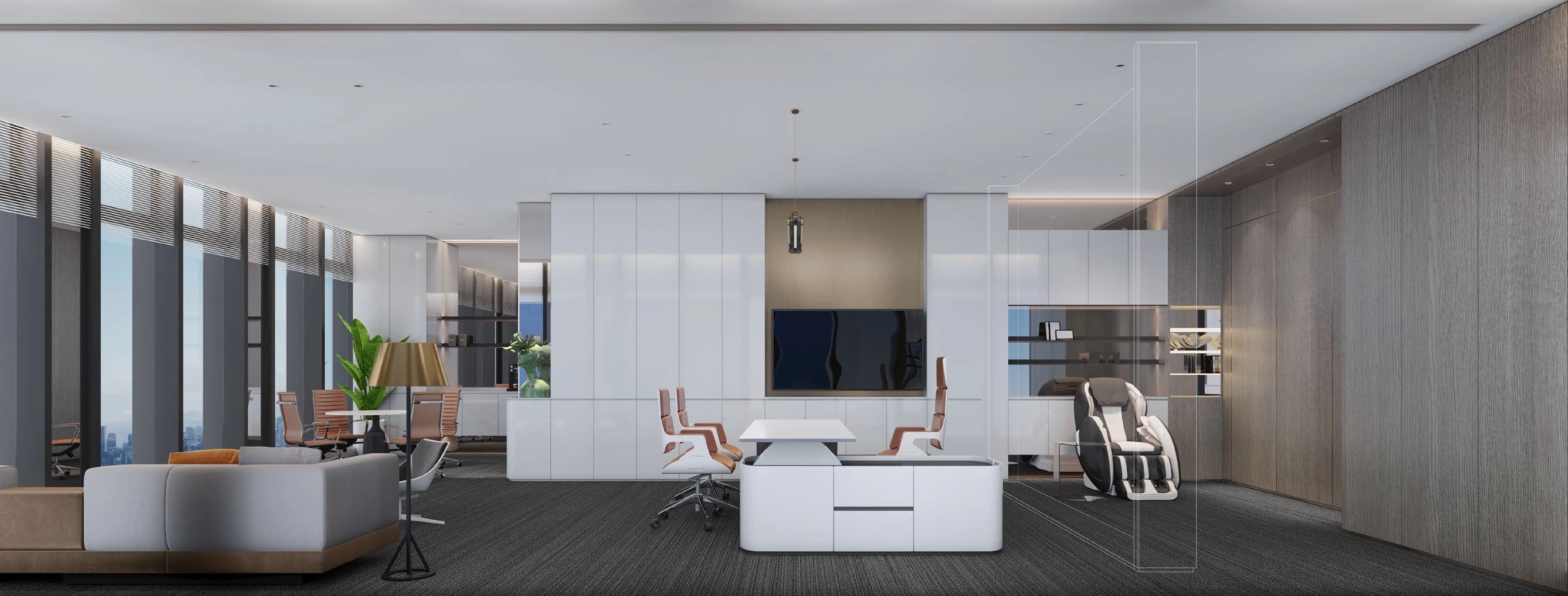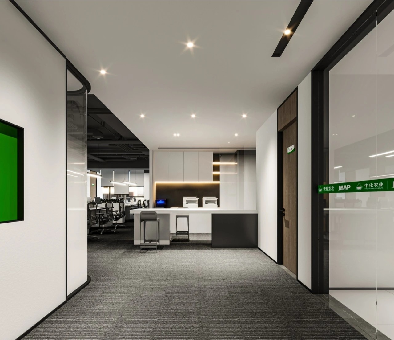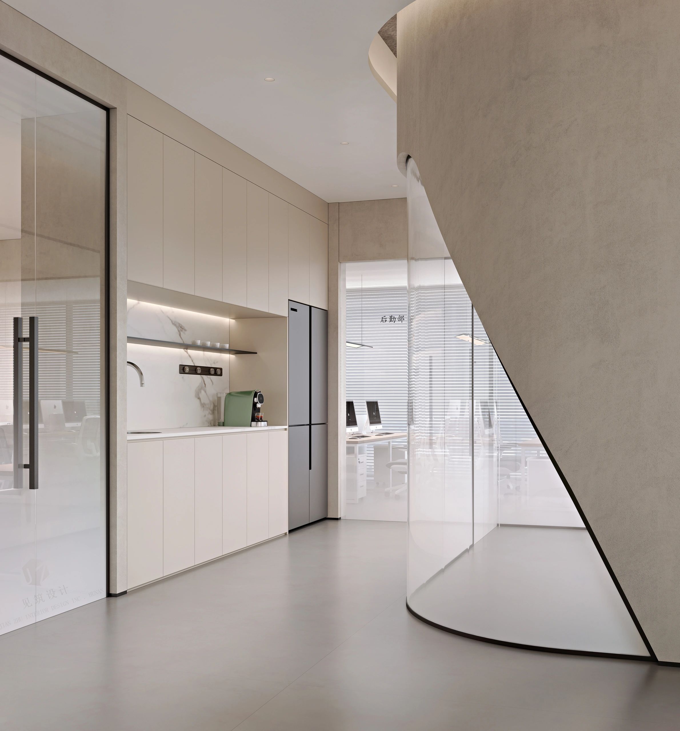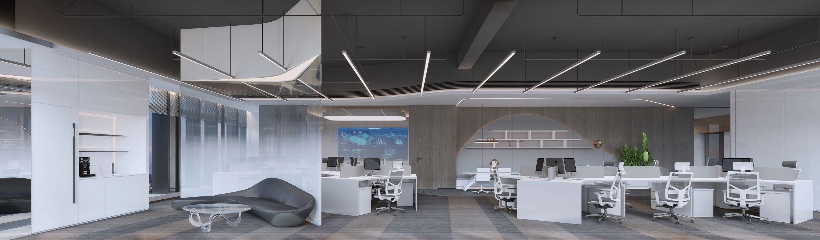 通过大色块的灯光,和绿色元素的健康和自然形态,巧妙融合了白色的大气,空间的沉稳,刚中带柔,营造出一种丰富而不失格调的层次感。呼应并延续了整体的设计风格,保持高度的一致性,在宽阔硬朗的大空间内,对话一个企业的过去与未来 。