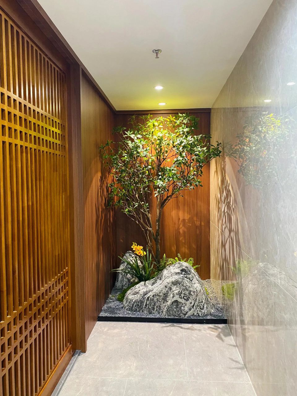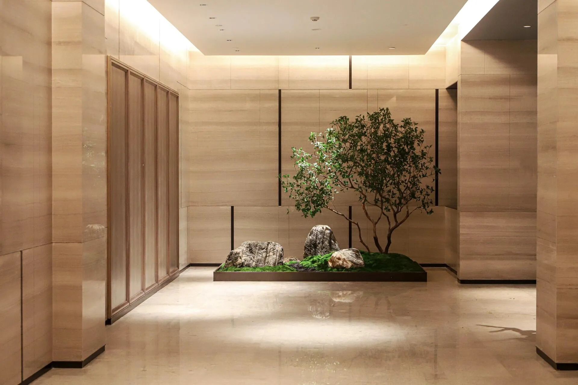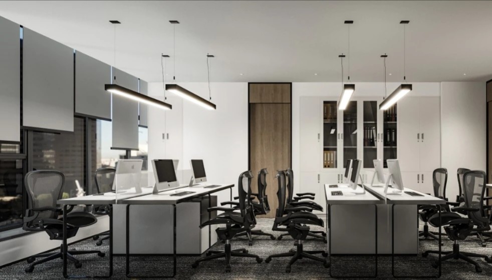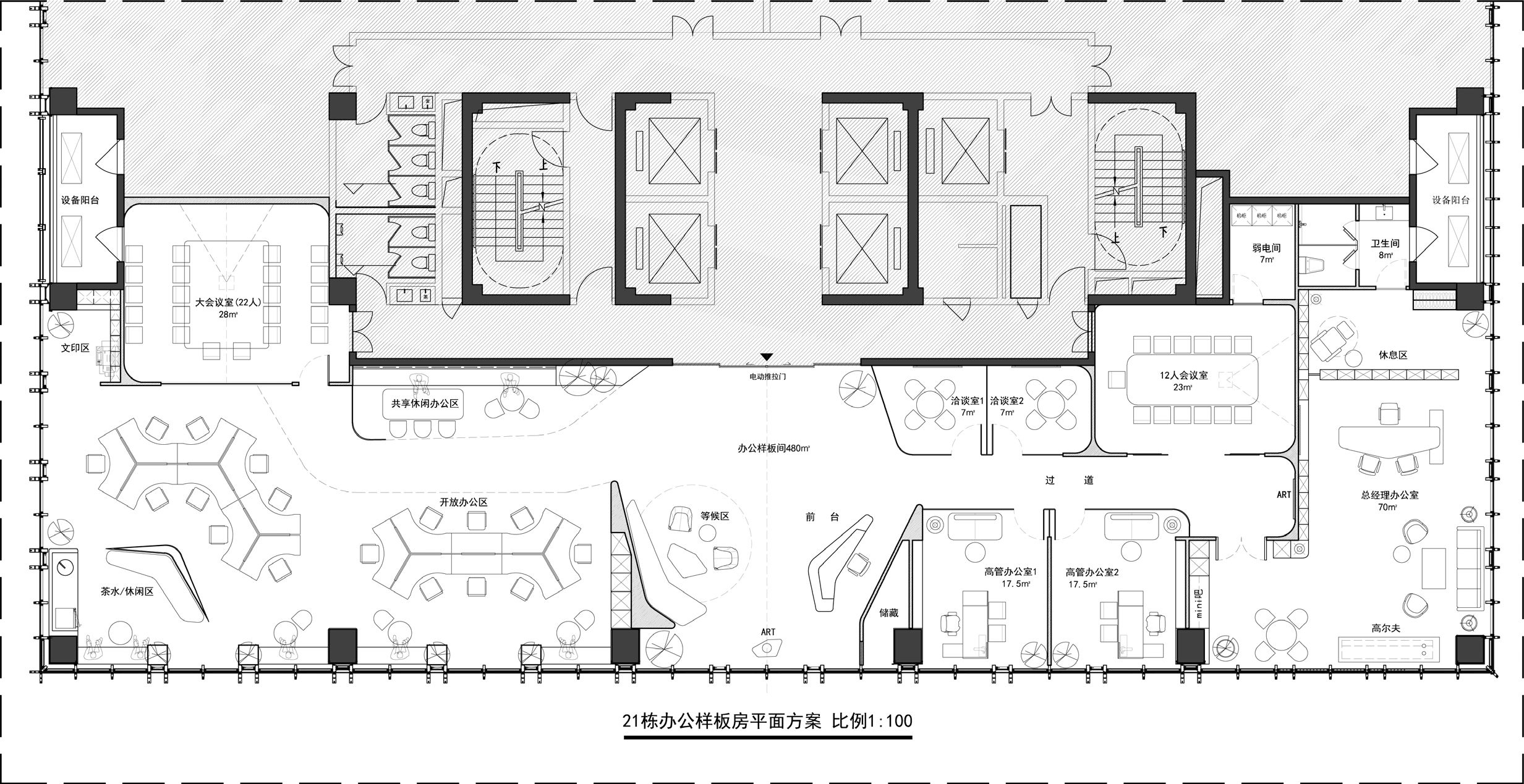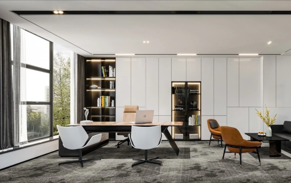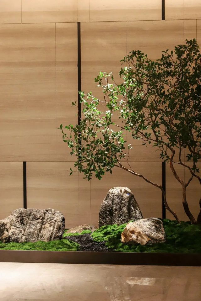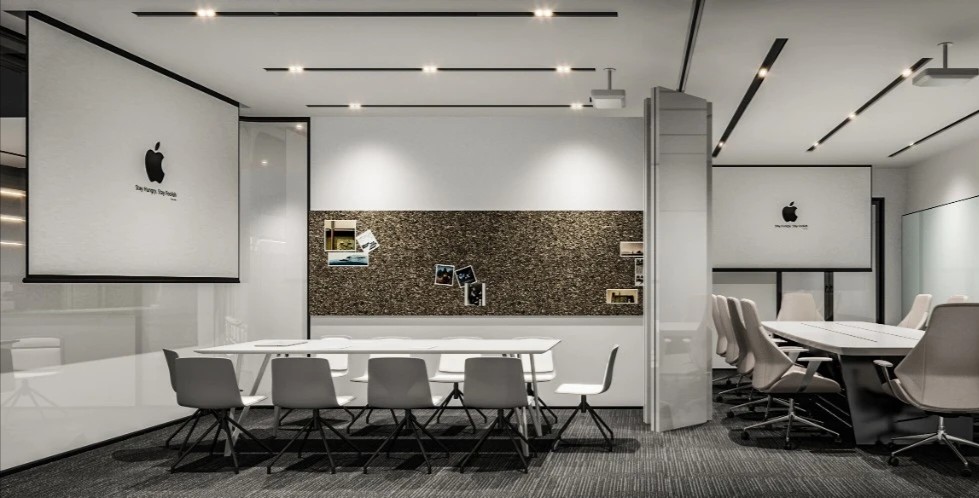 通过大色块的灯光,和绿色元素的健康和自然形态,巧妙融合了白色的大气,空间的沉稳,刚中带柔,营造出一种丰富而不失格调的层次感。呼应并延续了整体的设计风格,保持高度的一致性,在宽阔硬朗的大空间内,对话一个企业的过去与未来 。