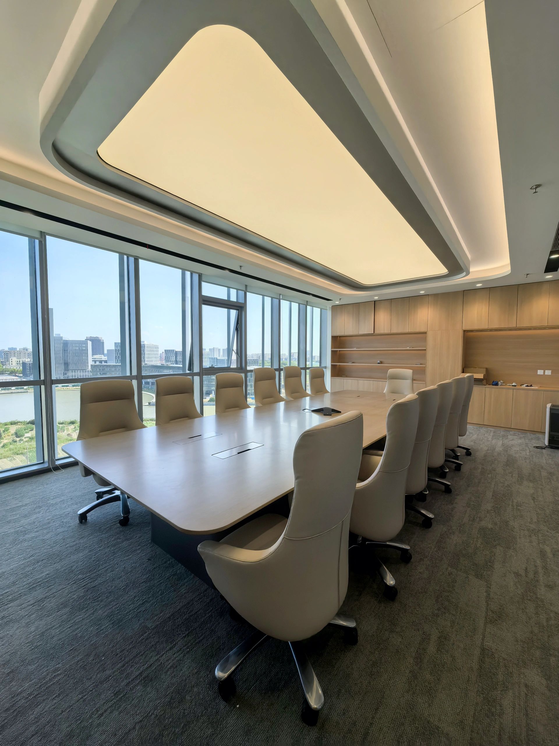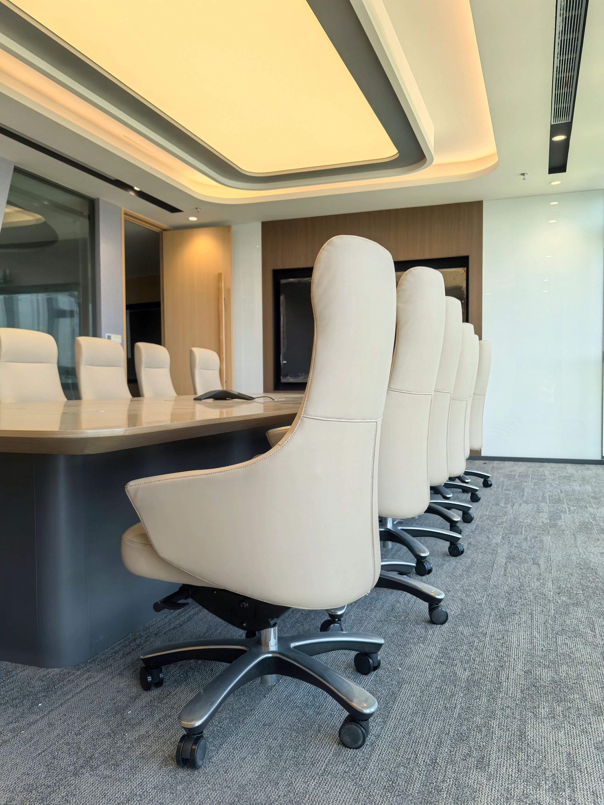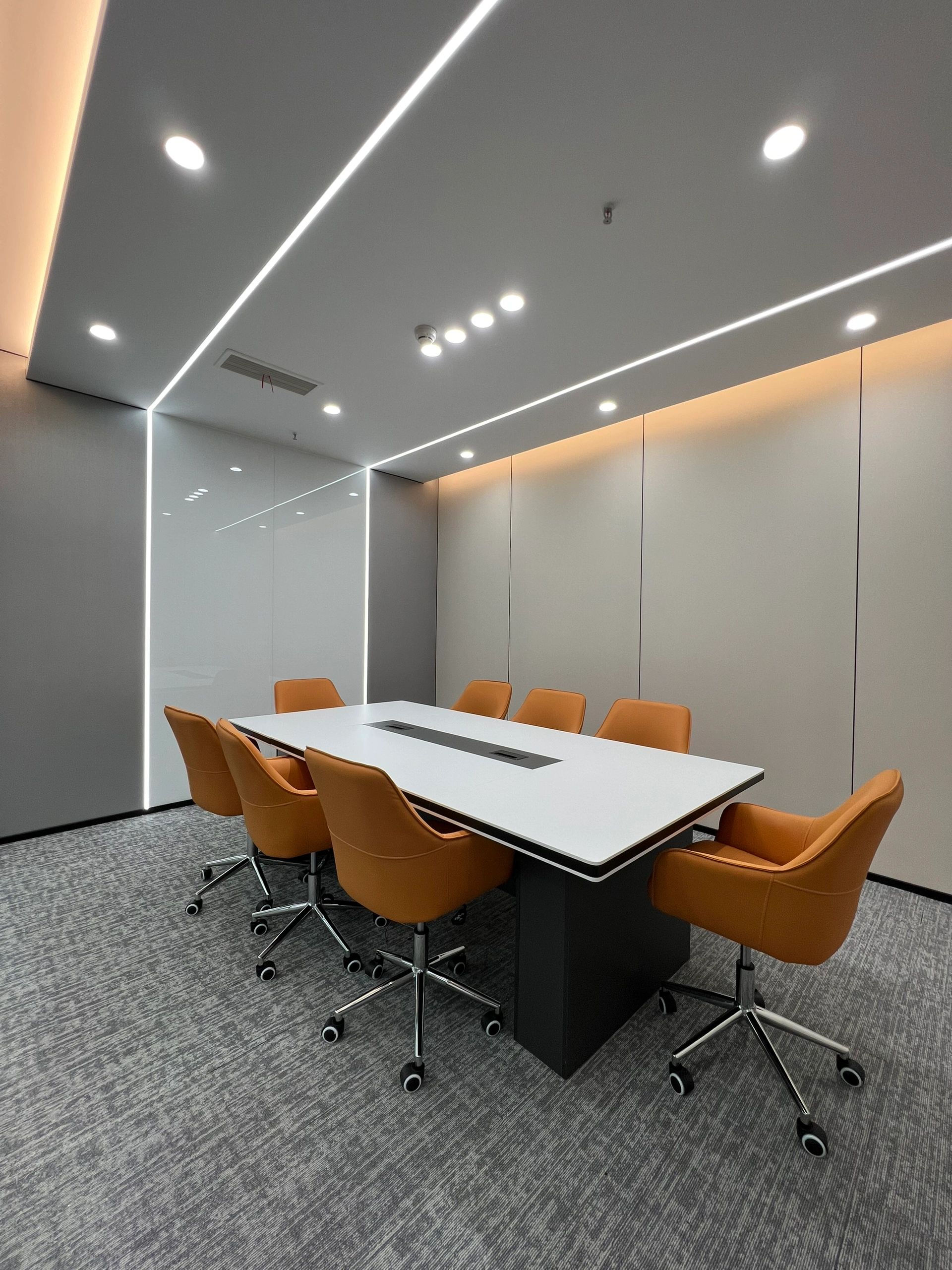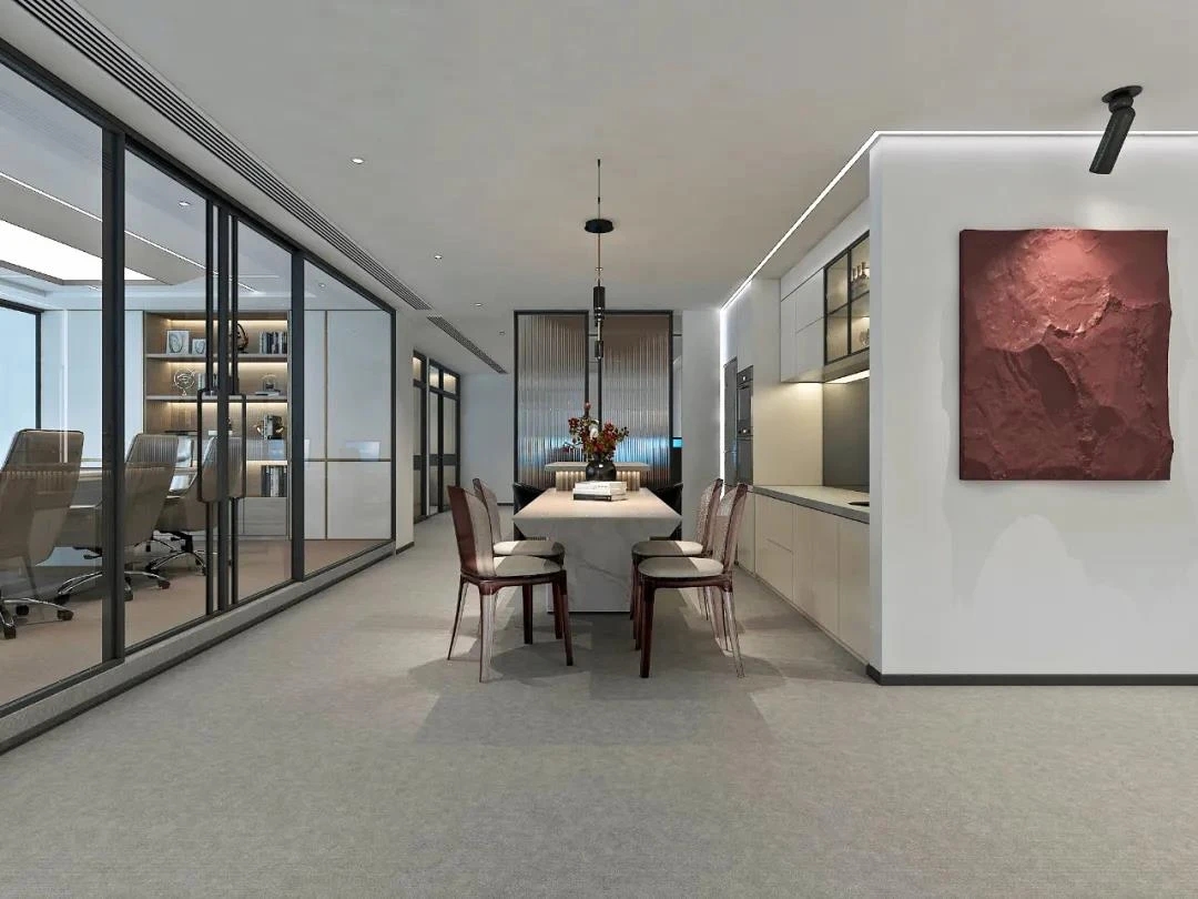 会议室是传达公司经营理念,集思广益解决问题,头脑风暴寻求创意的核心空间,更是商务洽谈的重要舞台。在与项目业主的不断沟通中所形成的默契,使我们更容易捕捉业主诉求并对其进行空间转译。减少沟通成本的同时,也能节省实际的建造成本,高品质地将设计概念落地。