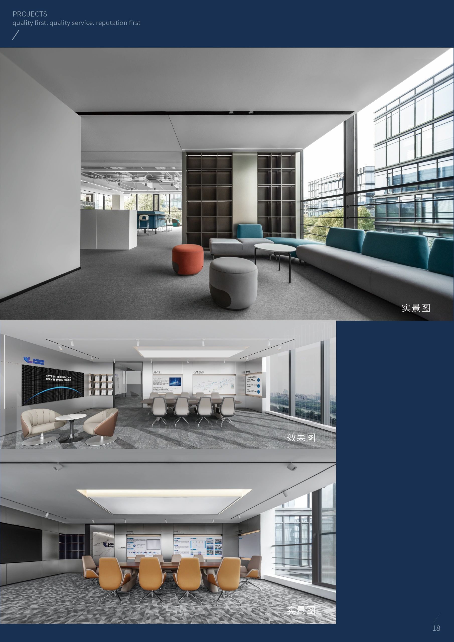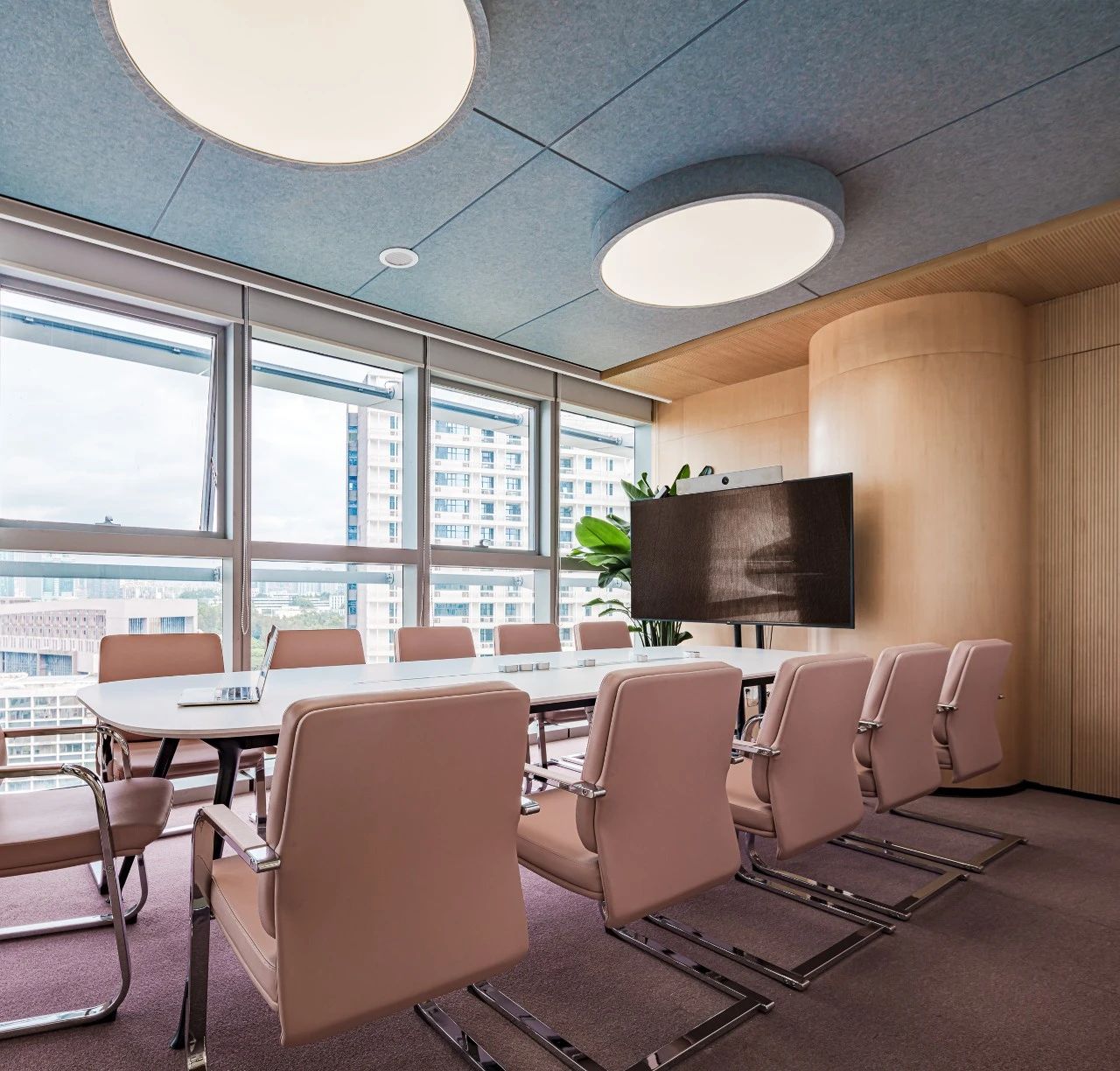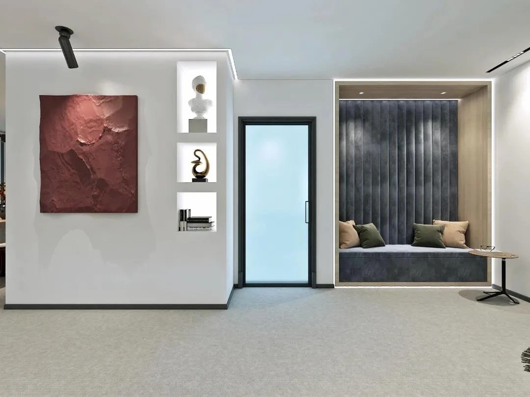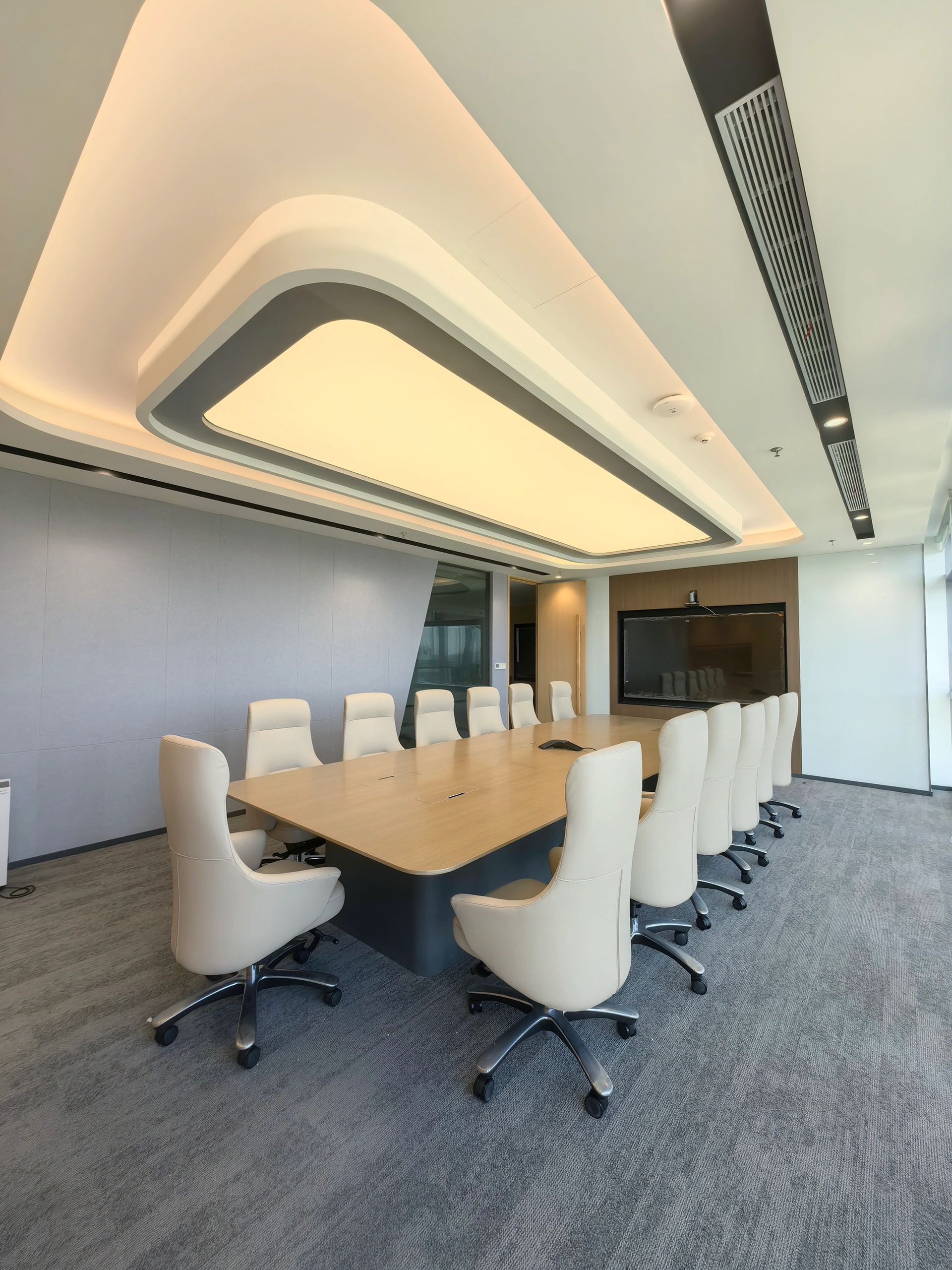 会议室是传达公司经营理念,集思广益解决问题,头脑风暴寻求创意的核心空间,更是商务洽谈的重要舞台。在与项目业主的不断沟通中所形成的默契,使我们更容易捕捉业主诉求并对其进行空间转译。减少沟通成本的同时,也能节省实际的建造成本,高品质地将设计概念落地。