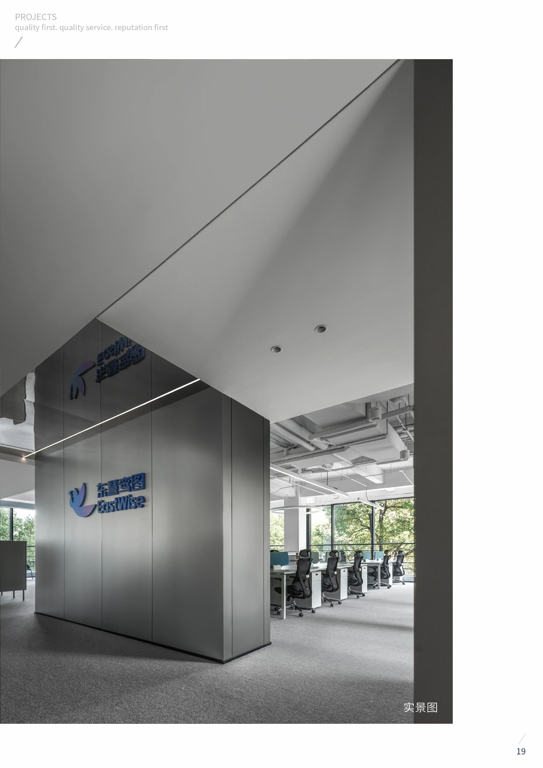 面对现代繁复的生存与工作状态,人们更加看重来自内心的安定与纯粹,而对于办公空间而言,亦追求一种有序的简单与宁静。通过白色烤漆板、液态金属板及木饰面等材料方面的推敲,使得整体空间在视觉上相互呼应、联结。