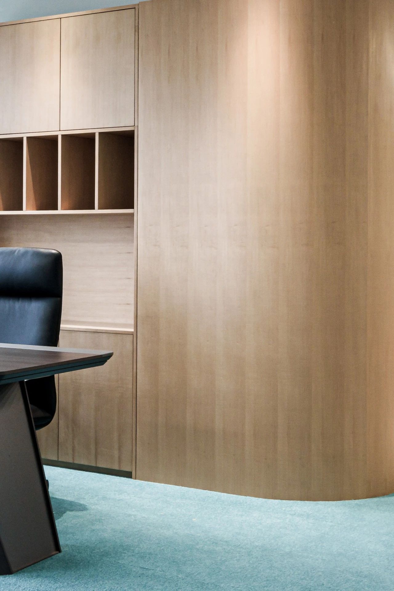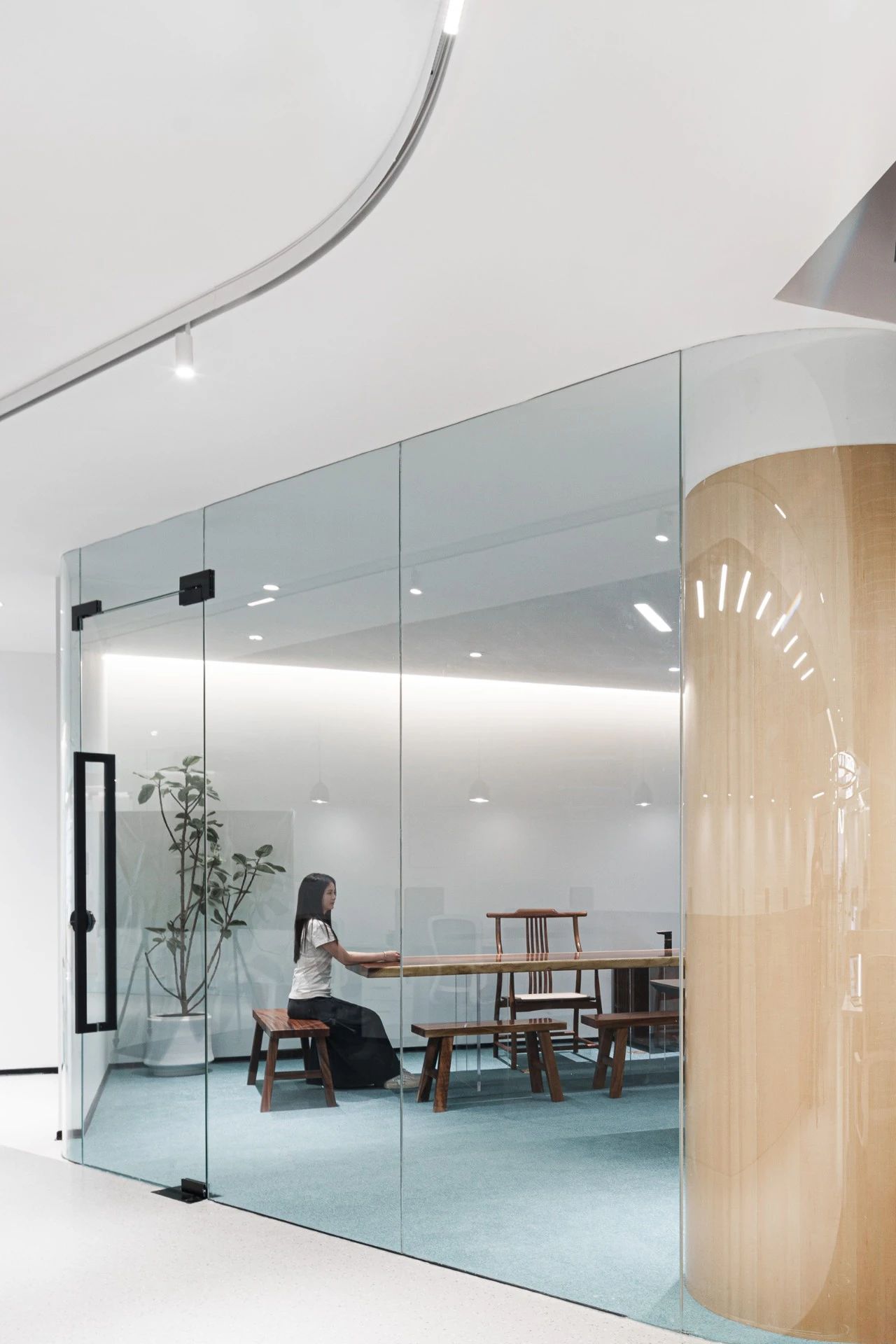 茶室是生活之趣,居所之形。作为主材,木质在茶室进行了大面积使用,铺陈于墙面,延伸至室外,意在创造一种简洁、无干扰的办公环境。