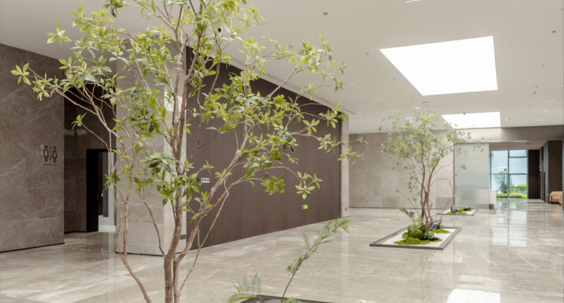 小红书的立体logo稳置于绿植前方,标志着这里就是小红书的信息散播的核心区域。没错,配合大屏幕的动态演示,这里将成为小红书的重要信息的宣讲地与发布区,小红书的每一次的革新与巨变也都将从这里开启。