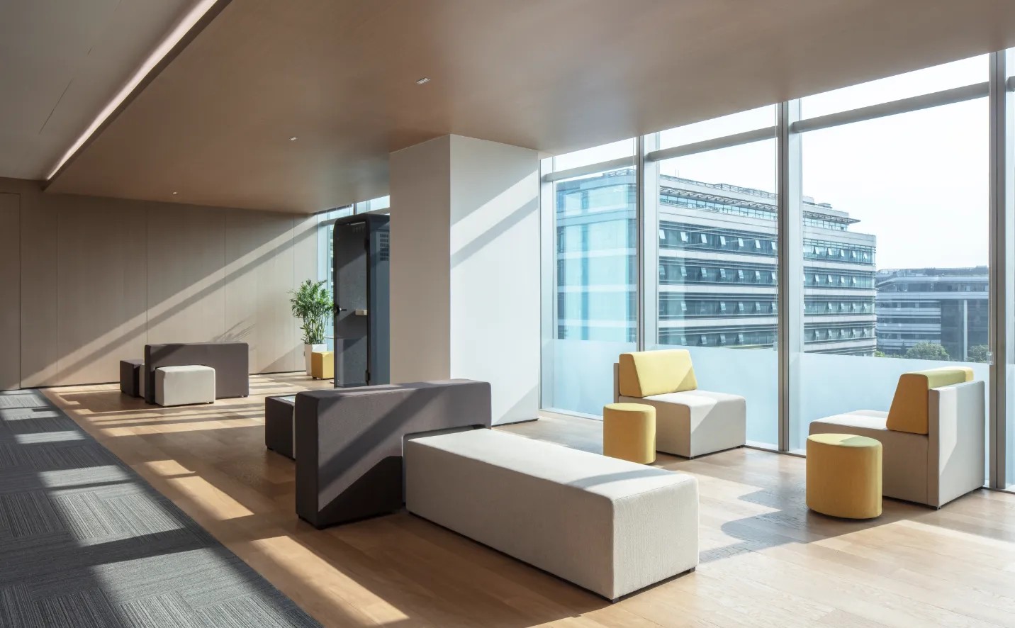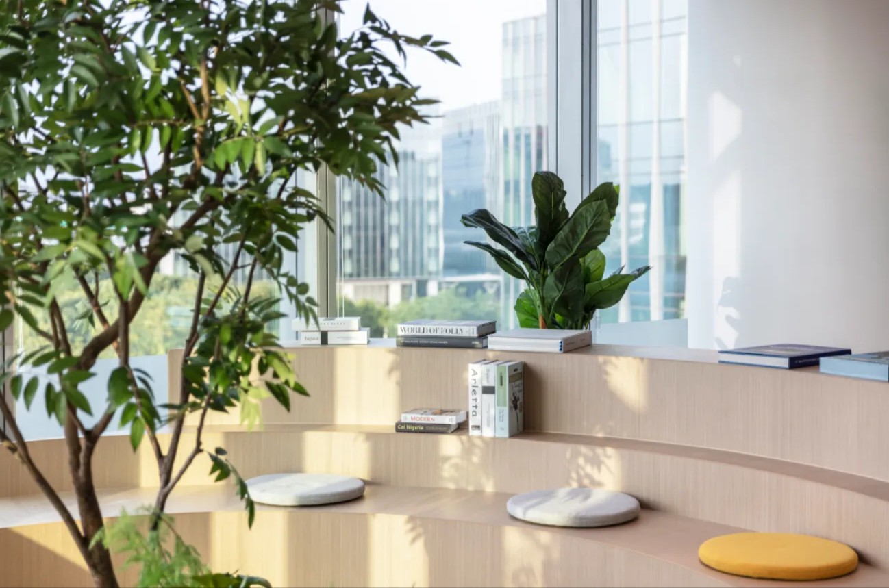 充足的阳光、柔和的光源,舒适的沙发与艺术装置,让人从繁忙的工作状态中得以暂时离开,享受美好的工作闲暇。
