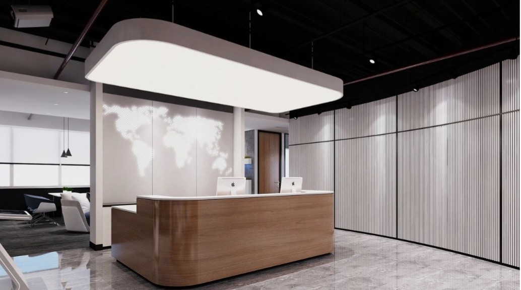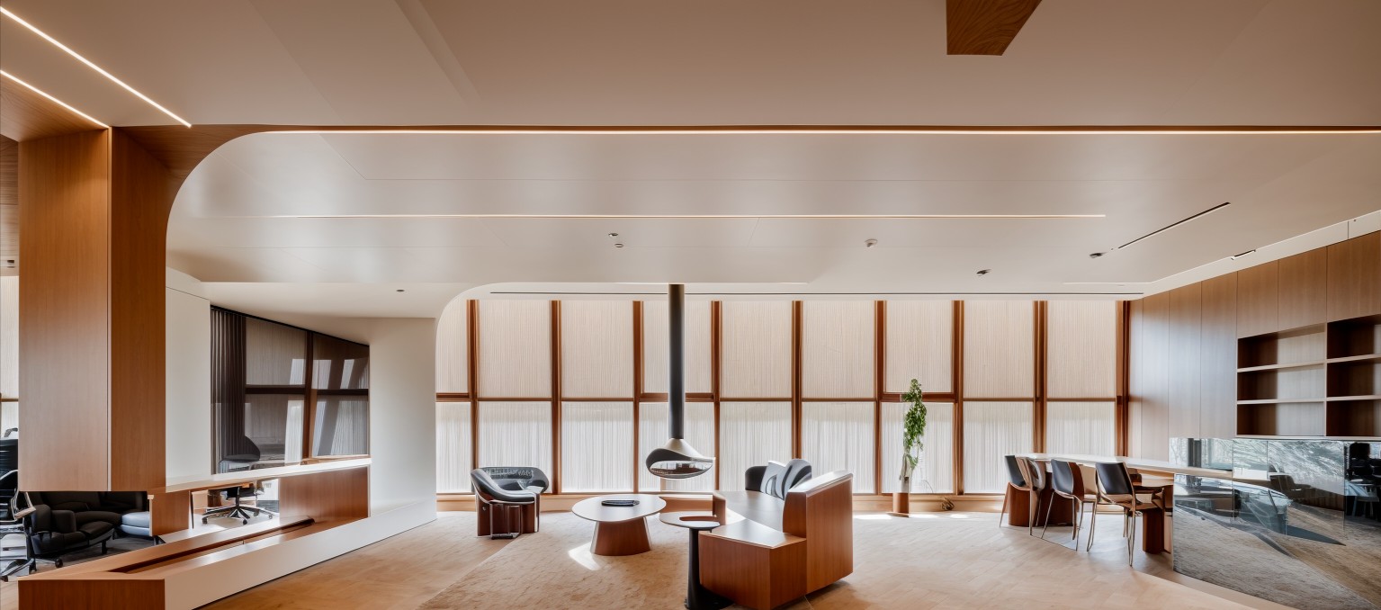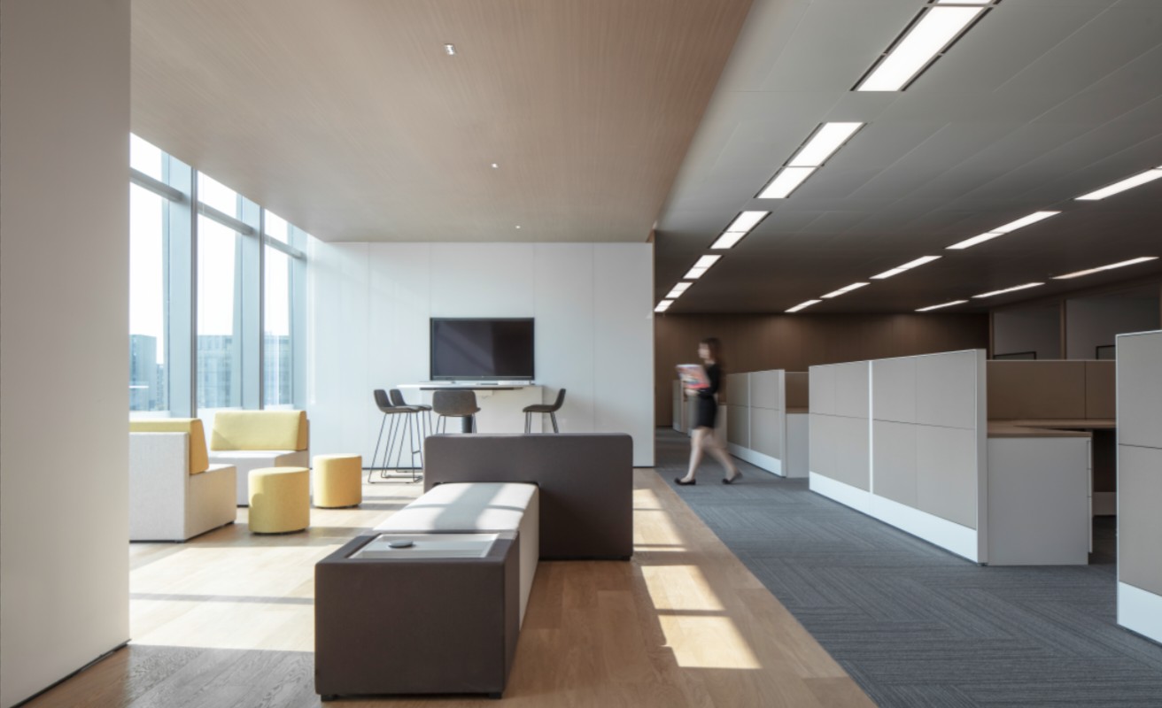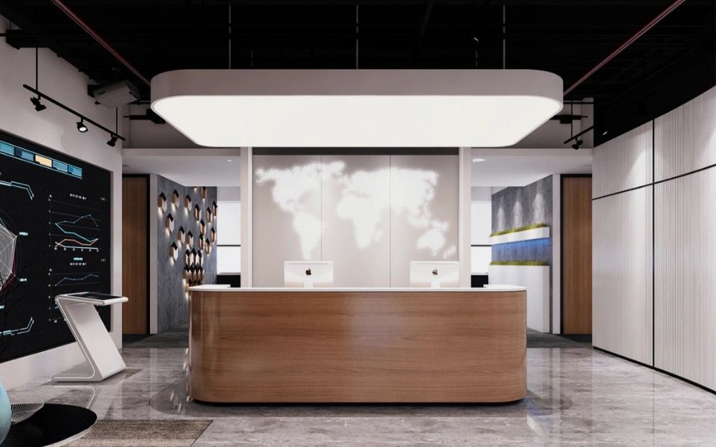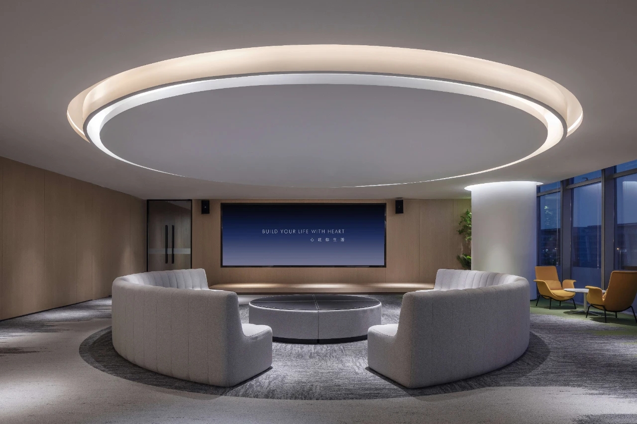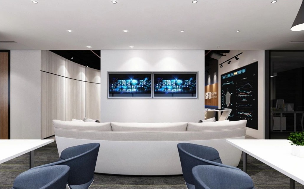 致力于将室内互动关系融入到设计中去,将形式、质感、材料、光影、色彩等要素汇聚在一起,创造一个极具辨识度的商务氛围,并注重营造现代与艺术结合的新办公空间。