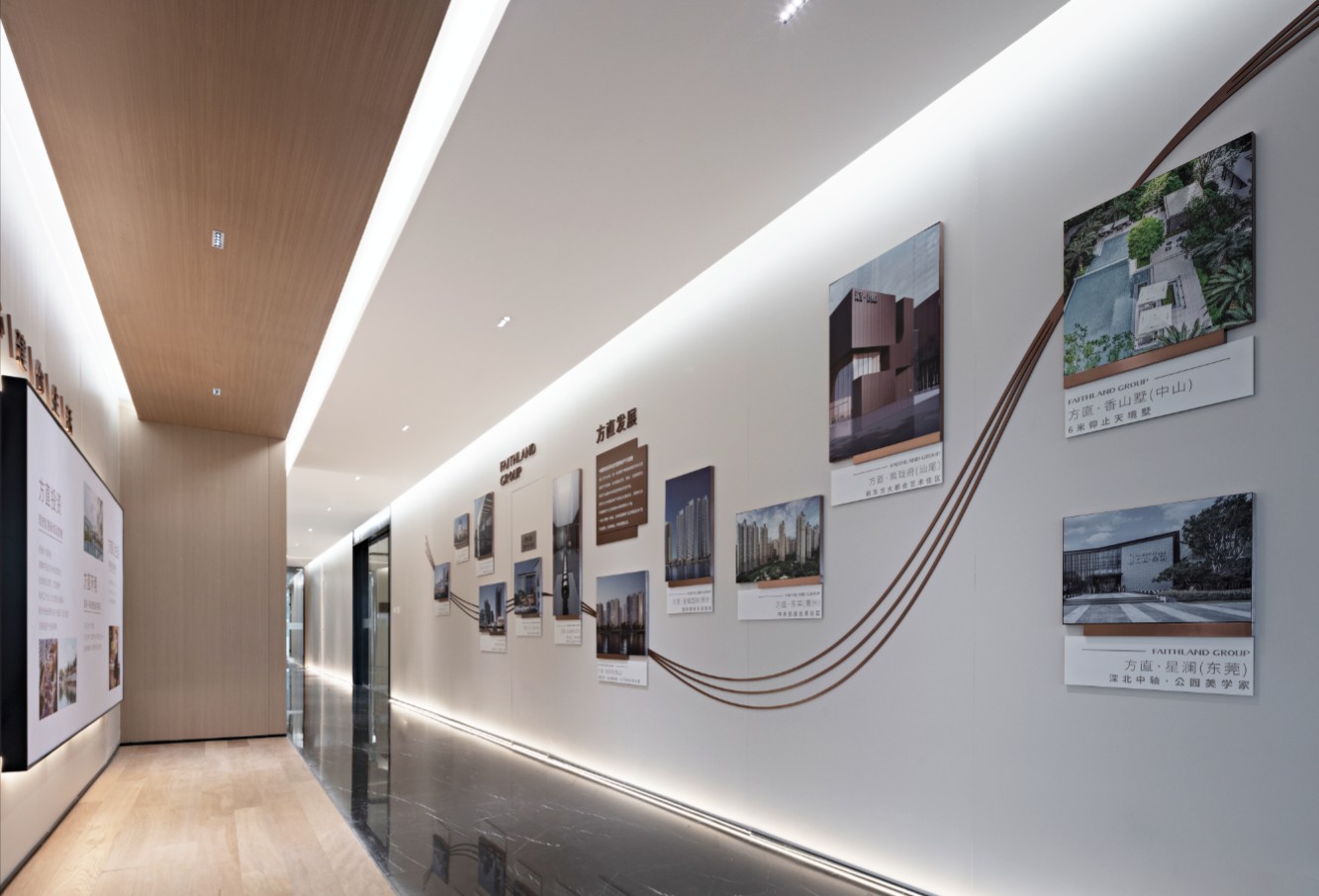 步入前台,映入眼帘的是采用喷砂雕刻工艺深刻于洞石墙体中的“Build your life with heart”,心建你生活,代表着方直集团的企业愿景,为了顺应人们美好生活的愿望,方直把生活从室内向室外延伸,从一个精品到无数的作品,重新定义了区域价值与形象。