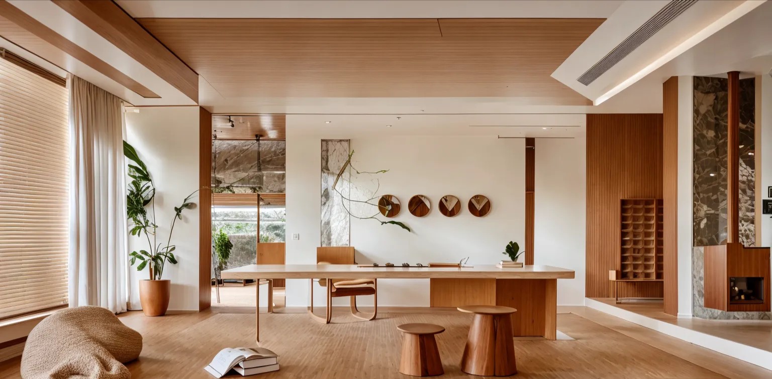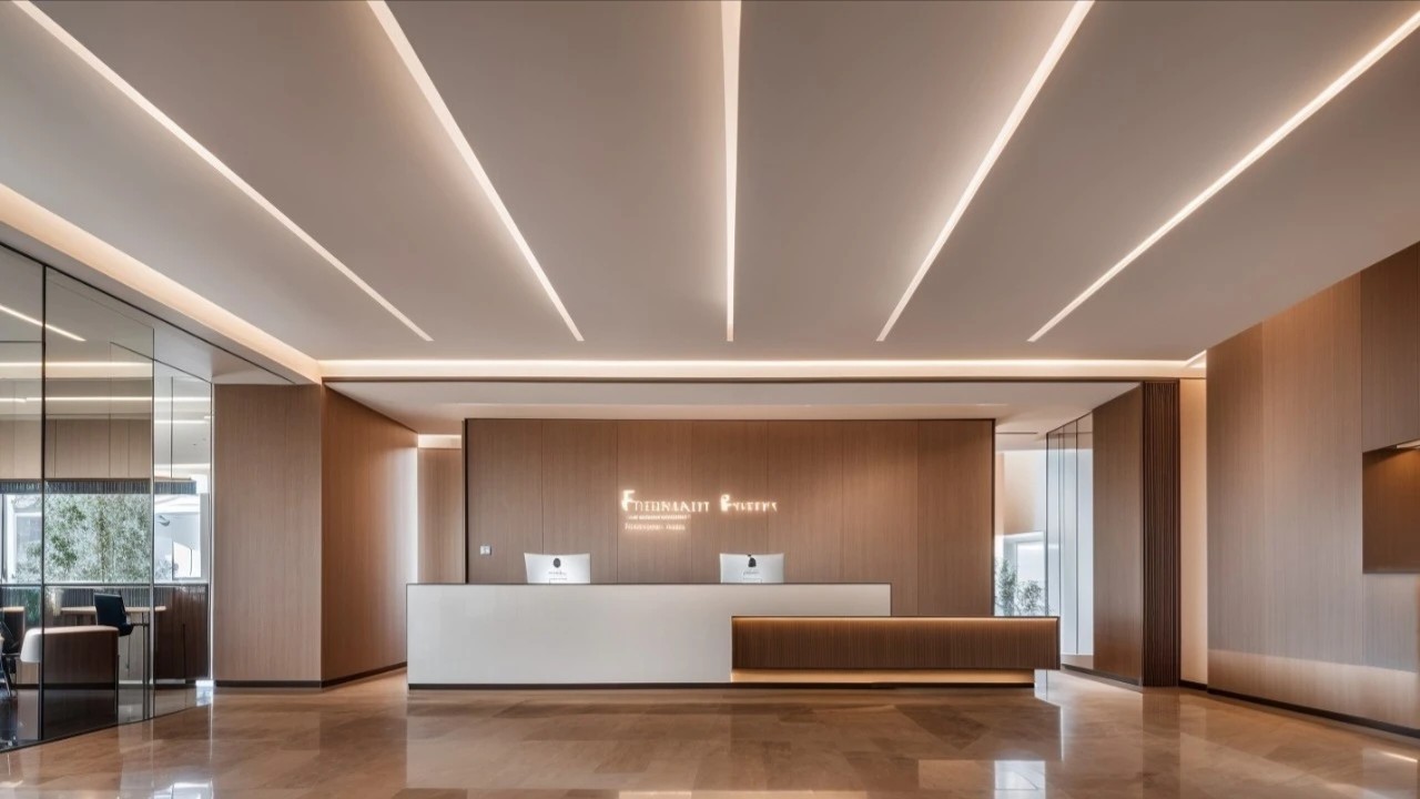 极简风格的接待前厅,在设计环节中运用流畅的线条及现代感的材质,如大片铺开的木饰面,与空间大面积的留白,意境高远,给来访者带来更多想象的空间。