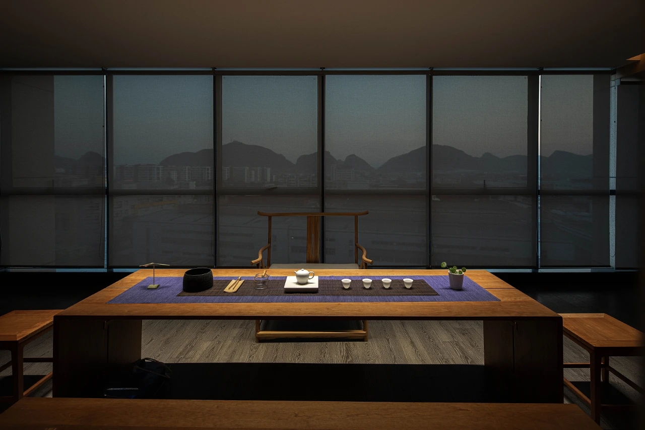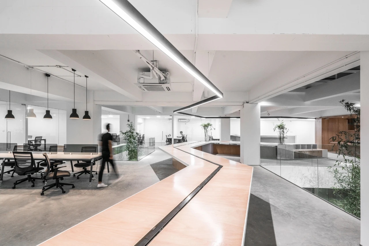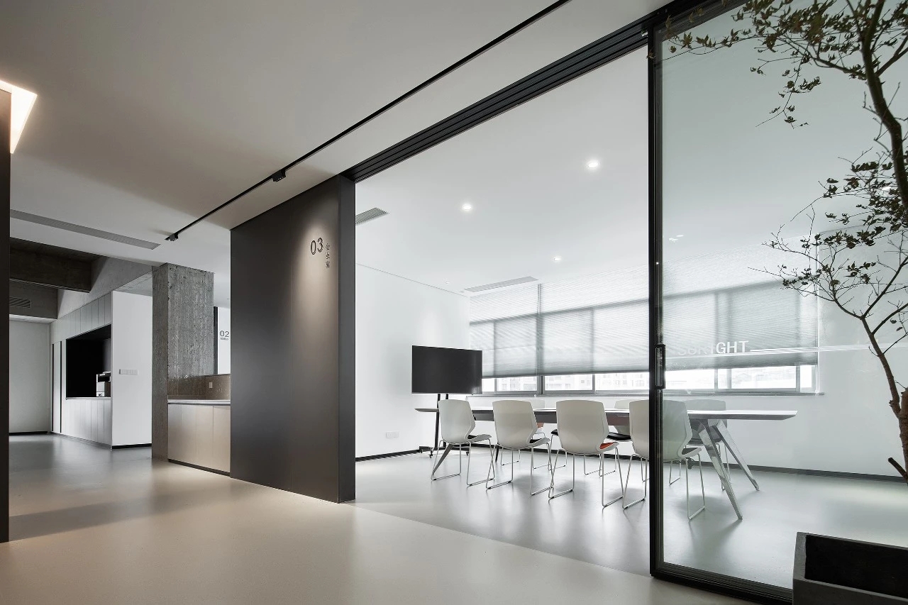 设计理念:本案是办公、商务接待,一体化多功能空间。艺术与自然环境的融入,弱化室内外的边界感,同时,赋予整个空间自由的艺术之美。设计师充分利用每个空间区域的光影与不同材质的质感,呈现给个空间独有的韵味。