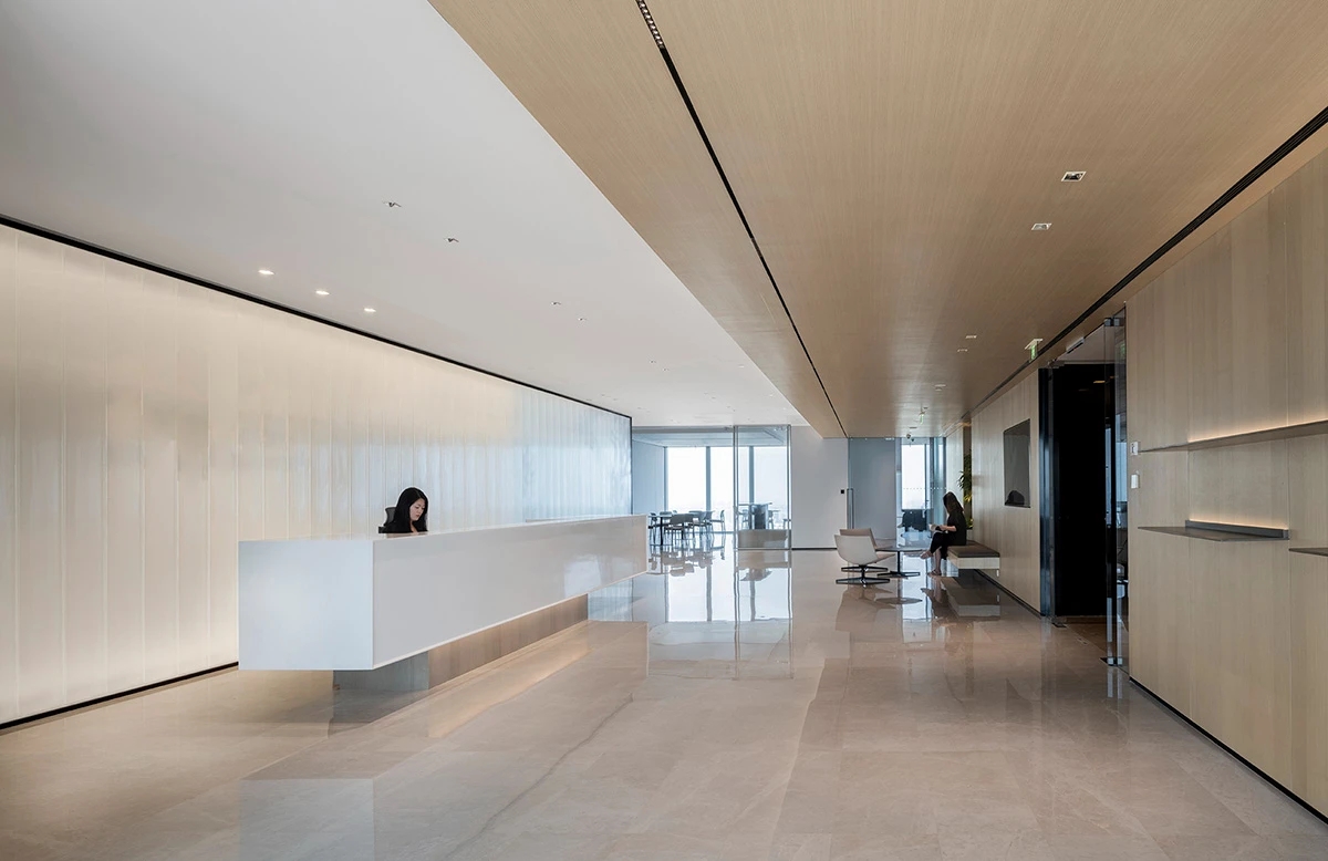 这是一家年轻、注重品质并富有个性的投资公司。以极简的手法,借助透光的材质,将活力与进取、清晰与含蓄富有张力地表达出来,并辅以温暖的木色和绿植点缀,营造了温和亲切而又专业严谨的空间氛围,呈现出低调的优雅与精美。设计力图表达了投资公司独特的内涵与价值观,并予人以隽永的印象。