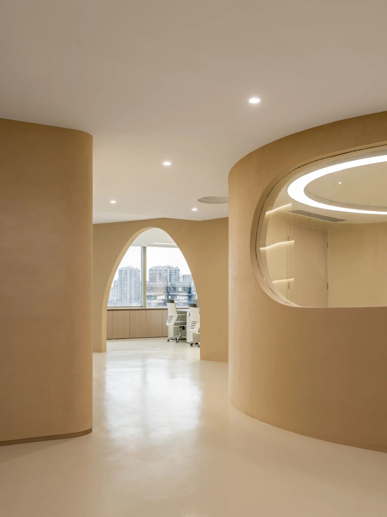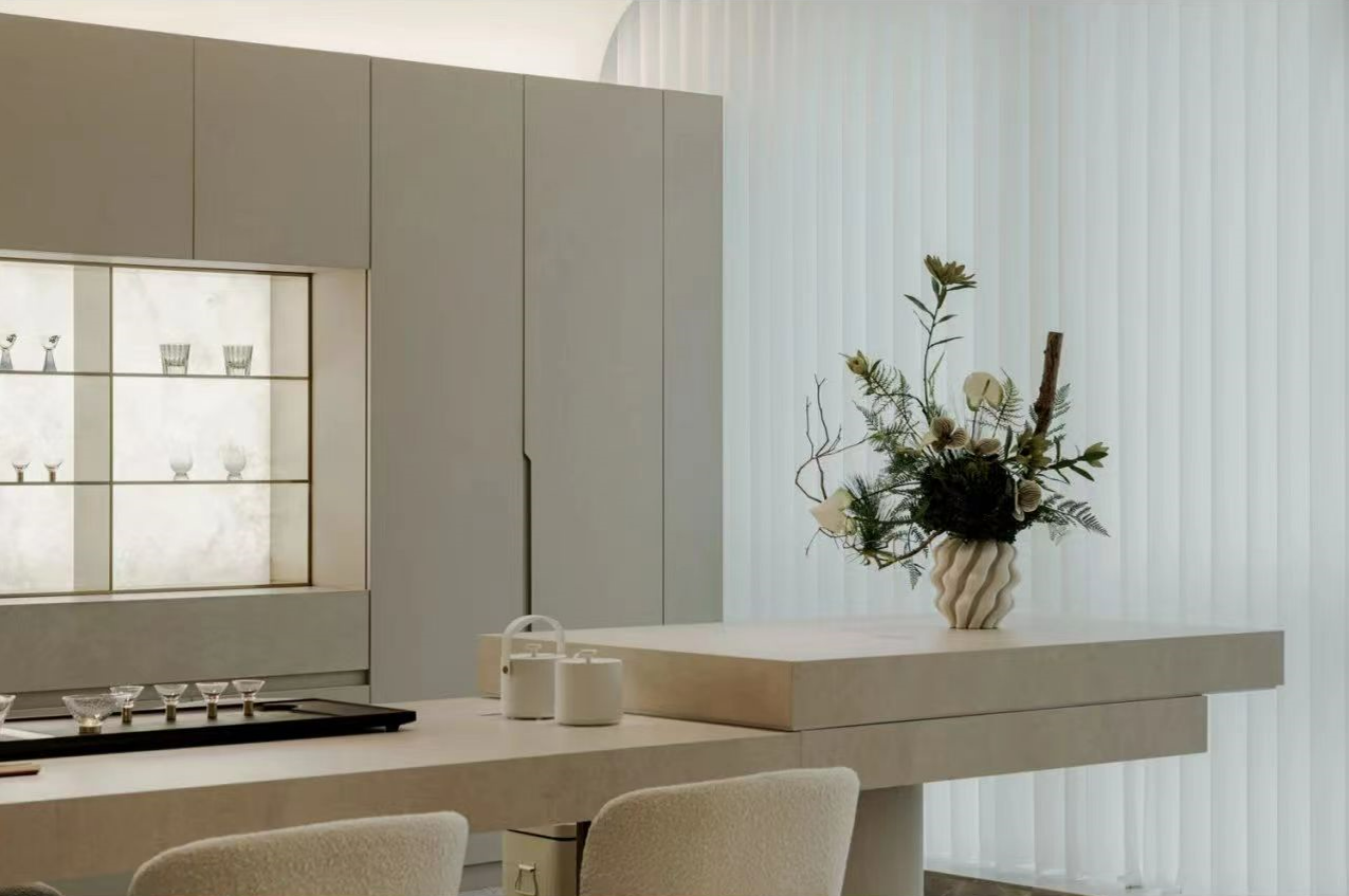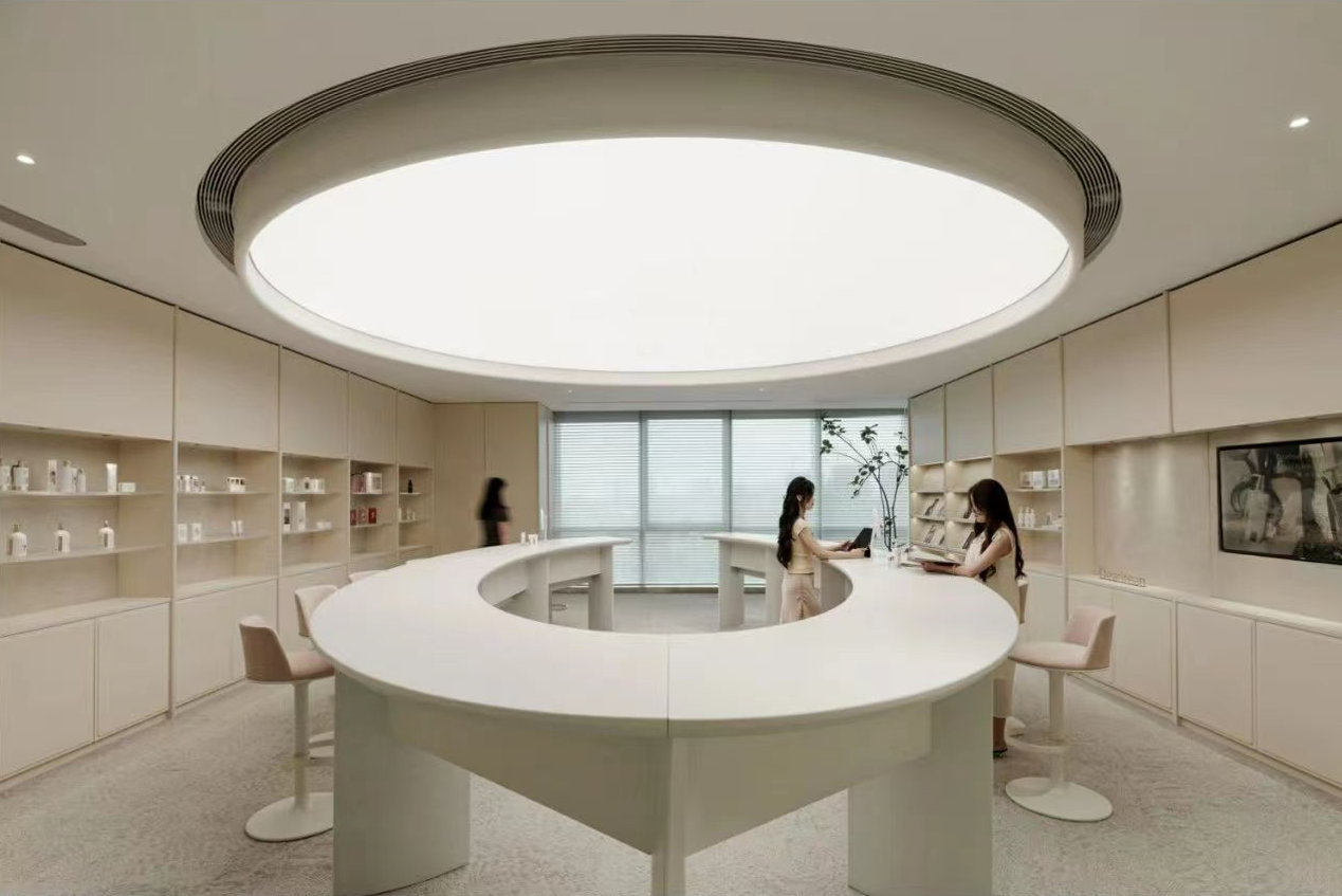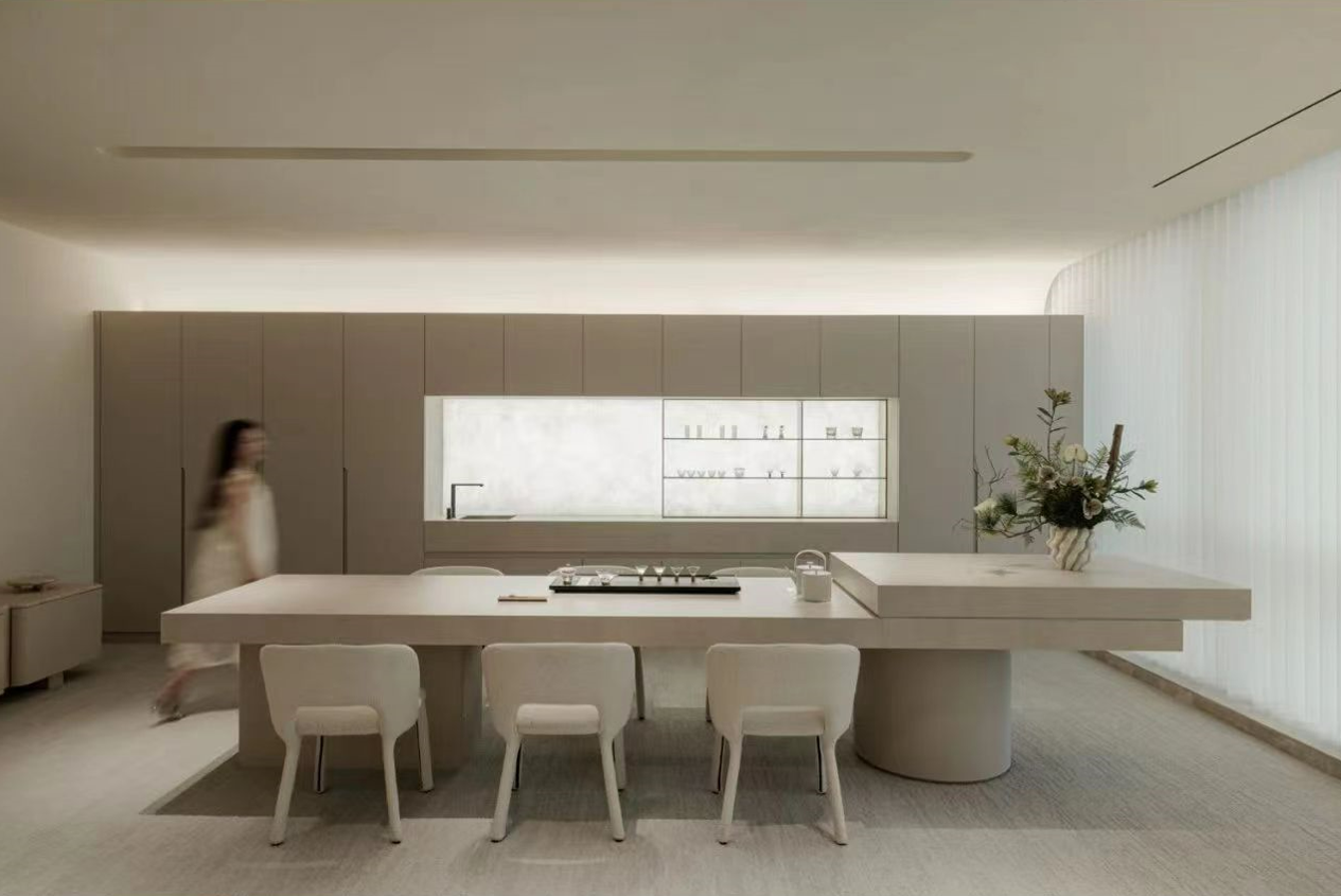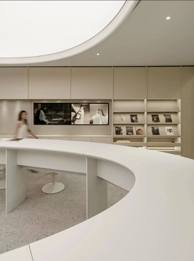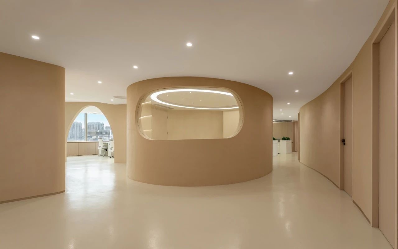 我们透析整体布局,将流线融入空间,成为核心元素。中庭部分我们打造成一个独特的区域,实验领域相互交叉,为研发者提供舒适且专业的工作环境,有助于他们在研发过程中获得最佳体验。透过弧形玻璃窗,不仅展示了空间内部,还提升了美学氛围。洄游的动线,令空间更为灵动。该空间具备会议室和培训室的切换功能,同时折叠门可展开,使得在培训时可以方便地使用样机,进一步提升了区域的连动性。去除繁冗无意义的装饰,空间尽量保持布局中的“空”与极简,呈现随性之美。