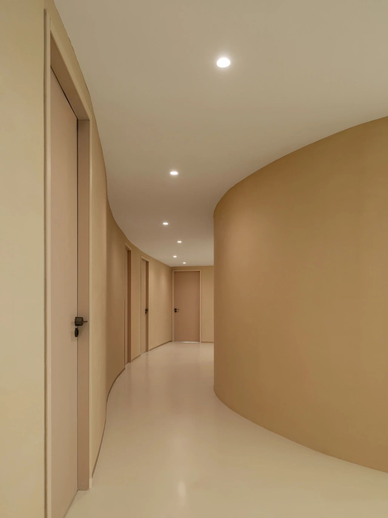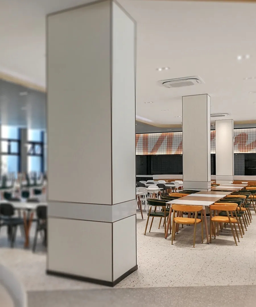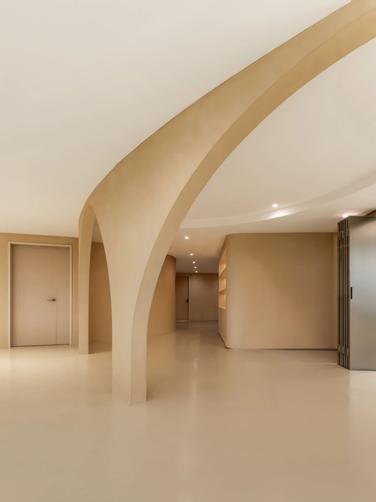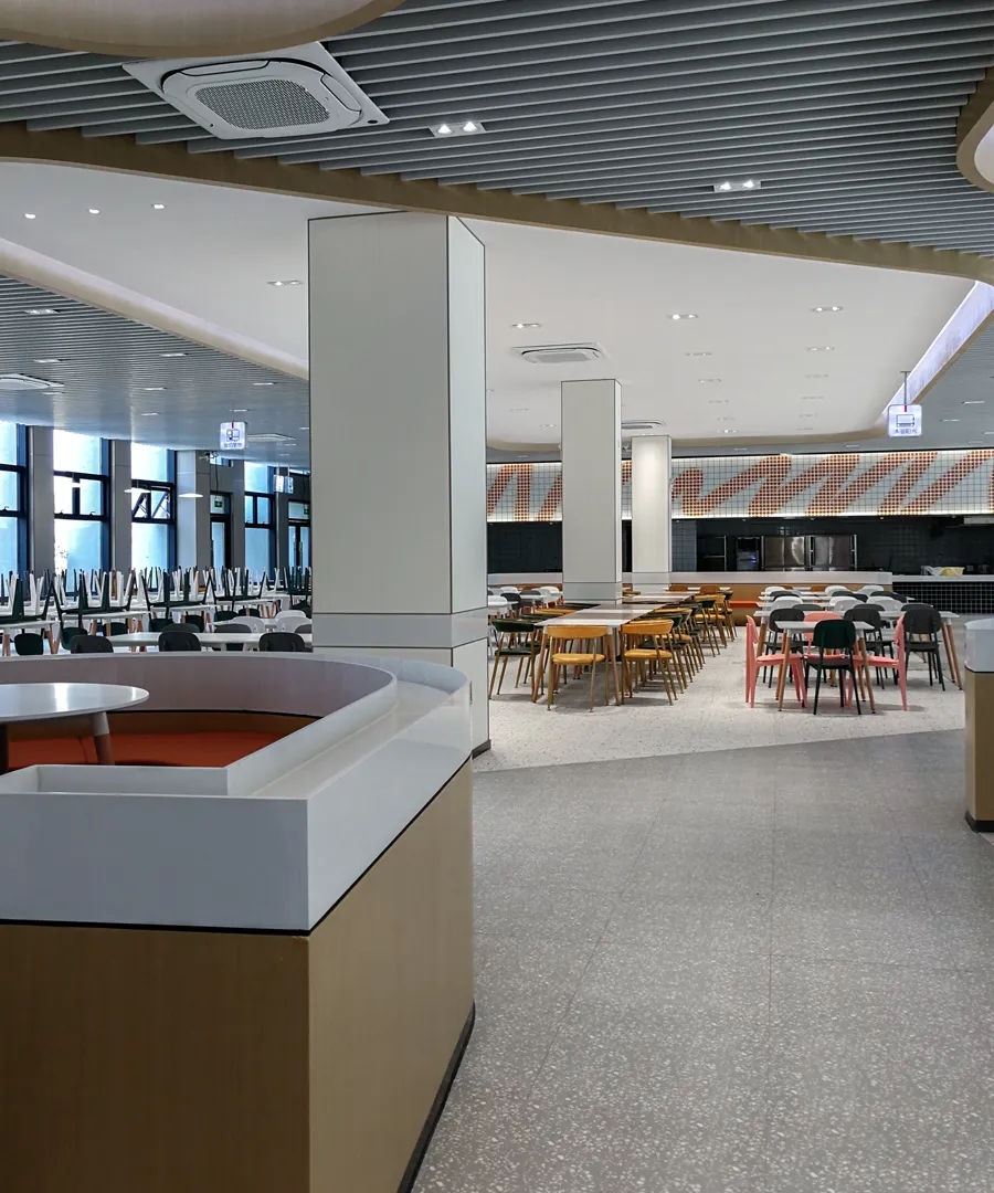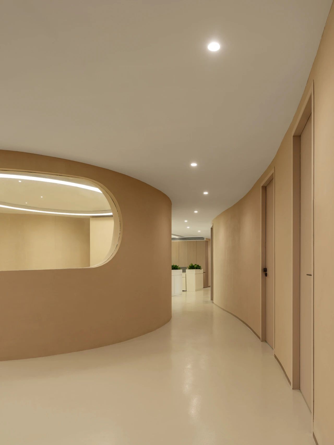 我们透析整体布局,将流线融入空间,成为核心元素。中庭部分我们打造成一个独特的区域,实验领域相互交叉,为研发者提供舒适且专业的工作环境,有助于他们在研发过程中获得最佳体验。透过弧形玻璃窗,不仅展示了空间内部,还提升了美学氛围。洄游的动线,令空间更为灵动。该空间具备会议室和培训室的切换功能,同时折叠门可展开,使得在培训时可以方便地使用样机,进一步提升了区域的连动性。去除繁冗无意义的装饰,空间尽量保持布局中的“空”与极简,呈现随性之美。