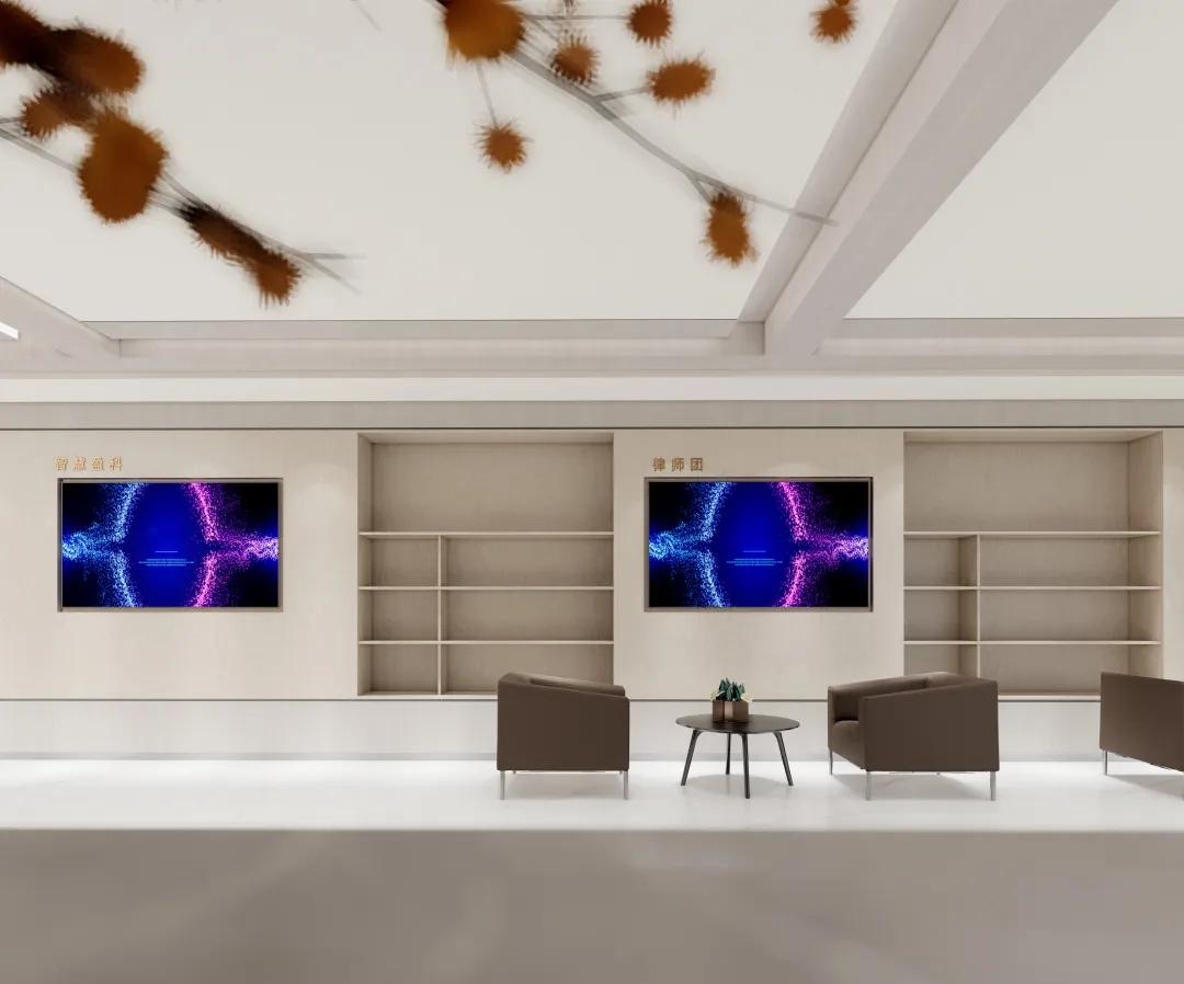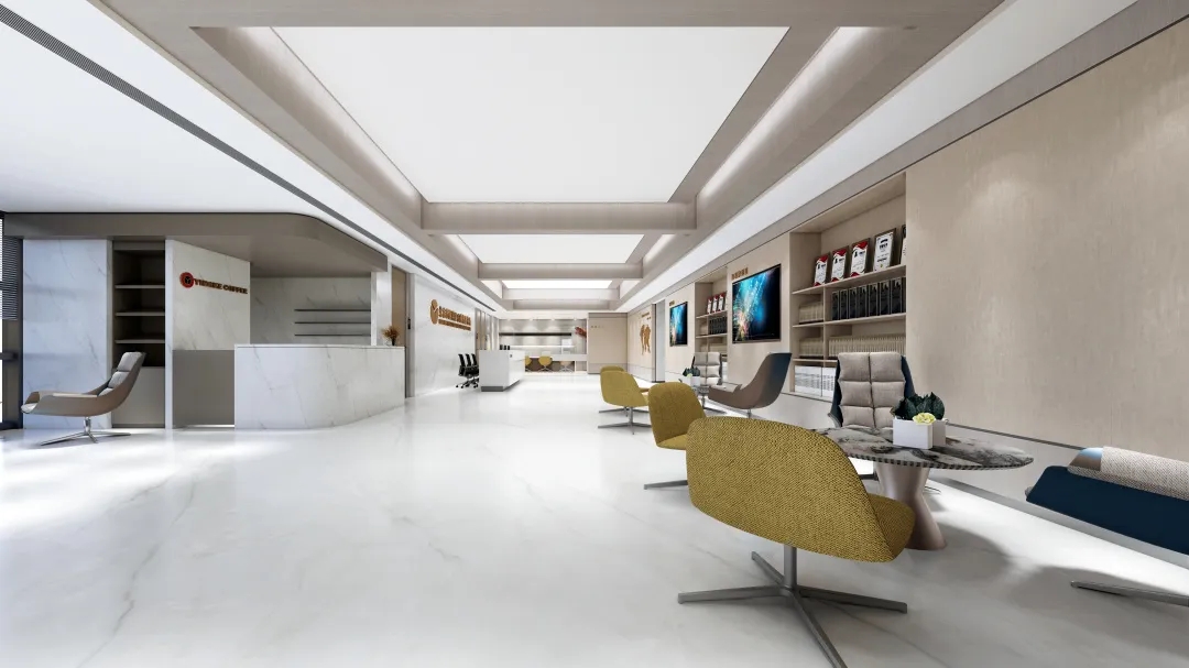 前厅接待区,咖啡吧,洽谈室占据着最佳景观区域,为满足积极探索的更多与客户的交流关系,接待区还能根据需求转变成培训、讲座、酒会、活动等不同场景需求。整个接待区的形象传递公正正义的睿智感,明亮开阔,简洁大气。大面积的浅色基调很好的传递这一感受;而木质感的墙面,柔软舒适的家具又很好的丰富了体验感,客户在这感受到的是确定性与安全感。