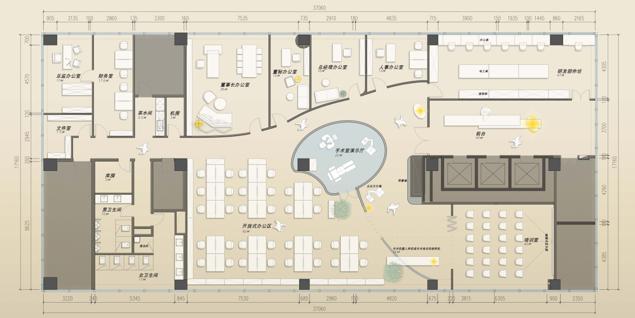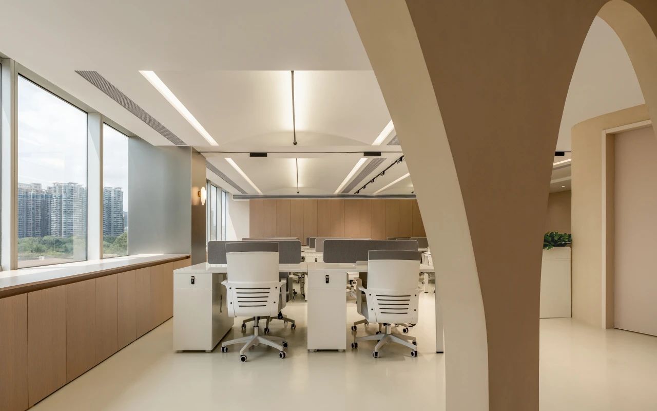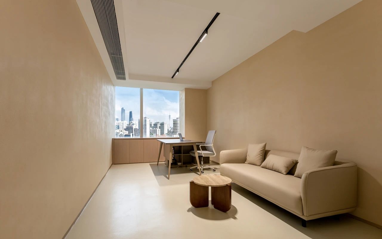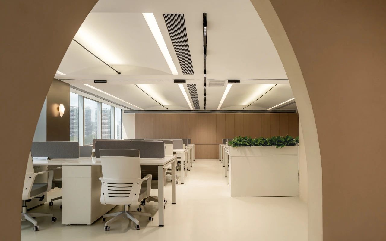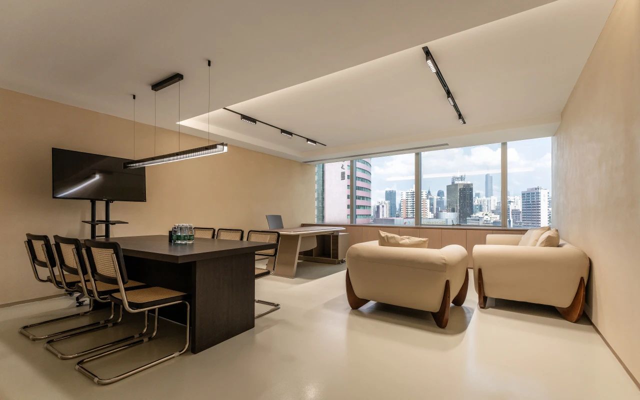 项目定位为办公空间,物理划分为会议室、办公区、文化展示区及办公生活配套功能区,设计倡导以物的朴素本真来反馈光的超强质感,并将光产品直接融入空间,用最简朴的语言传达品牌理念与光的品质,同时为保证设计出品及超强体验感,部分家具均为高定原创设计。