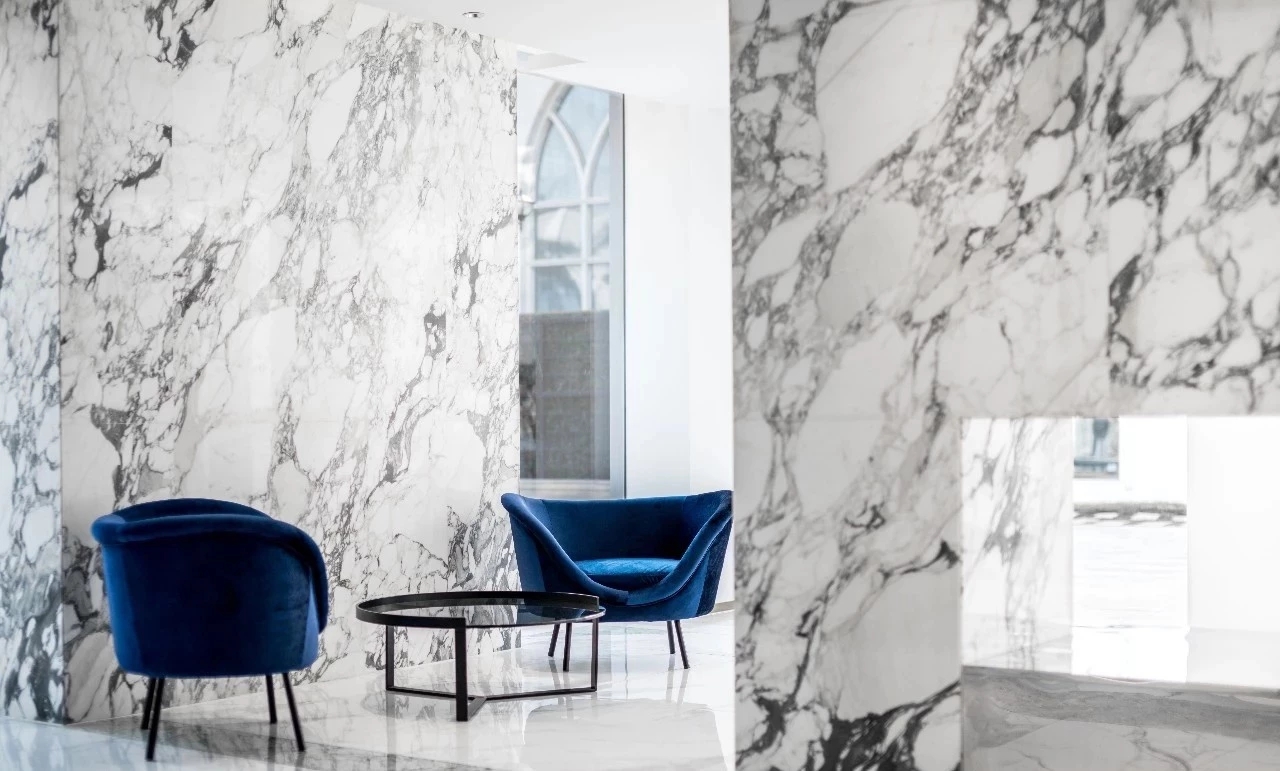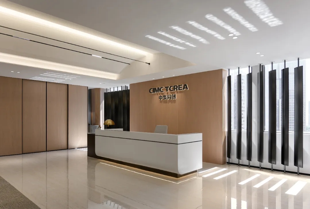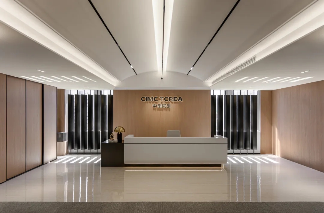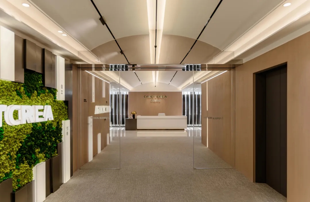 入口用大量自然真实苔藓藻类材料与不锈钢块,表达生命新陈代谢和繁衍生息反复的过程,也和同创的业务布局形成相互映衬,以表现绿色可持续理念,唤起人们内心深处与自然的情感共鸣。通过不锈钢镜面弱化了梁体的存在,使得天花一体感更加整体。天花也以船舶为原型来进行融合设计,突出对重要板块的展现与创新,前厅提供更大气宽阔,适应性更强、弹性更大的第一主观视角,让整体更具专业性与现代化。