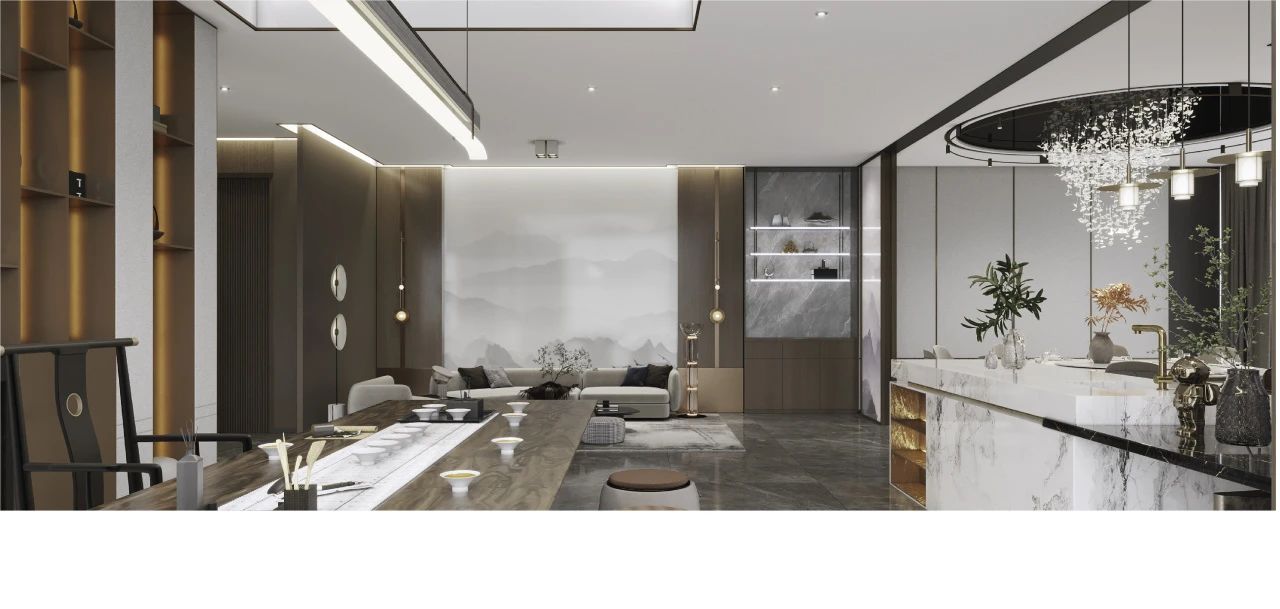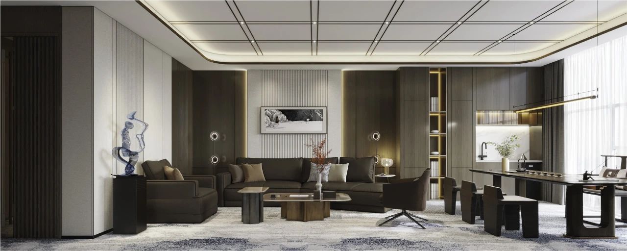 在空间上灵活规划,除了机能、尺度及视觉美感外,更进一步导入声学及智能规划,全面性的弱化材料装饰,降低固定式的装潢,以达轻量装修之效,继而转化成妆点空间的主轴线。利用视觉穿透感将整体空间放大,无论从哪个角度环视,皆有无限延伸的效果。