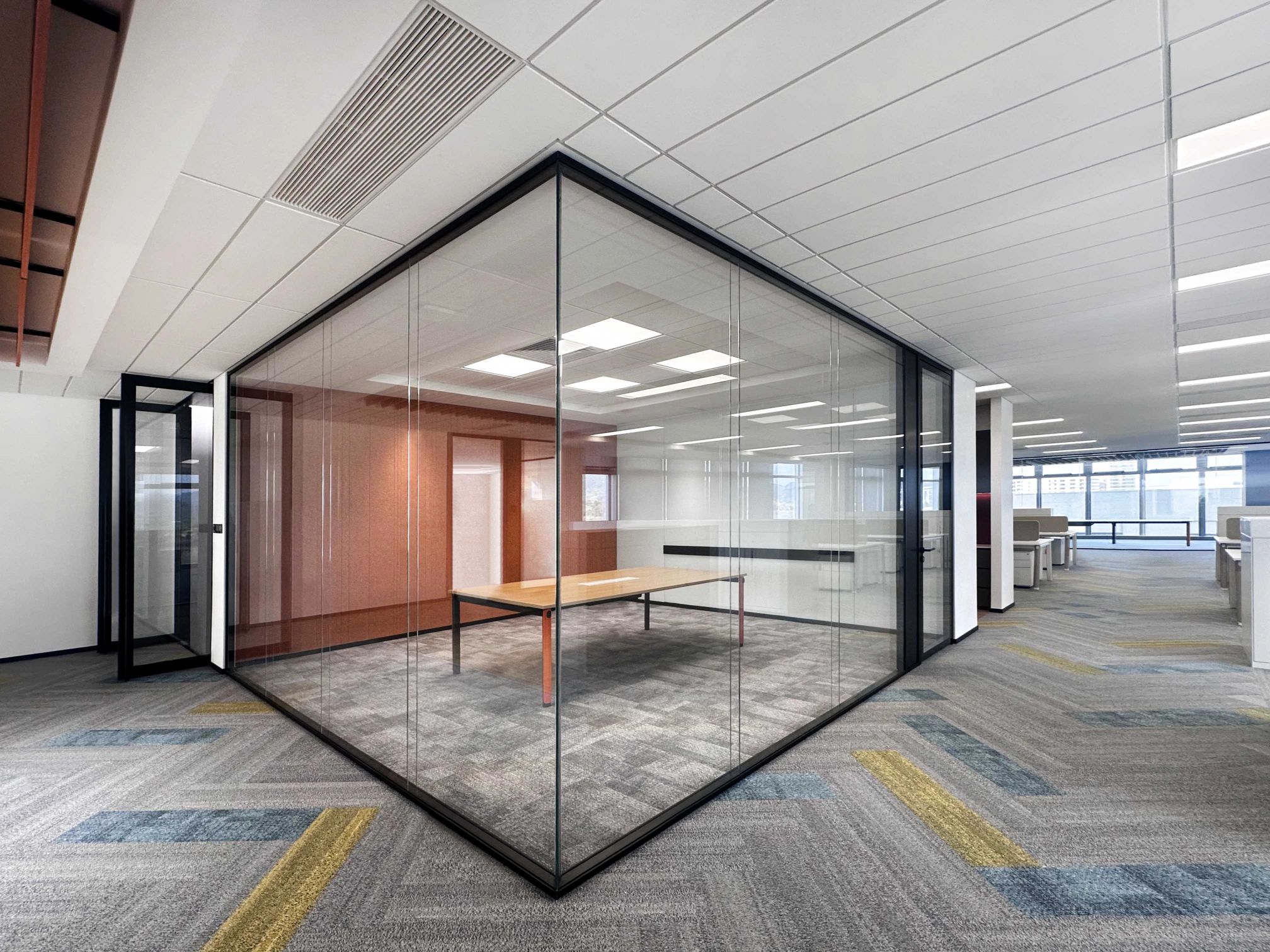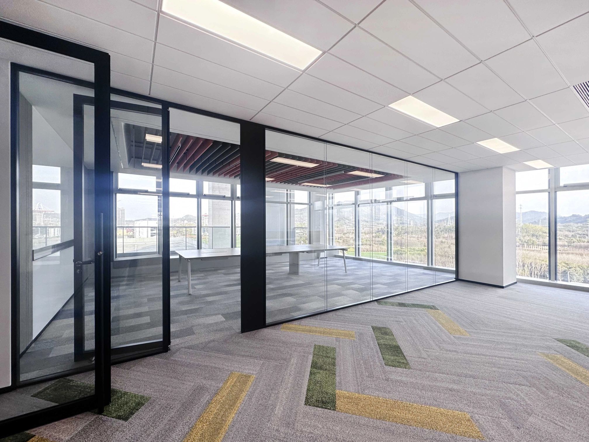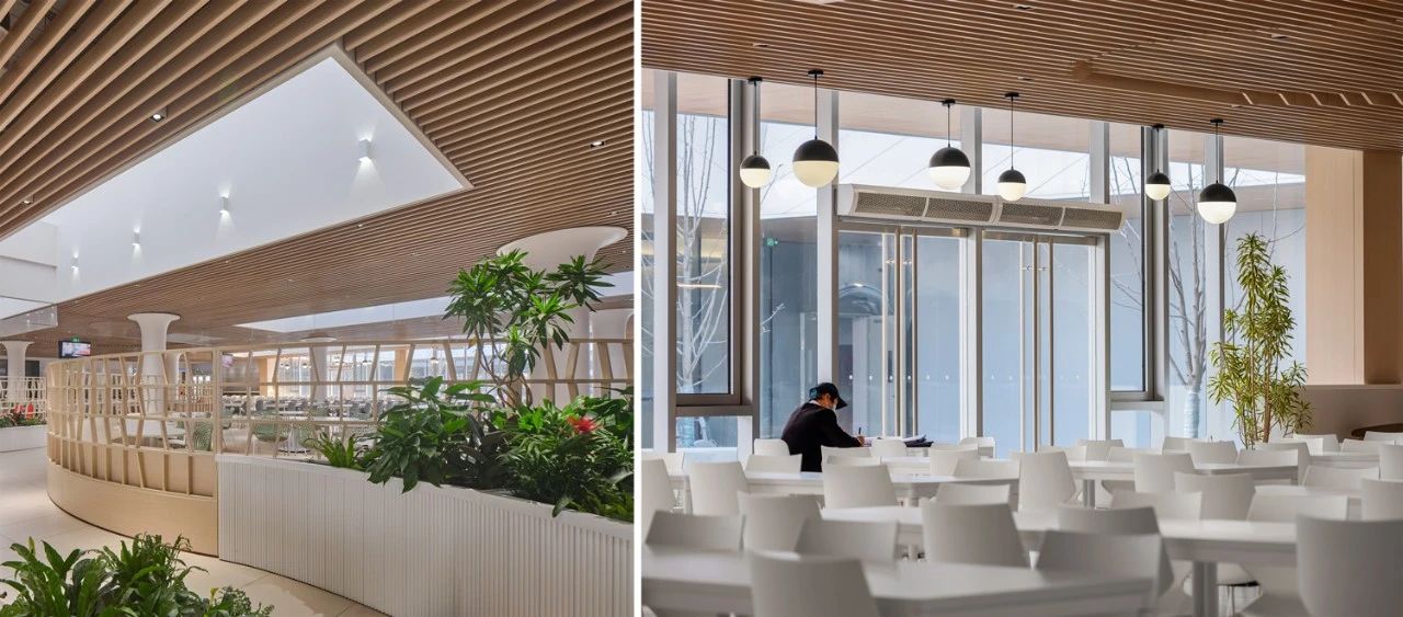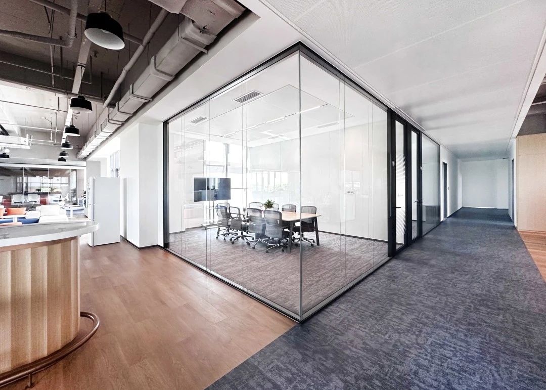 开敞办公区规划在靠通风,采光良好的靠窗区域,在靠近过道一侧设置了镂空书架,办公区有了几分活跃感。
