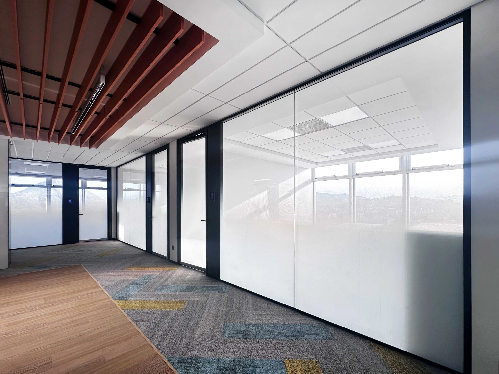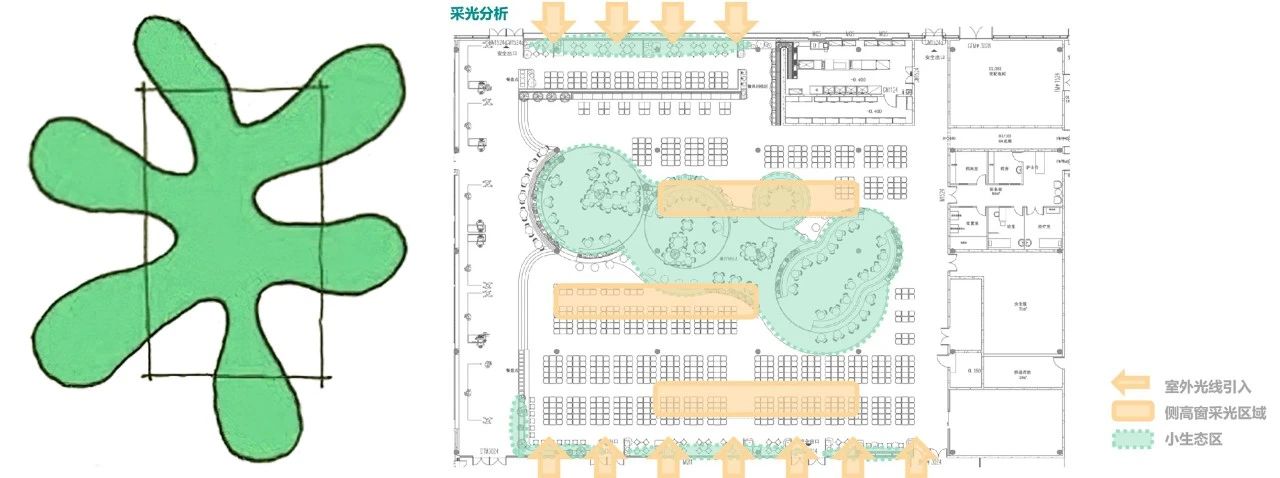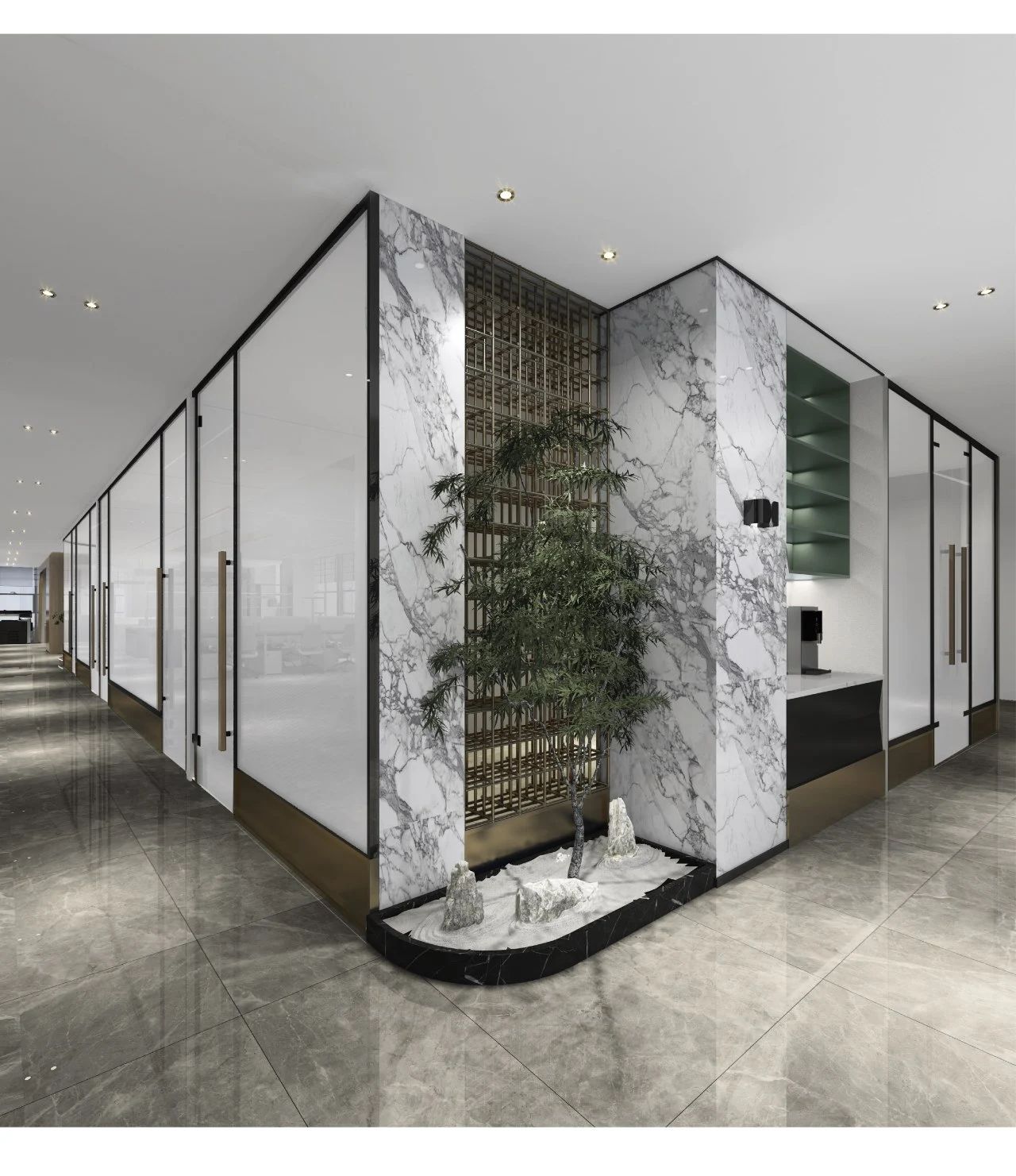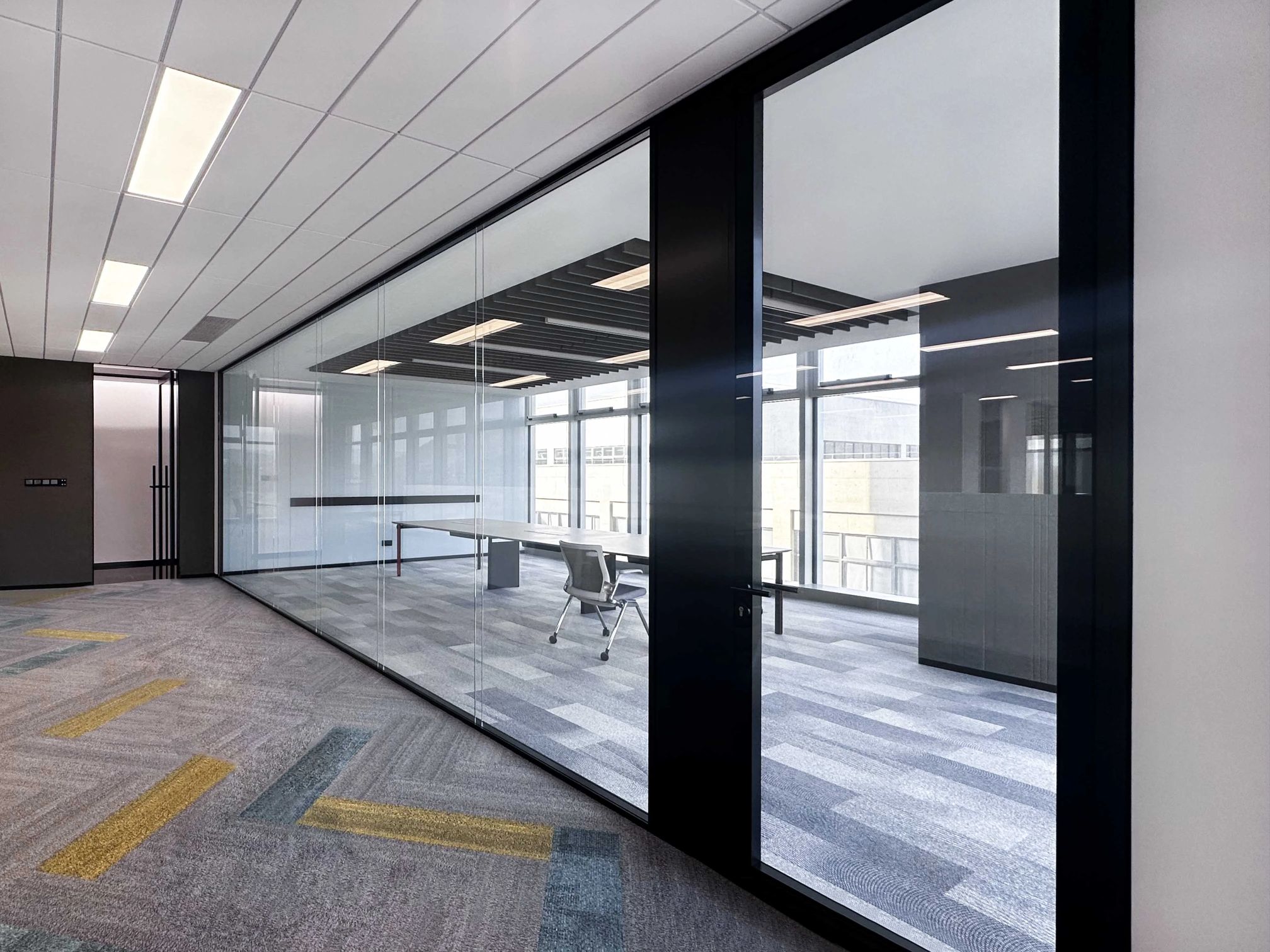 开敞办公区规划在靠通风,采光良好的靠窗区域,在靠近过道一侧设置了镂空书架,办公区有了几分活跃感。