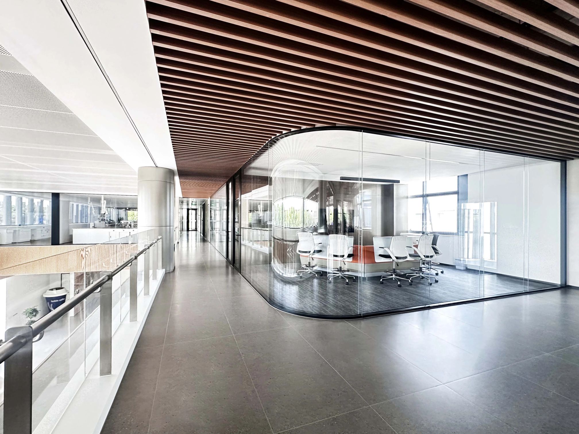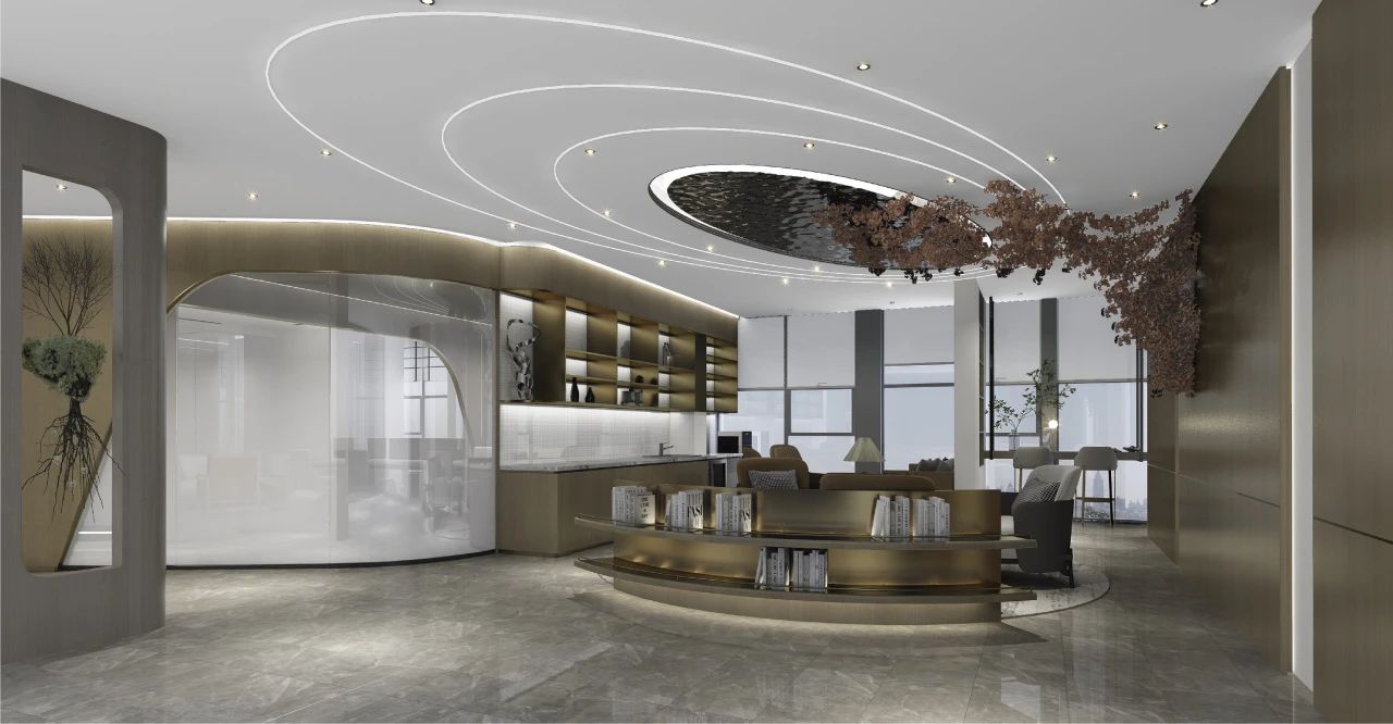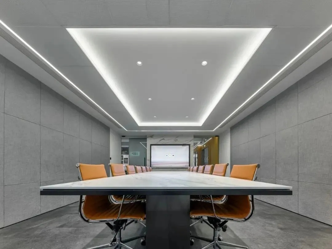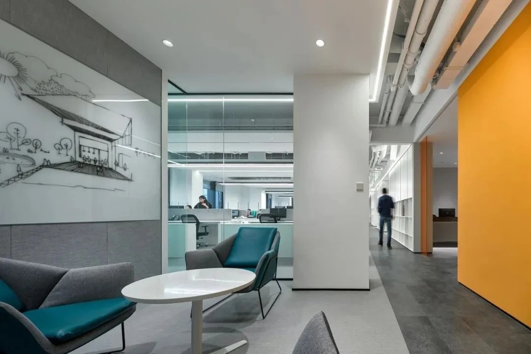接待前区的空间设计,延续公司一贯采用的黑白灰为主调,企业“橙”色为点缀,简明的几何线条作为设计语汇,在每一个空间的尺度感力求精准把控,为激发更多创新思考与创意灵感,也在空间保留了许多流动的自由度。