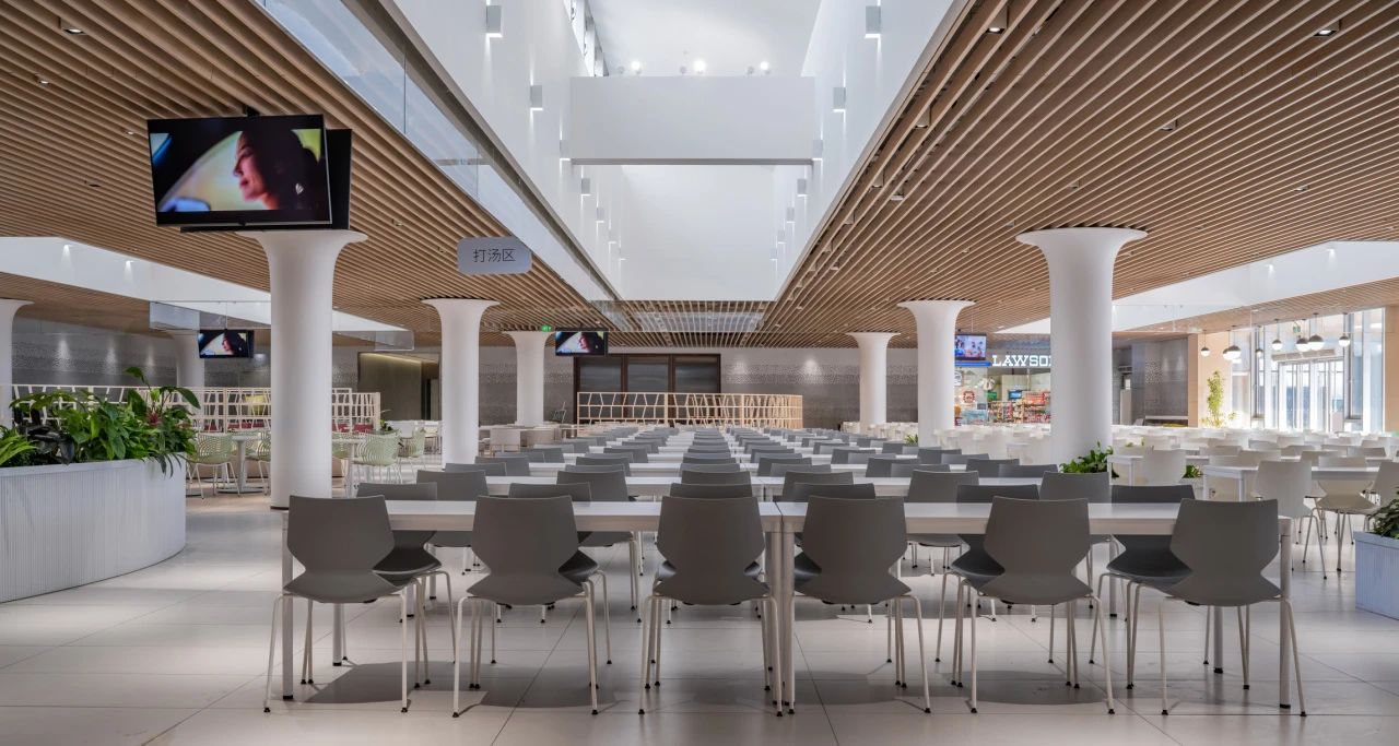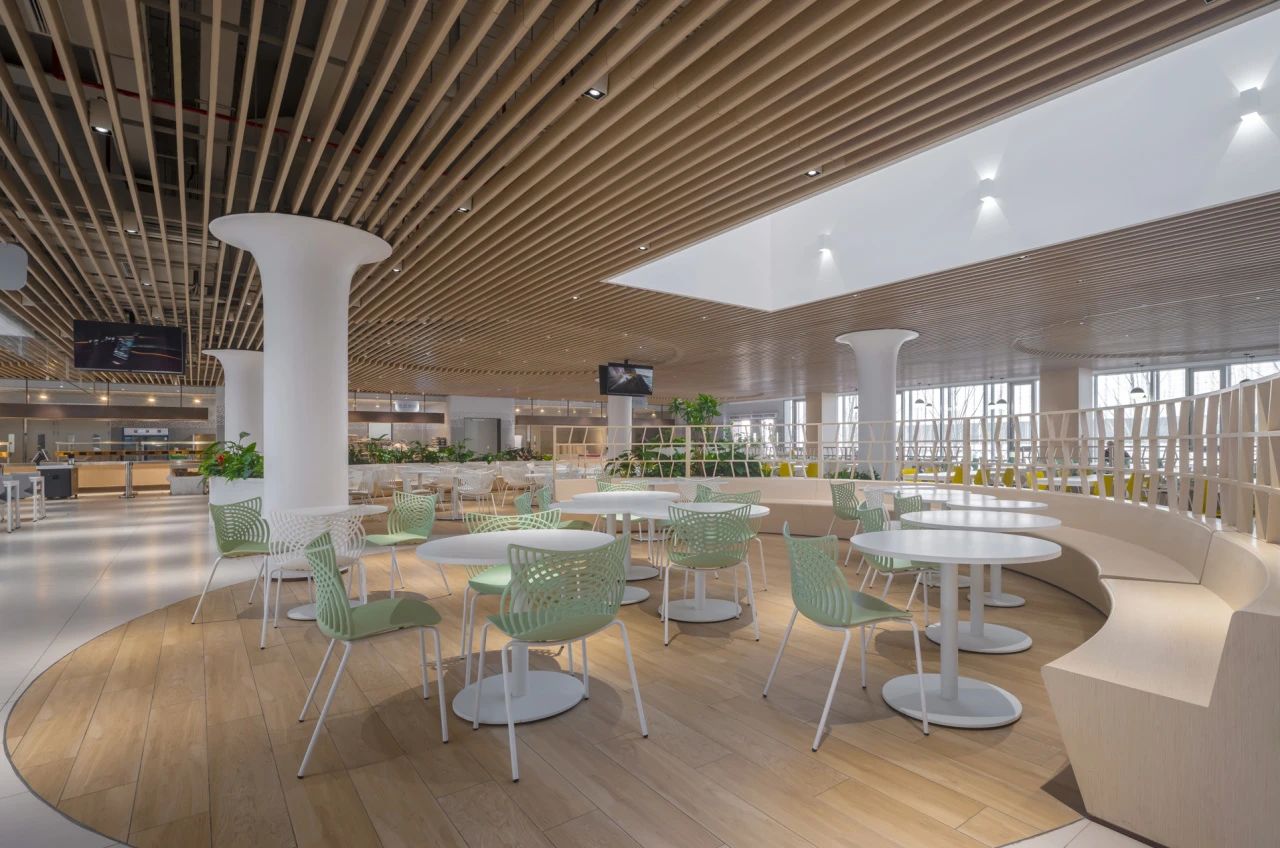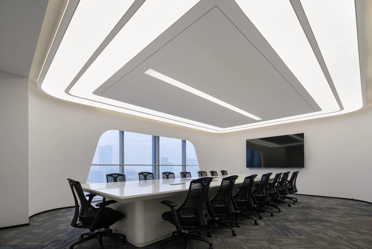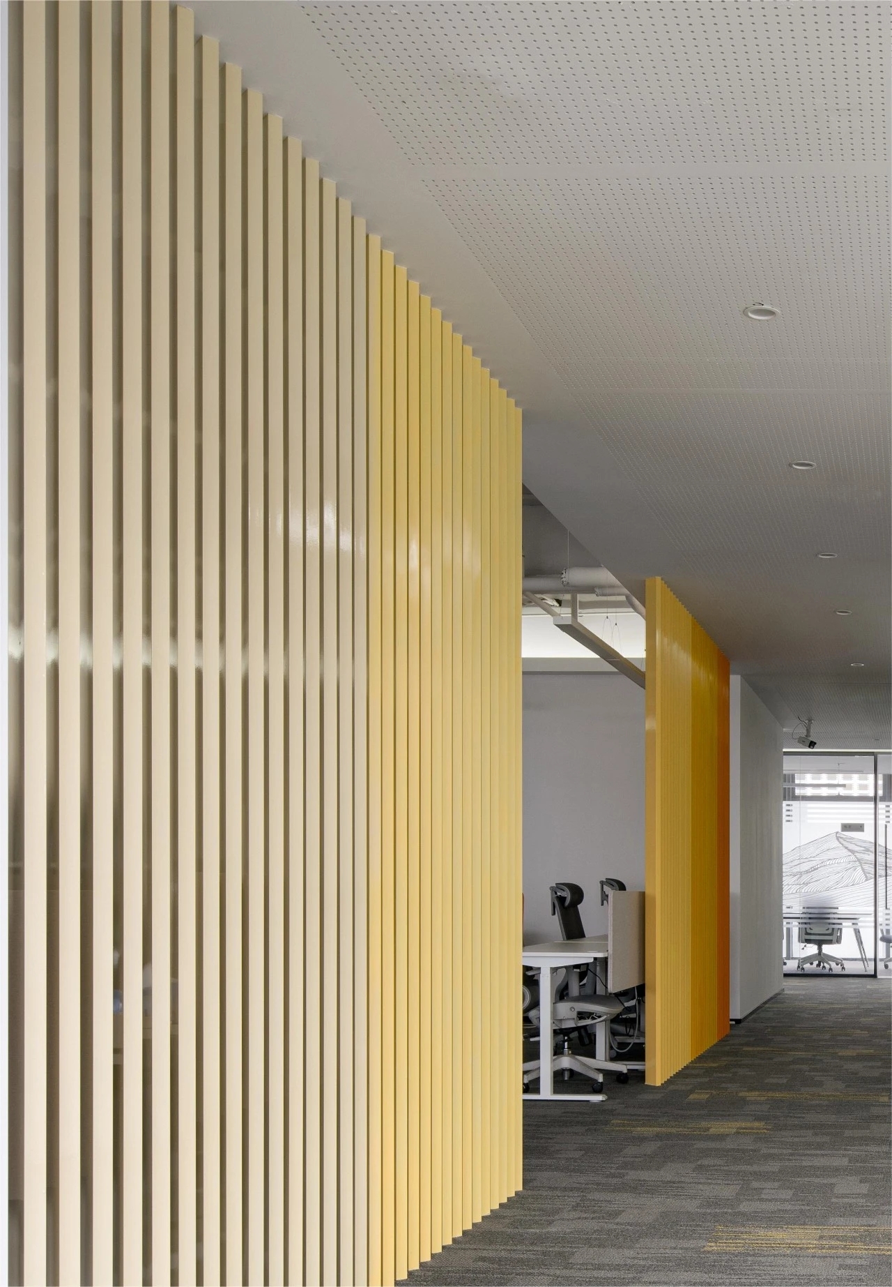 该空间以“调色盘”为灵感来源,象征着各种不同的元素交织融合,在有限的空间,形成无限多变的场景感,让空间变化展现理性和机能的无形融合,形成开放、艺术、趣味性的办公环境。