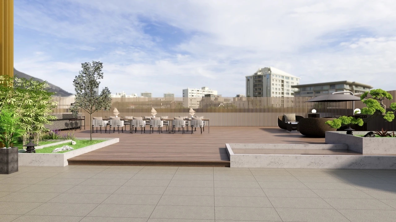 庭院景致跃然眼前,竹影绰约,清幽静雅,轻快跳脱的色彩赋予空间充沛活力。