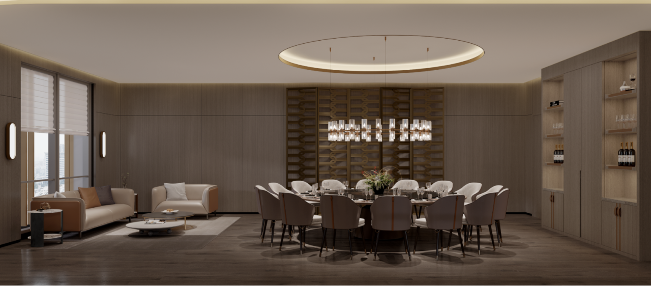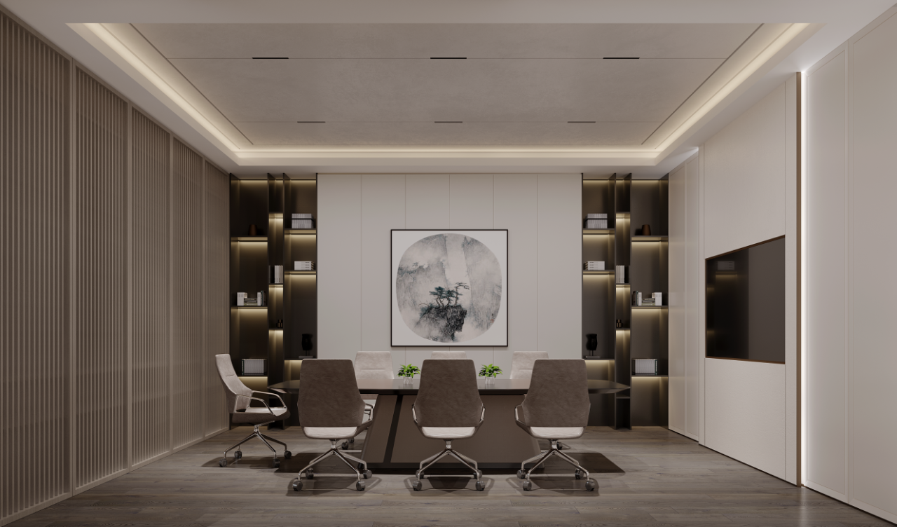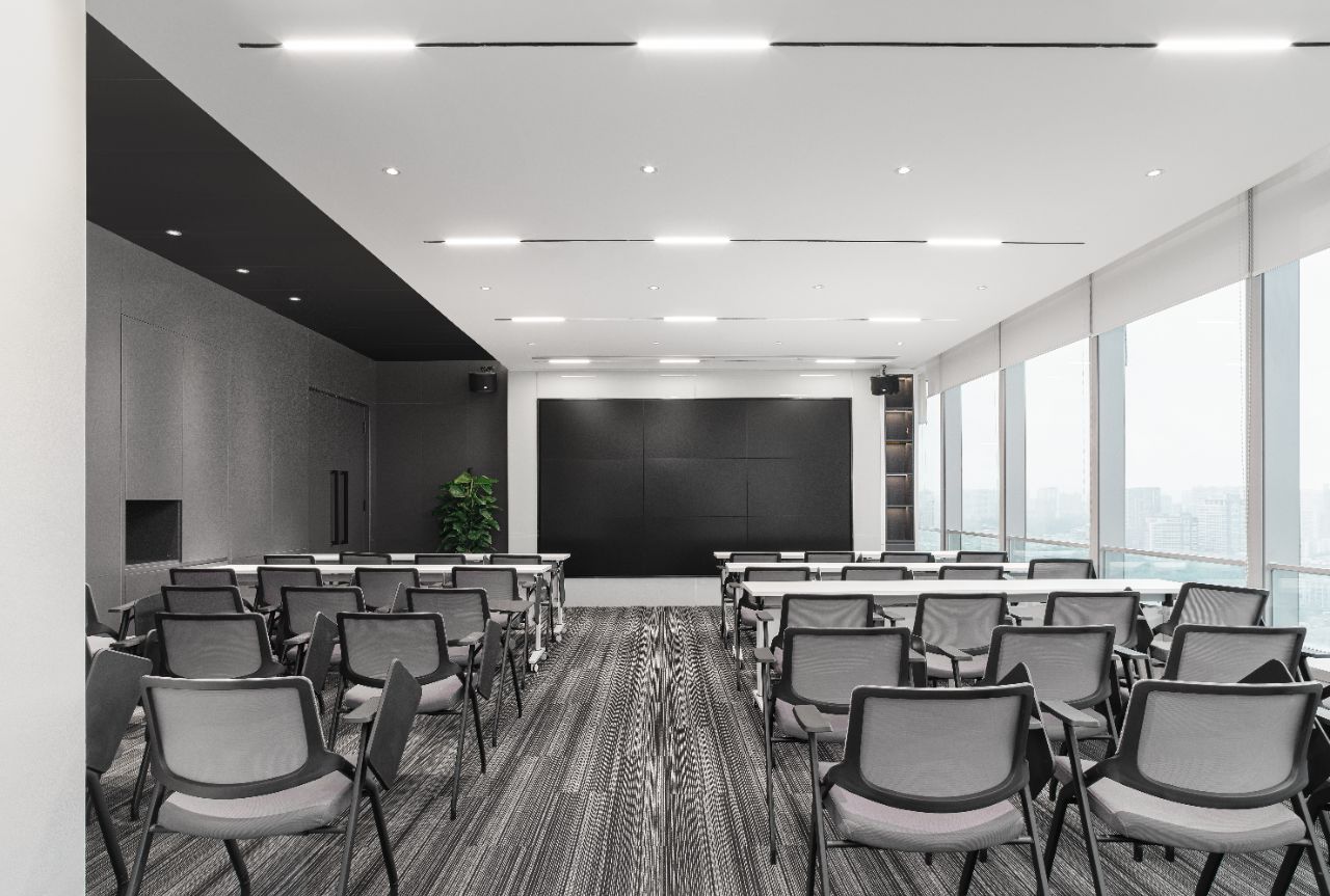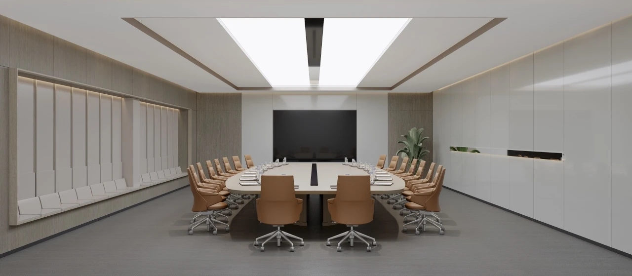根据不同业务部门的使用需求,灵活调整多种会议空间。增加硬包作为和木饰面的设计,可以使得空间在容纳更多人员的同时又不失整体空间的协调与秩序。