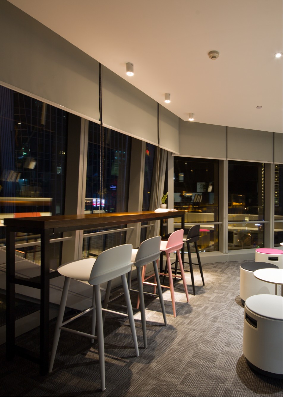 回应使用者的不同需求,强化空间的多元性给空间最大程度的赋能,激活了五层场域。不同区域的顶部灯光设计让光线自由的在场域之间穿梭,搭配挑高的层高设计更好的形成了视野上的开阔。