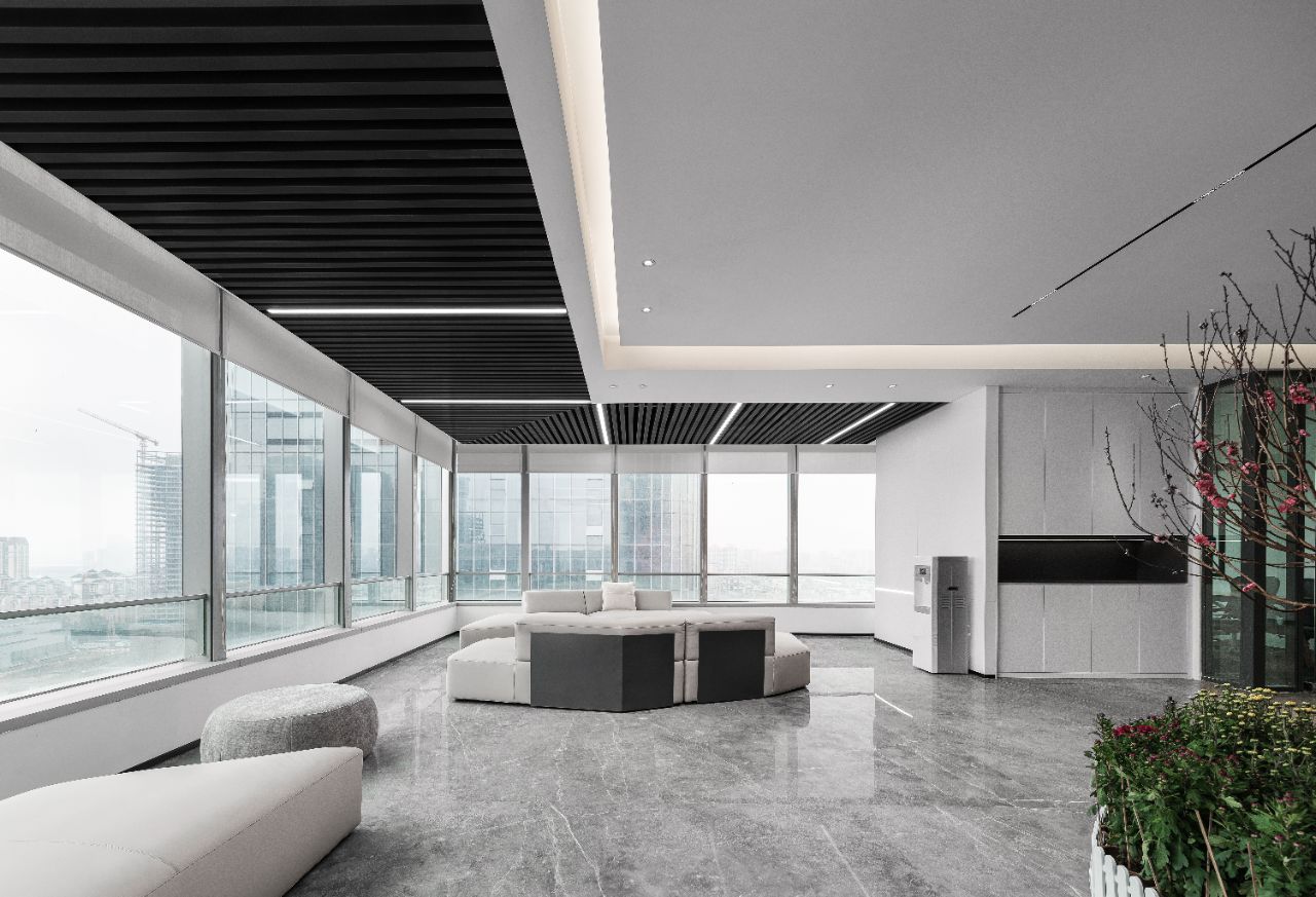 大厅的垂直挑高足以显现企业包容万物的姿态,以及空间的力量感。项目中,我们注重光影对于空间的渲染和点缀。用光为尺度,用影为深度,展现空间的品质和风采。