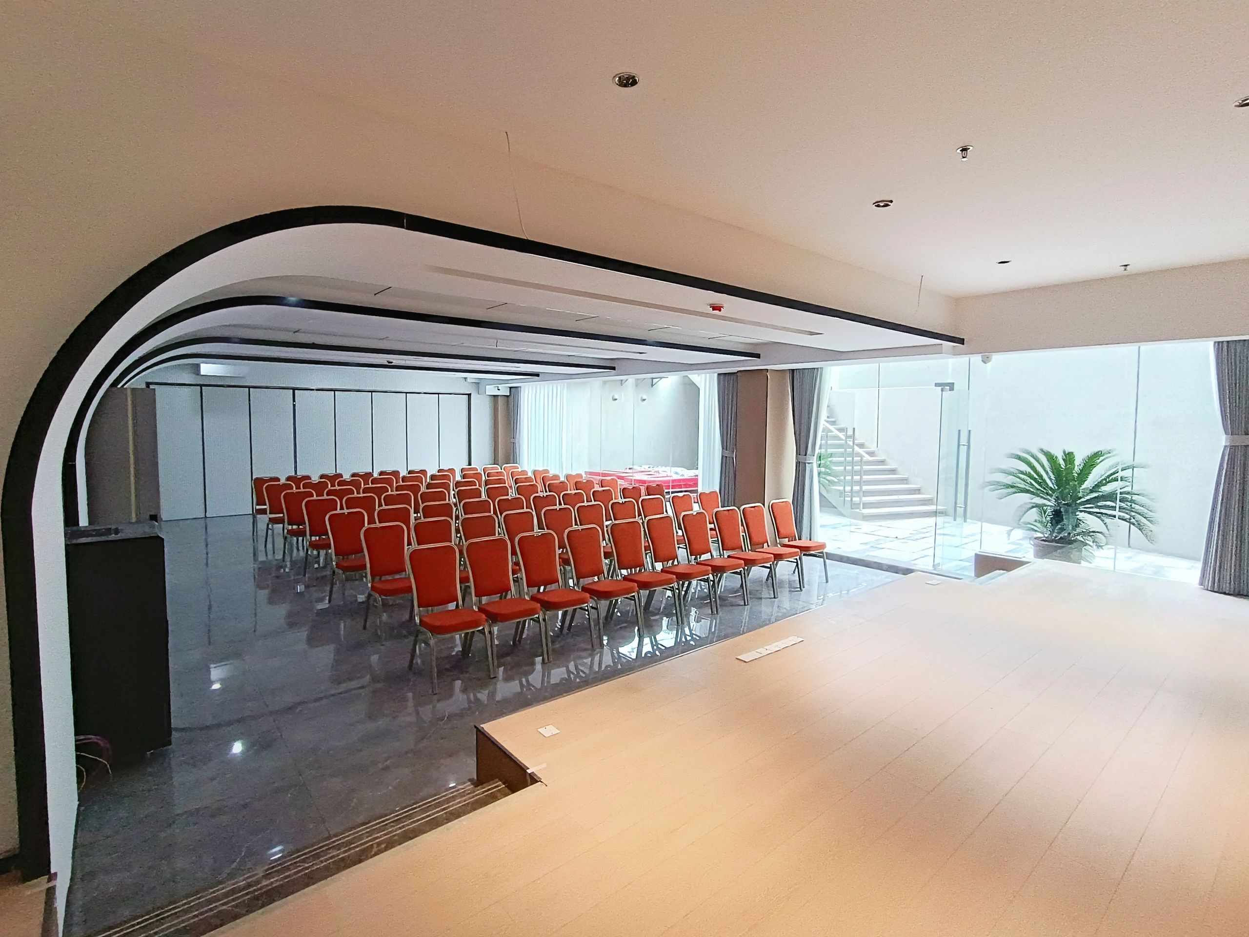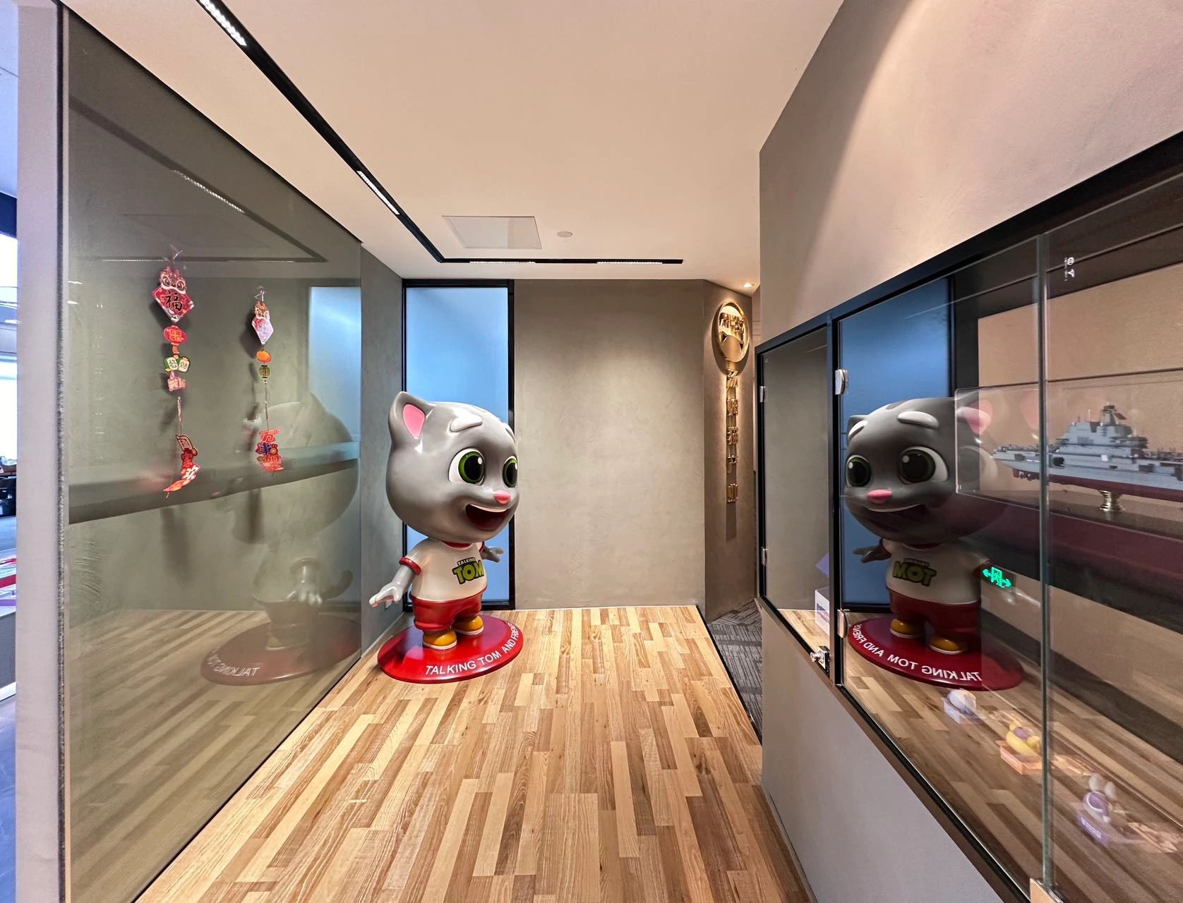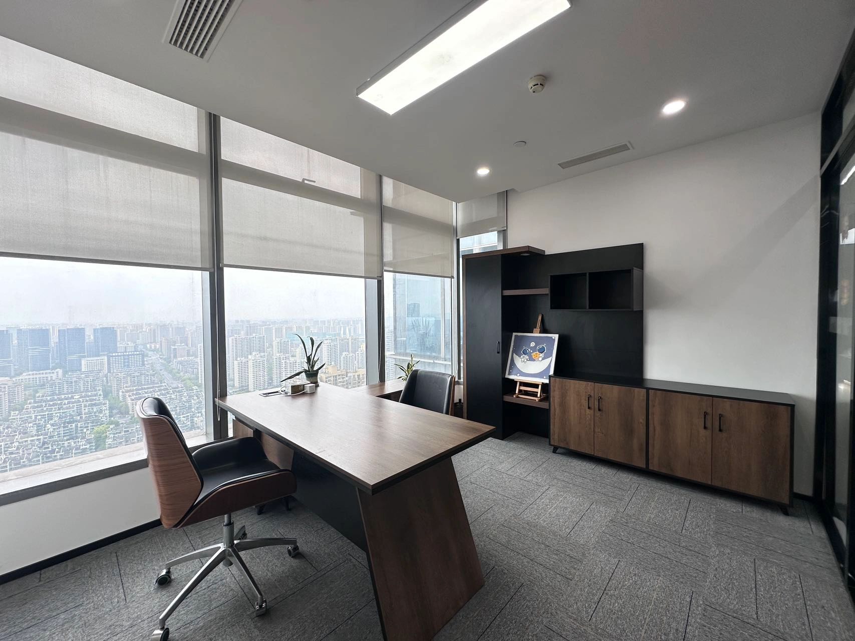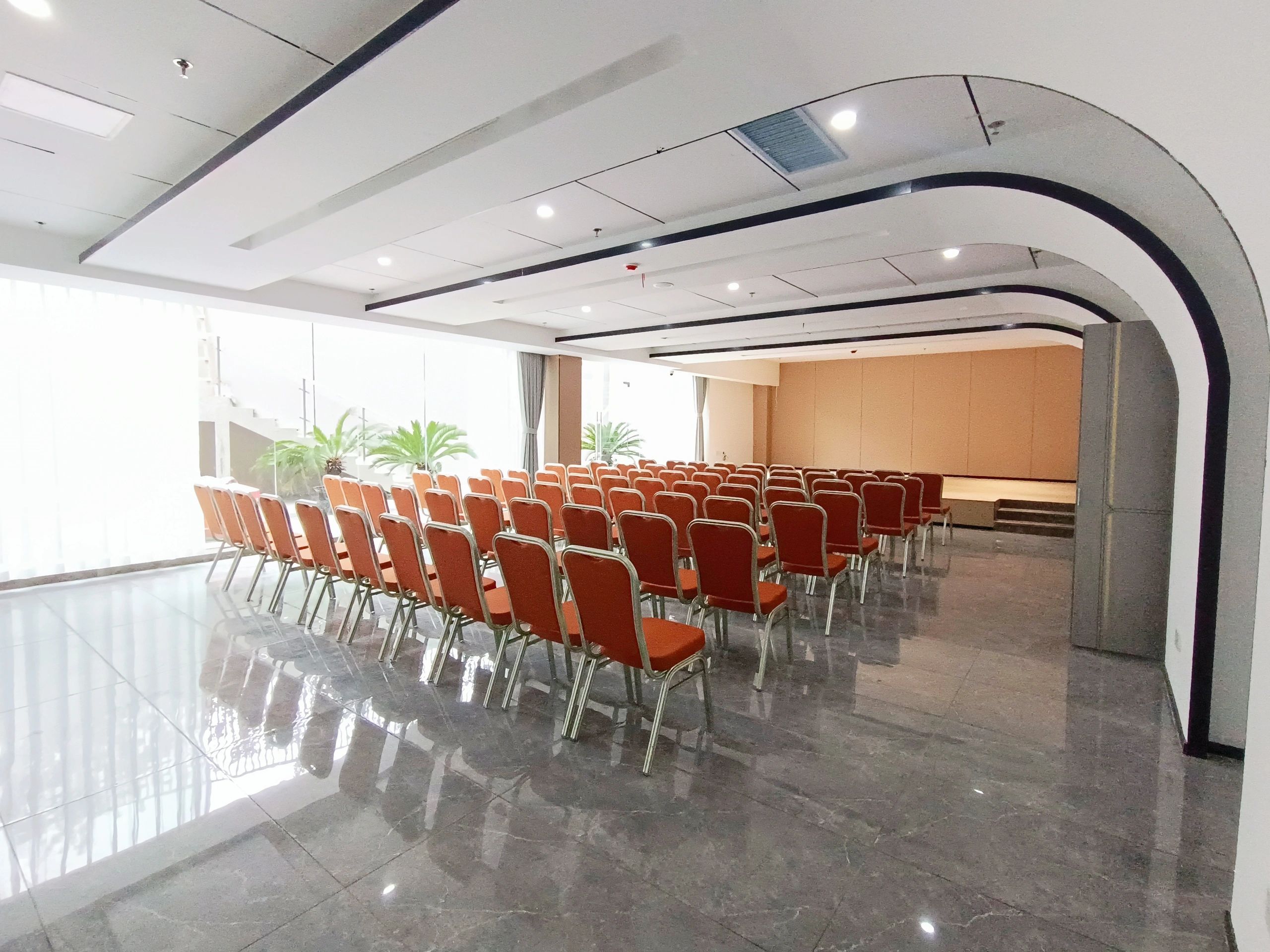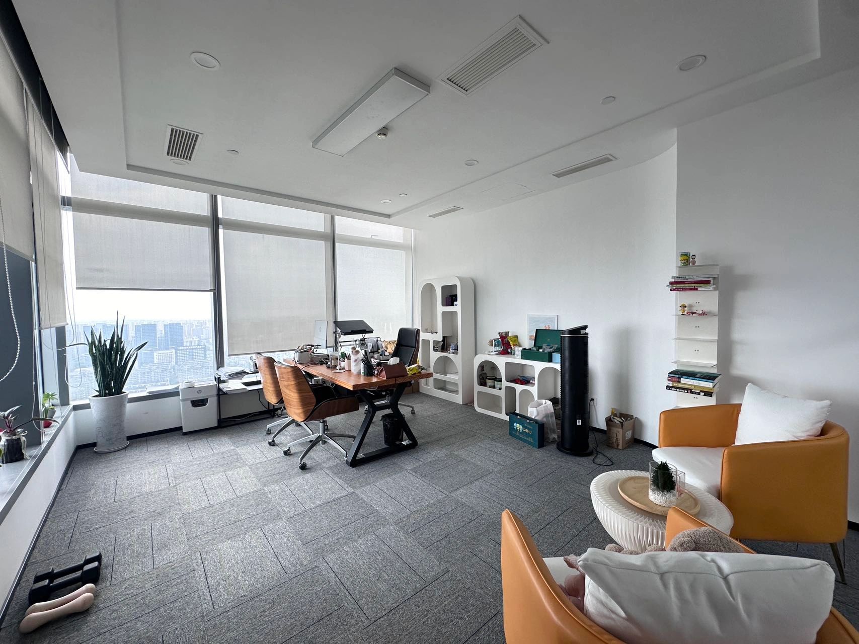 会议桌光面石材的黑白灰流线型纹理,地毯的不规则水墨痕迹,再配合咖灰色真皮Ona executive的抛光金属五星脚。VIP会议区通过不同材料、纹理、色彩的运用使会议区增添了空间层次感与高贵气质。