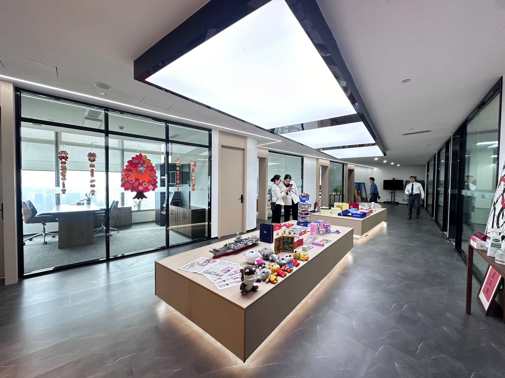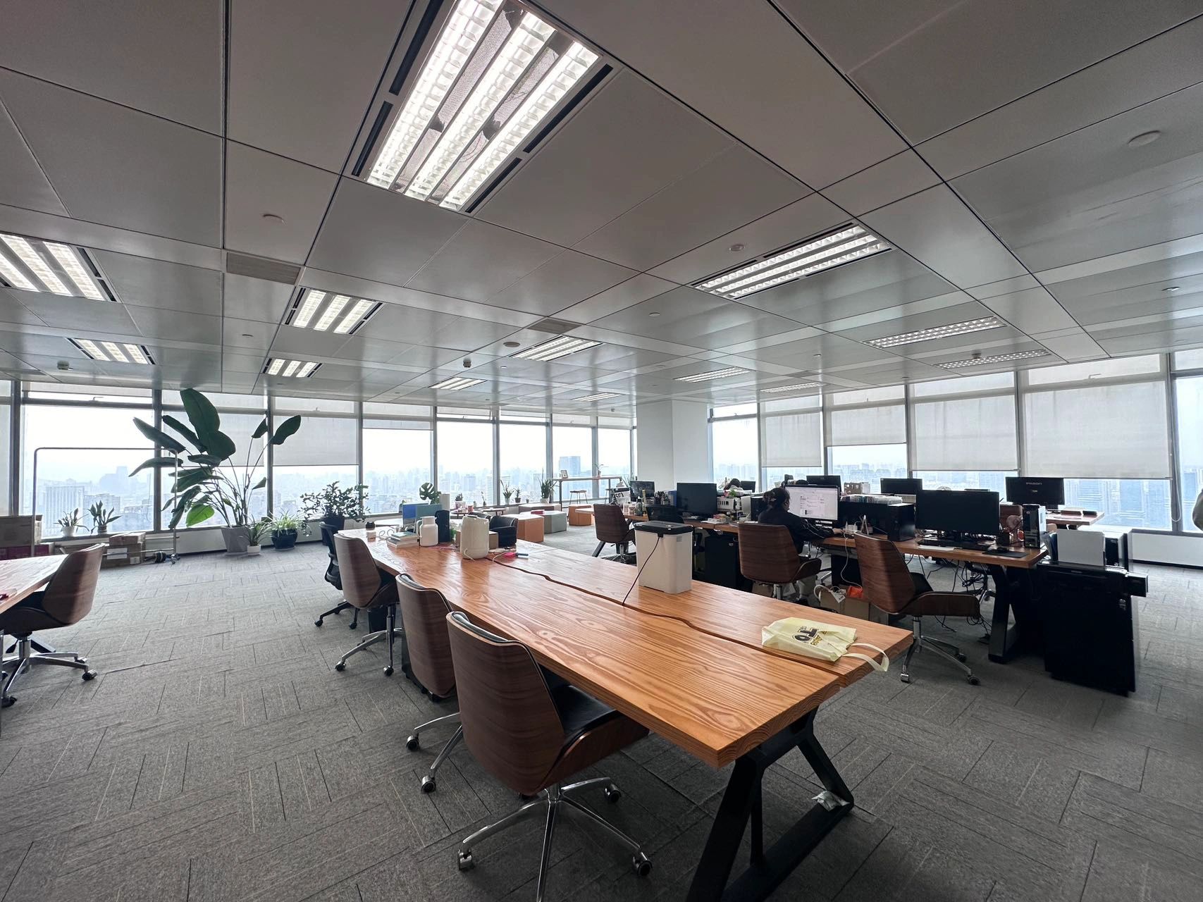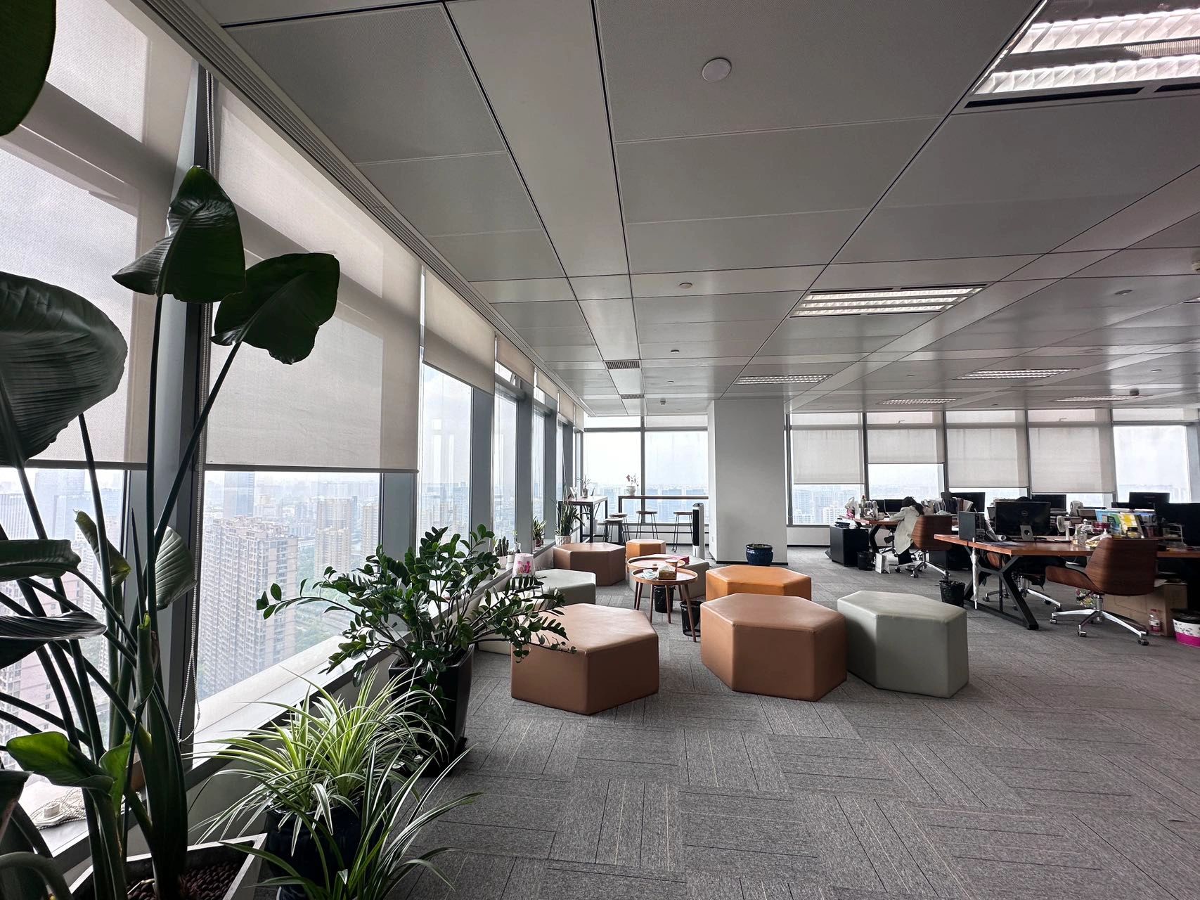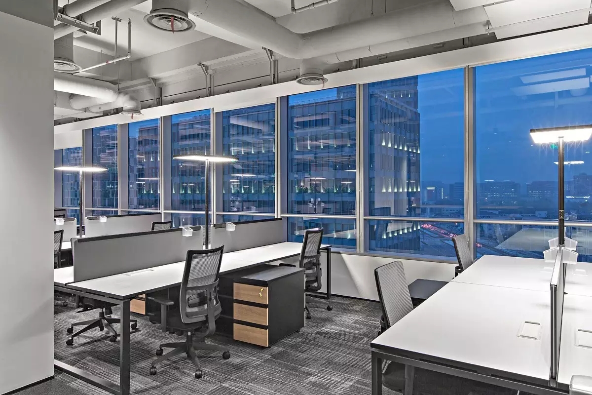 Matsu将灯具与员工位整合,让开放式的办公空间更显整洁。每个员工位都配有文具收纳挂件。让员工管理好桌面的最好方式,提供科学的收纳空间。 员工工作区域地毯,与公共走道采用不同花色但同一色系的地毯,并且与工作位的桌上屏风保持一致。因此整体空间统一感极强。