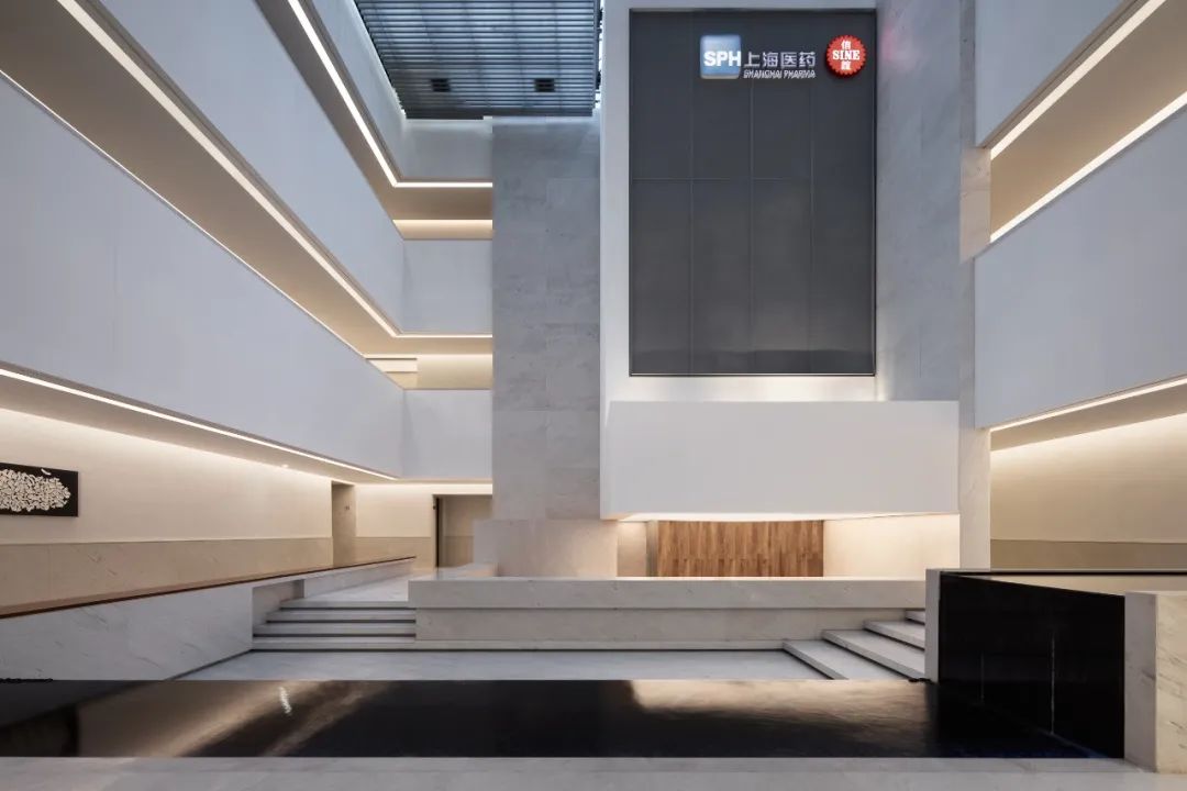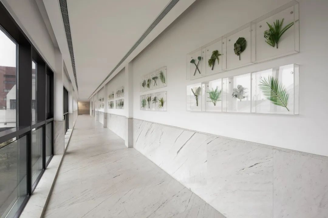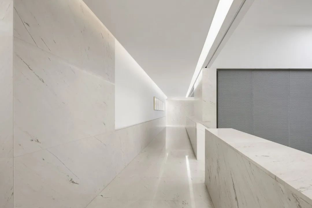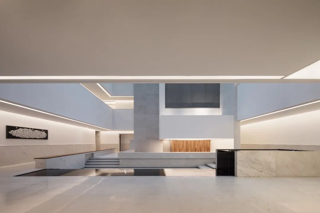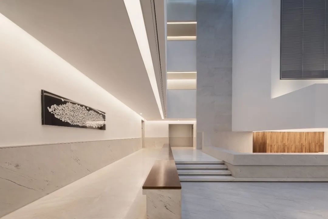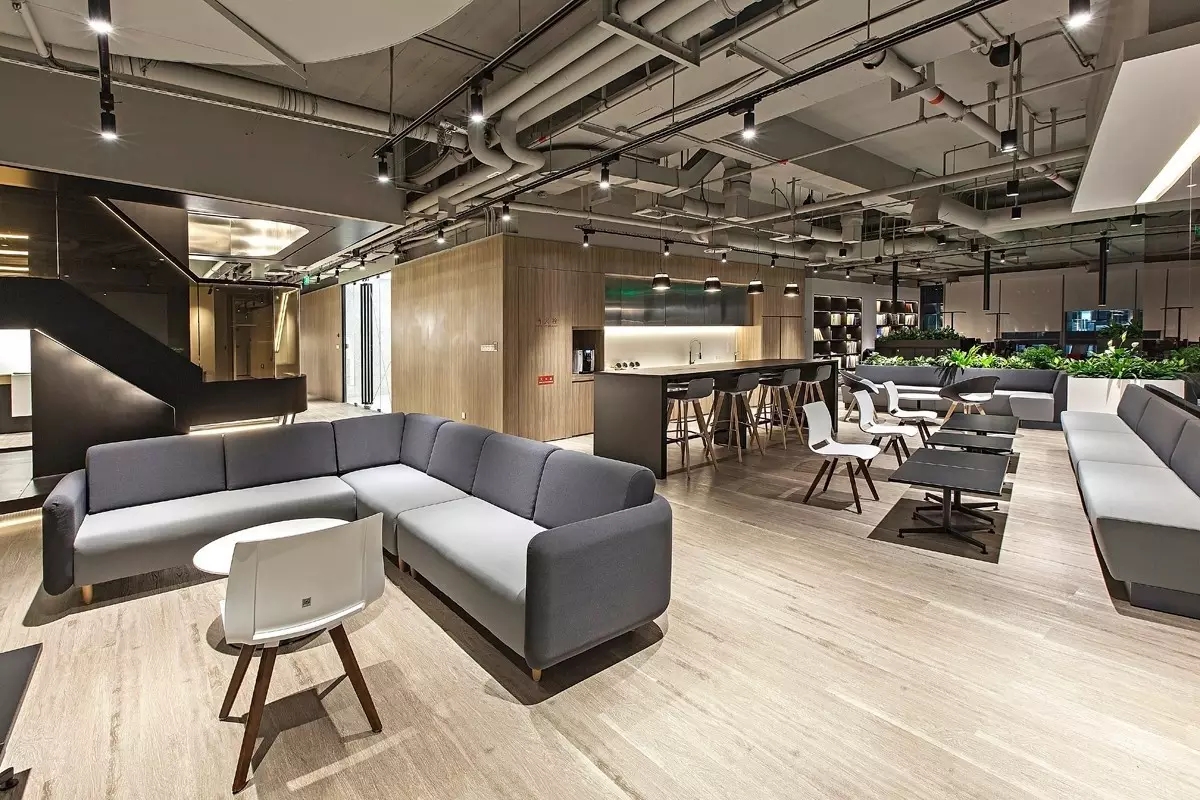 在员工休息区还是黑、白、灰为主调,但公共区域大面积的木制地板,配以Volpino、Universo木质椅脚,加之Zen沙发的软包让整个空间洋溢着一股暖柔。