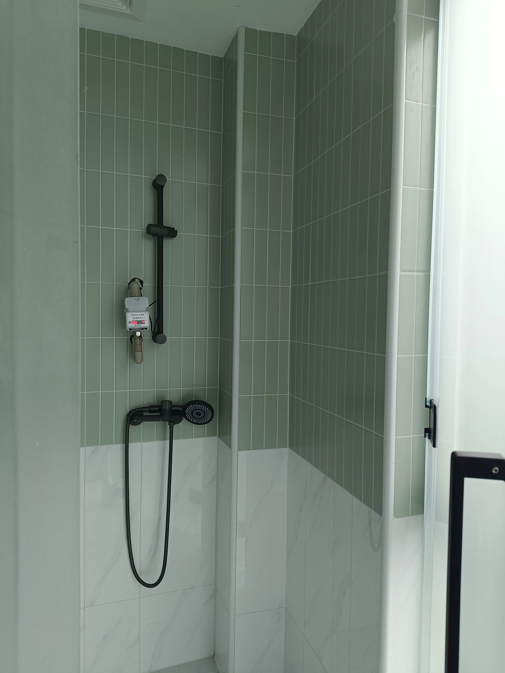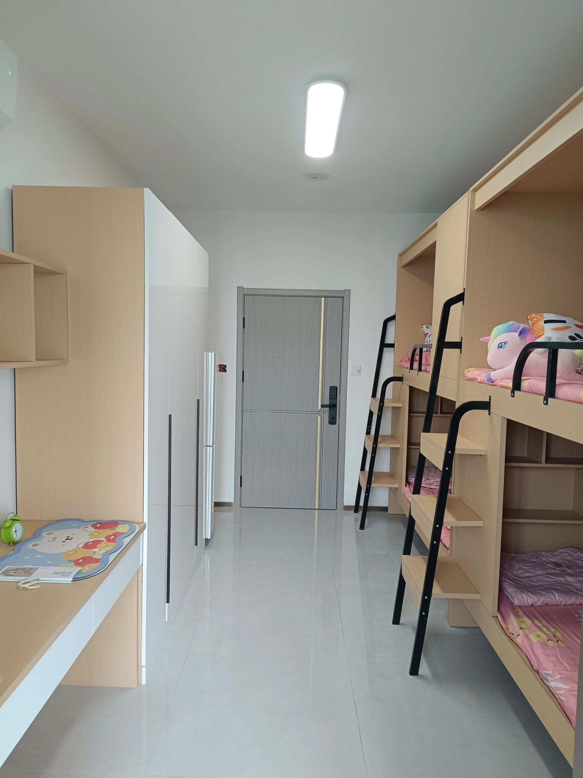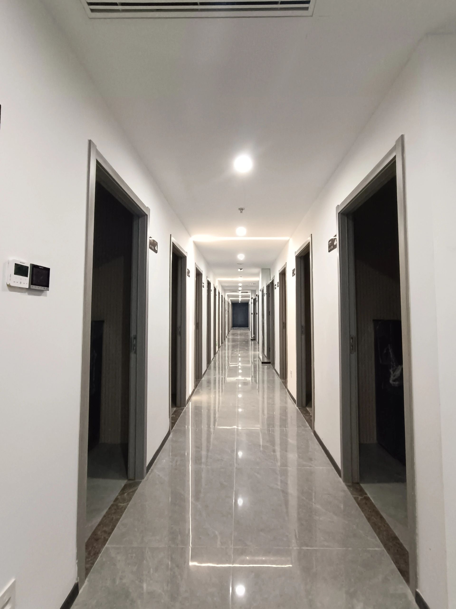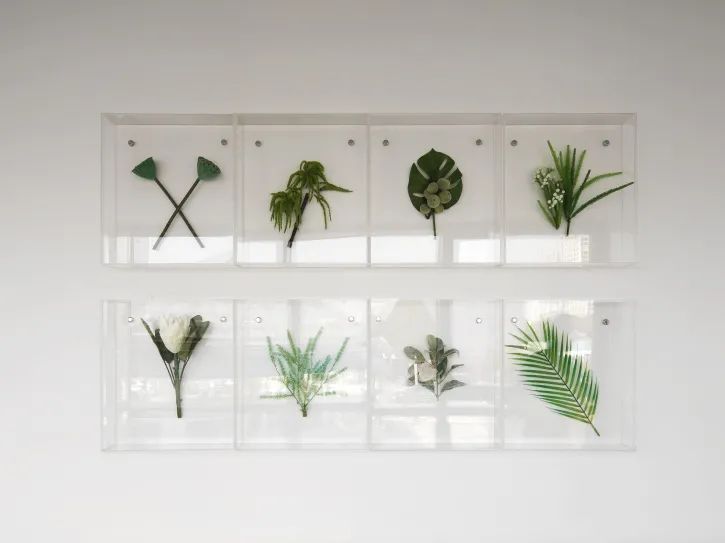 以灰色为主调的空间中,木质推柜的色彩,与侧柜上绿色植物让整个空间从酷炫的氛围中,从钢筋水泥的灰色中多了一些色彩层次与生命力。绿植的加入有效降低PM2.5,提升室内空气质量。