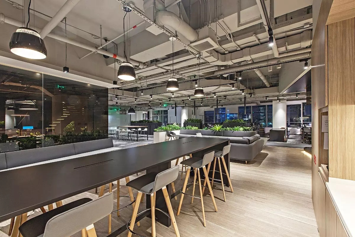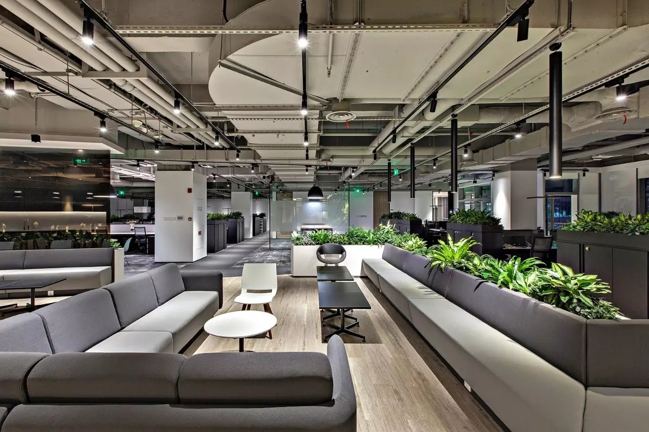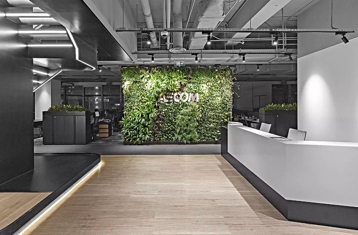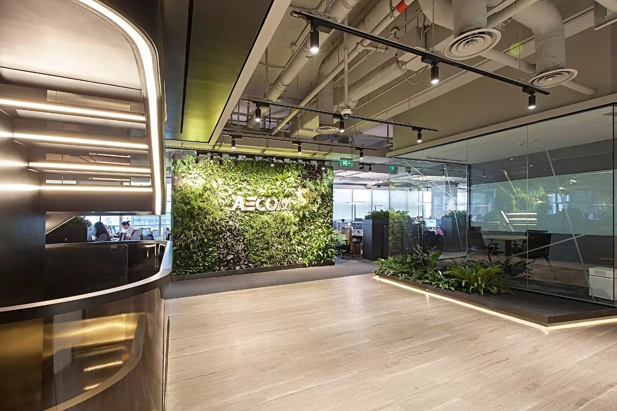 步入AECOM办公室你会看到开放的工作区域、贯通整座大楼的中央旋转楼梯、舒适的休息区和郁郁葱葱的植被共同营造出的具有浓郁工业风、但又充满生命力的的工作环境。