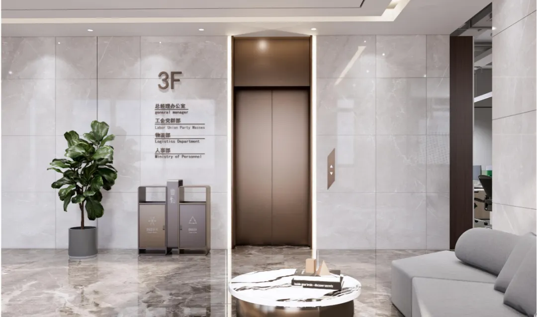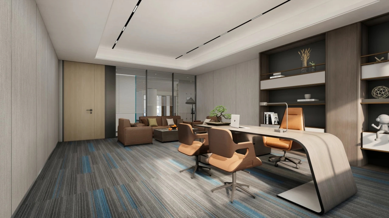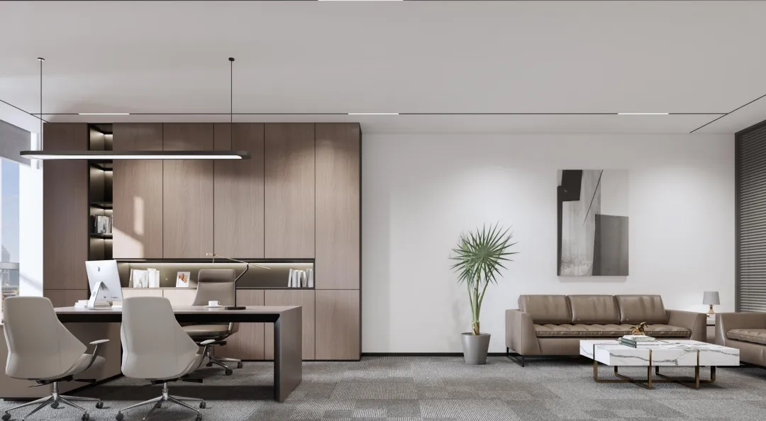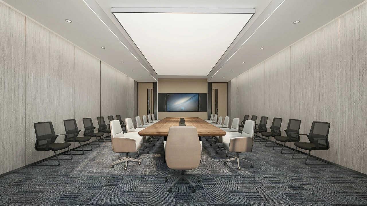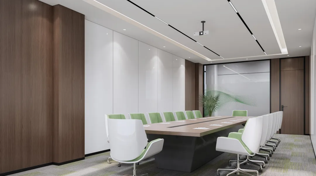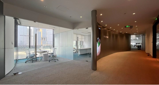 除此之外,背景墙还充当了前台走廊和后面会议区的隔断,合理利用了相对狭长的空间,同时有利于来宾接待和会议区的隐蔽性。