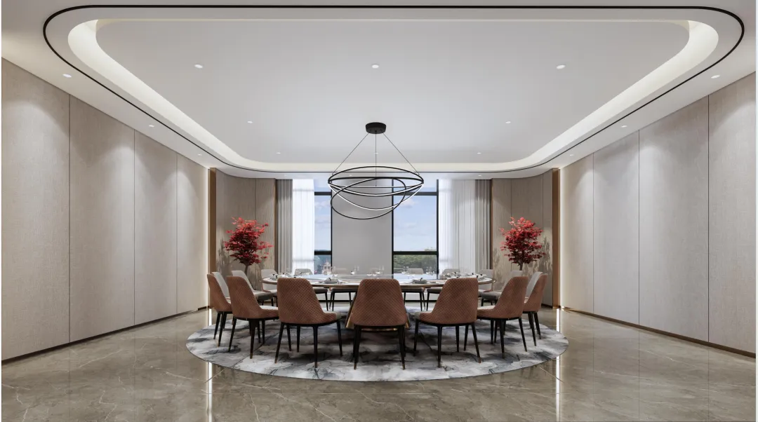 艺术隔断通透明亮,光影穿梭如画卷上的晴空之线,山石之景取之于自然,通过从对“质”的追求中寻求澄明之境。