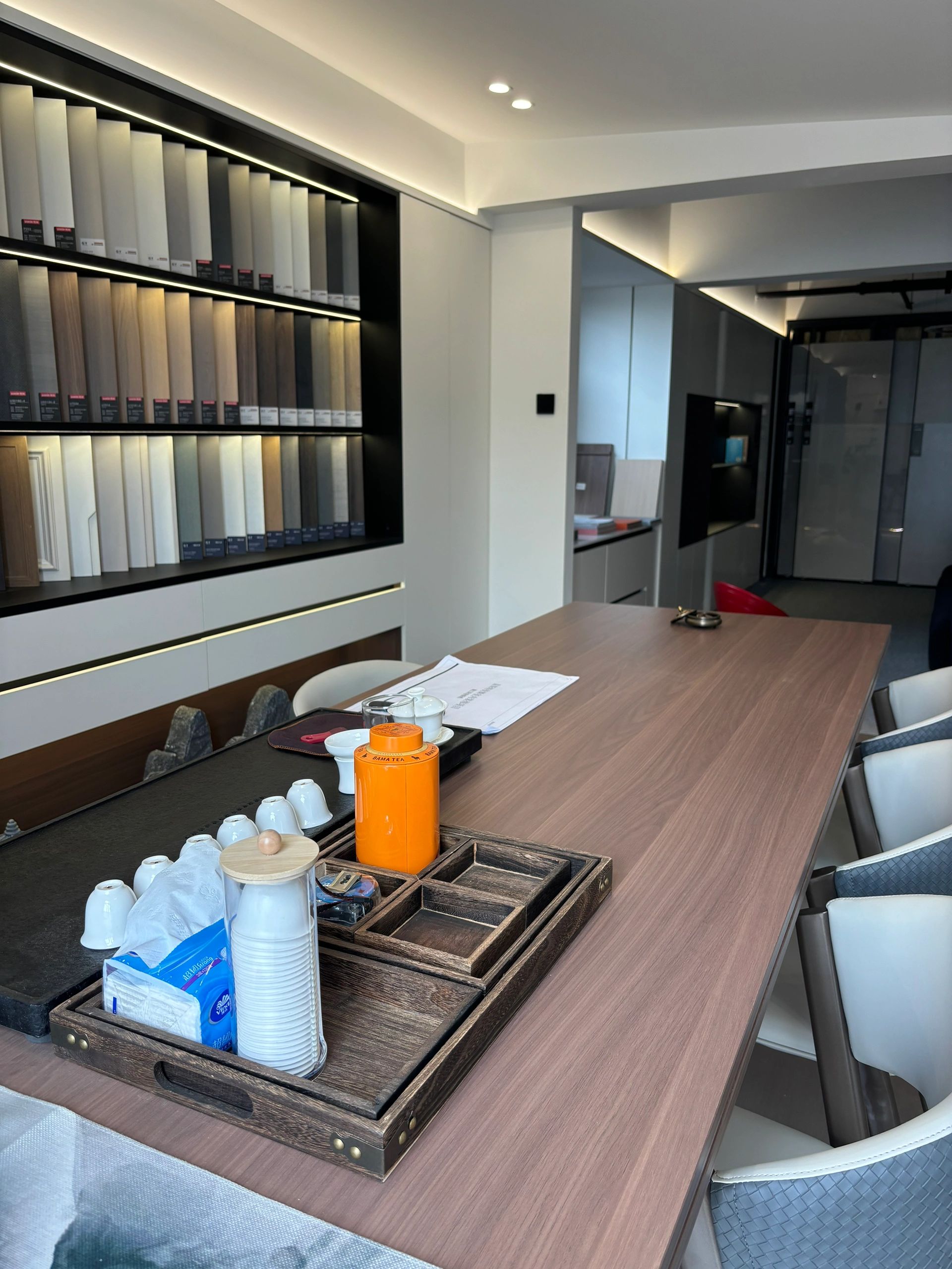 独立办公空间沿墙面外缘毗邻,内里的空间,背靠实用与展示性相结合的柜子,在空间设计上呈现事业风貌及个人品味,色彩上体现其大气、稳重的特点。