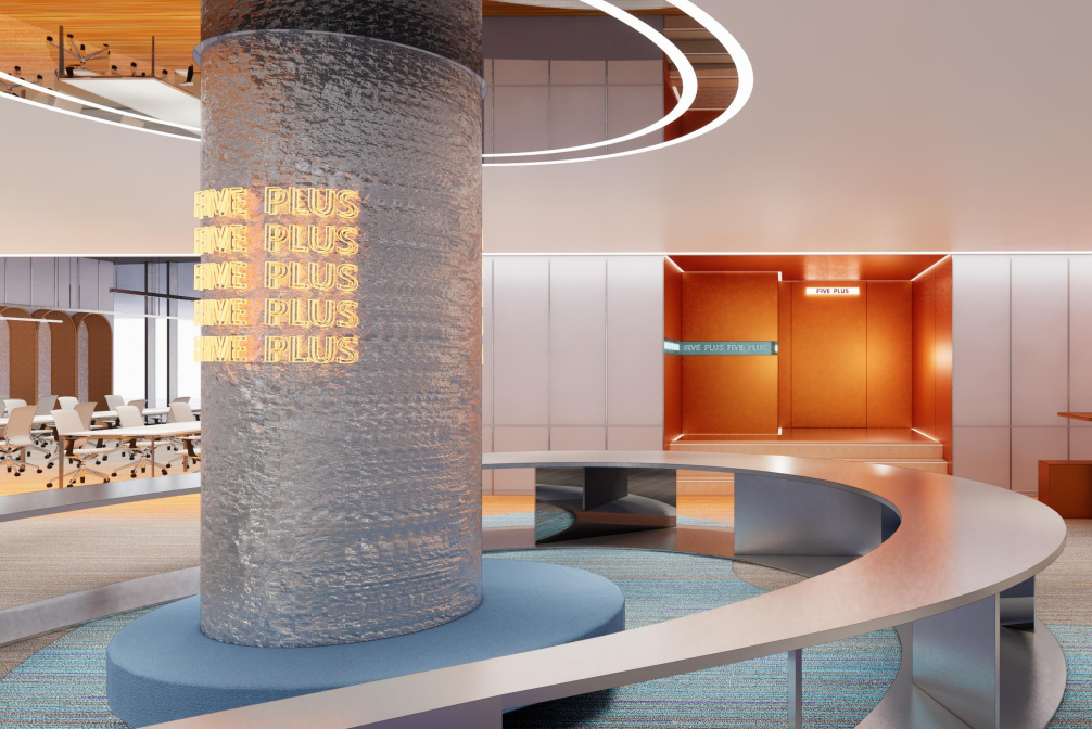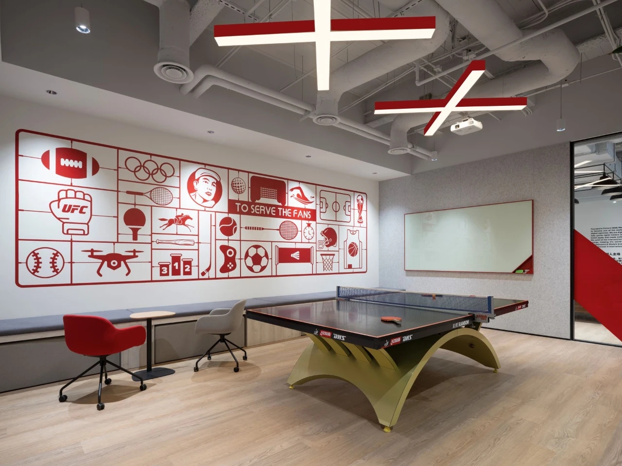 设计中,我们注重空间的连贯性,巧妙运用设计元素,将 ENDEAVOR 中国区域与集团广告事业部 16090 旗下数字公司邮人体育区域,以及公共共享区域紧密相连,营造出和谐且张弛有度的空间布局。邮人体育作为数字体育行业的创新引领者,充满了挑战精神和创造力。我们深受其对体育的无限热情和自由文化氛围的启发,力求在室内设计中融入这些独特元素,打造一个充满活力、激发创新思维的多元化工作空间。具有节奏感的设计元素,不仅展现了多元化环境中的活力与激情,更以不同方式赋予空间独特的魅力与加持。