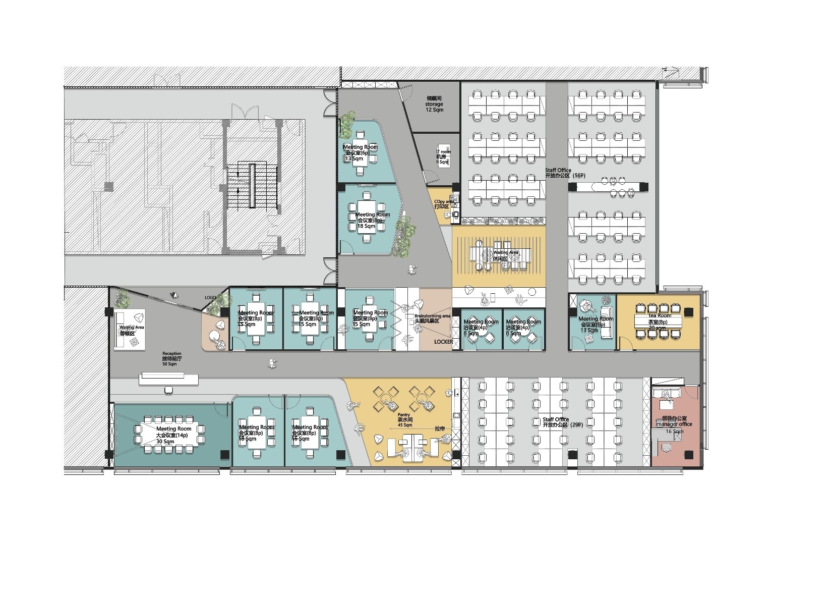 以明确的层次结构,组织空间功能,方便使用者自由分割、多元组合,为员工打造更高质的办公环境,从而真正实现人本、舒适的现代办公体验。